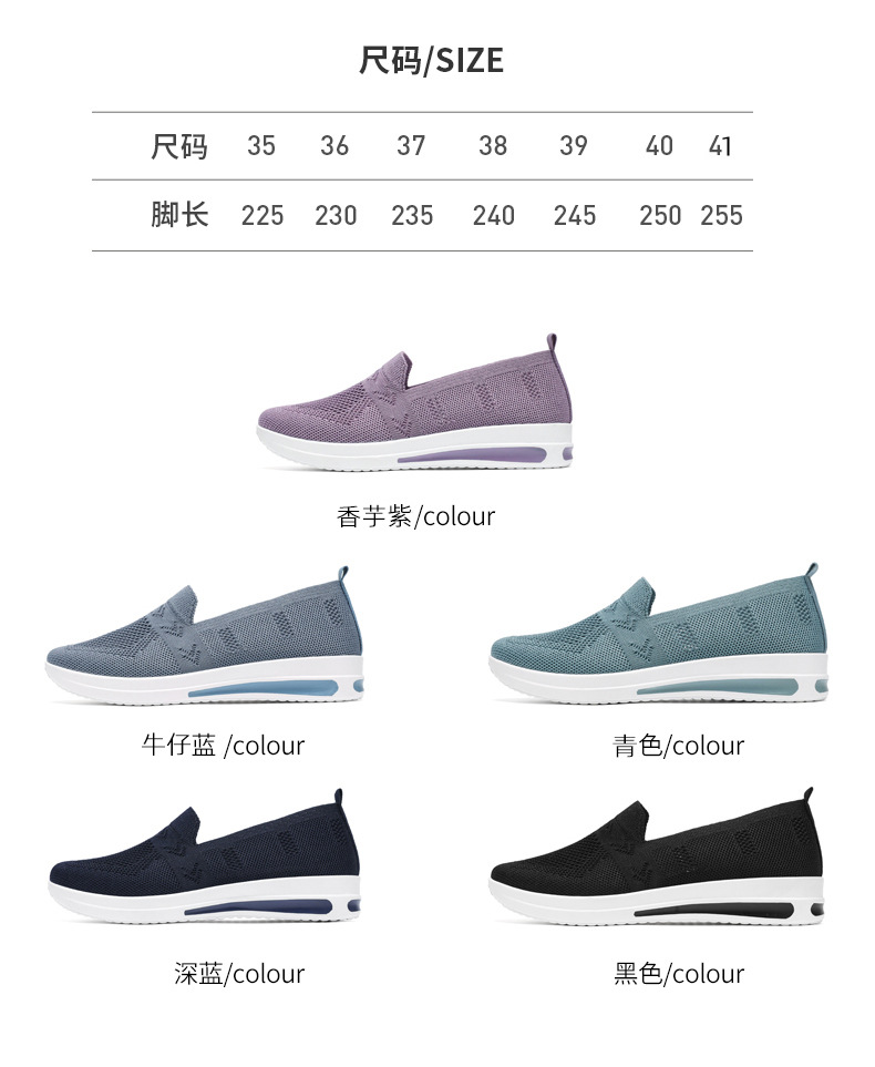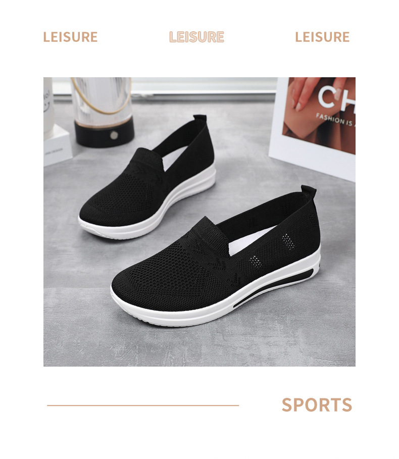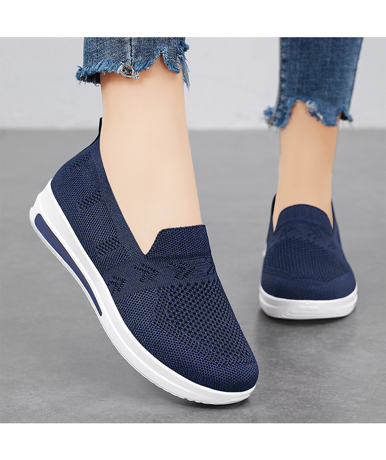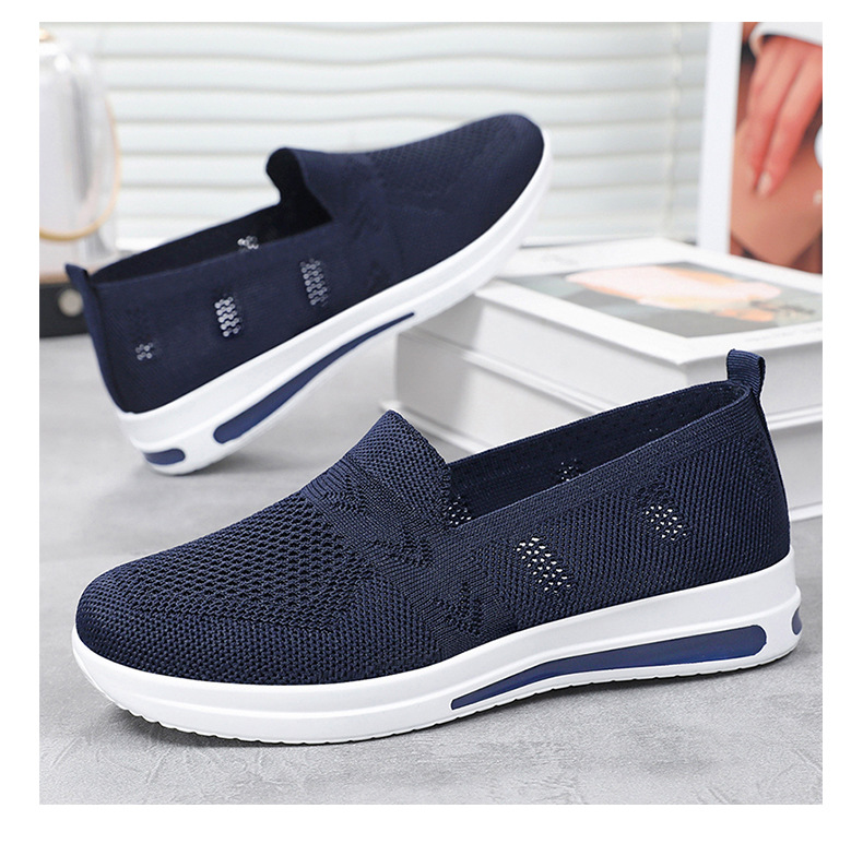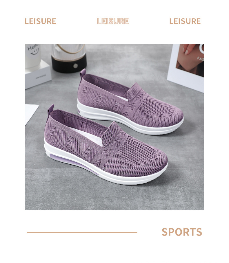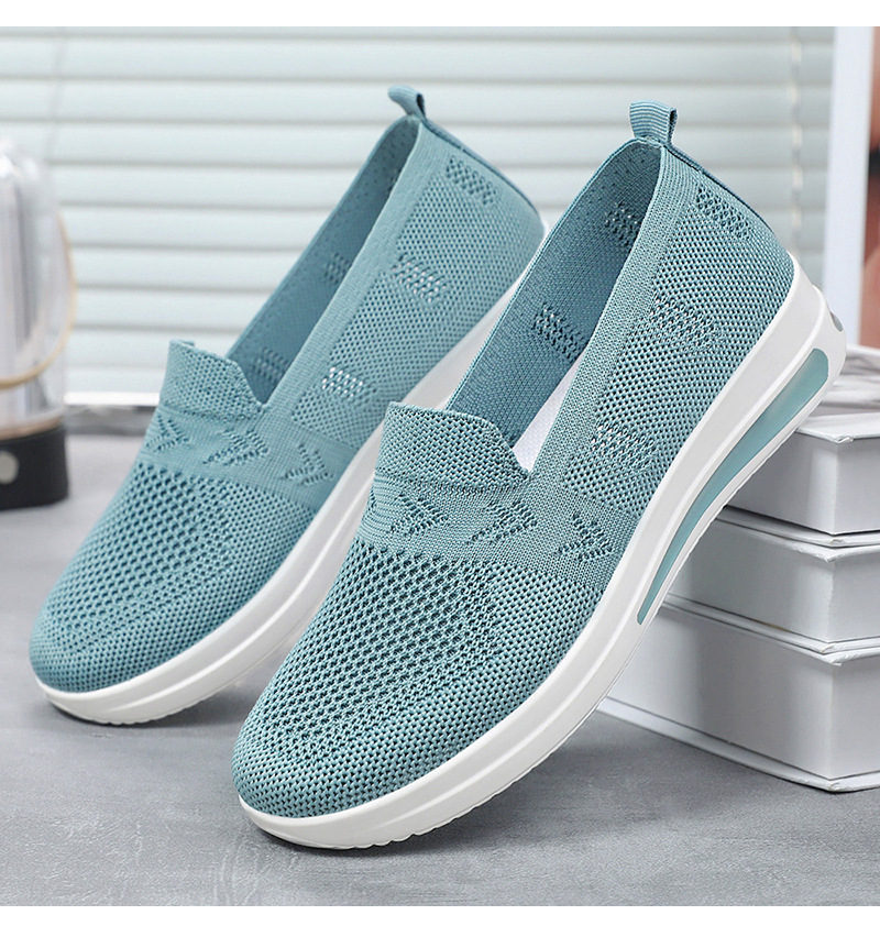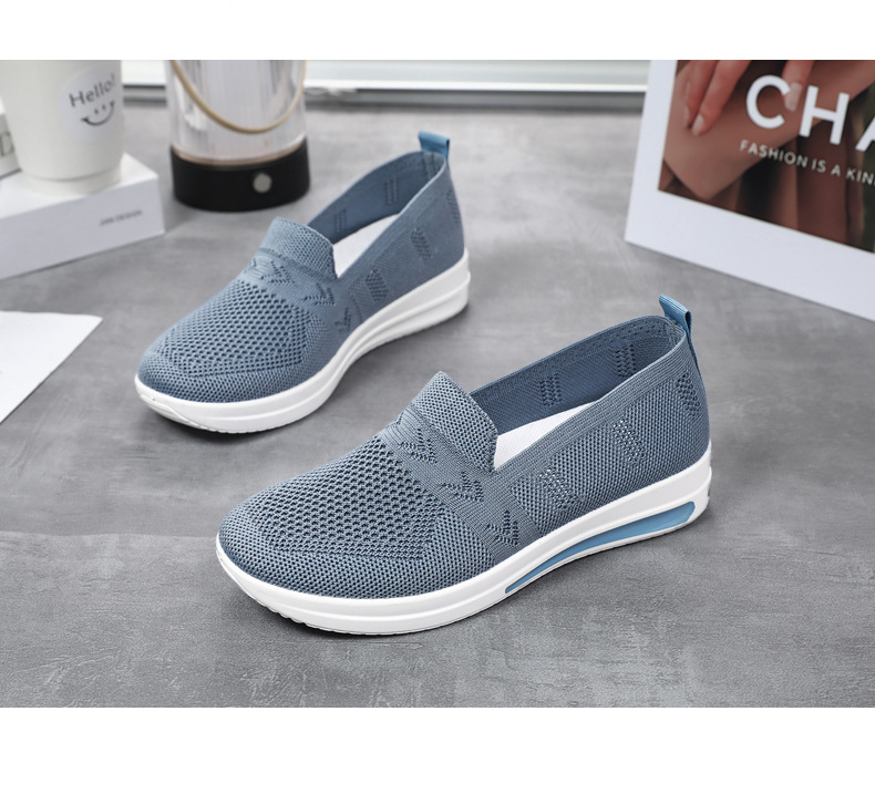 신발 여성의 여름 비행 직조 통기성 캐주얼 슈즈 슬립 온 마더 슈즈 라이트급 워킹 슈즈 솔리드 컬러 올 매치 싱글 레이어 슈즈
