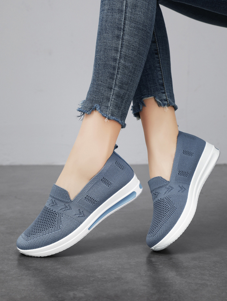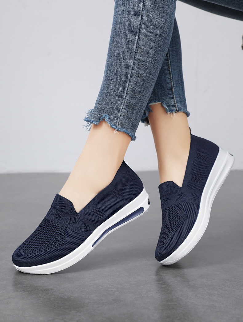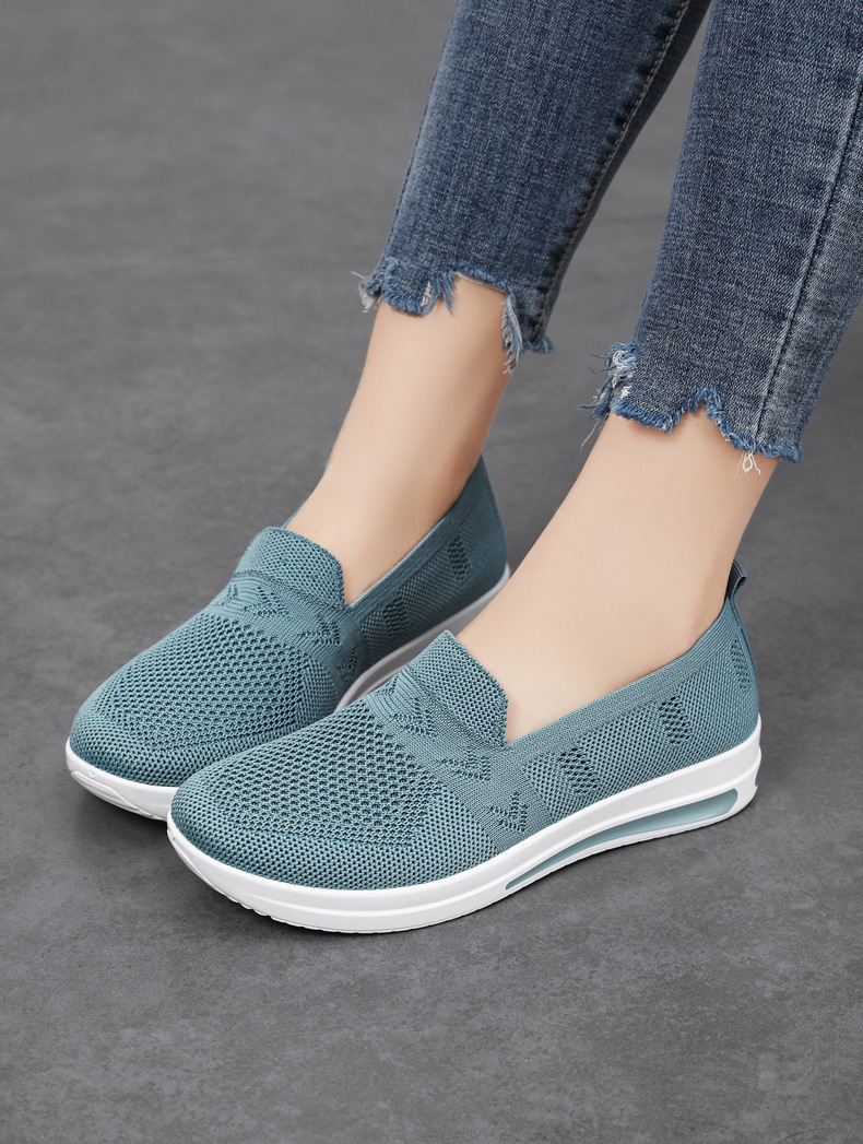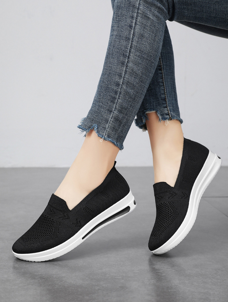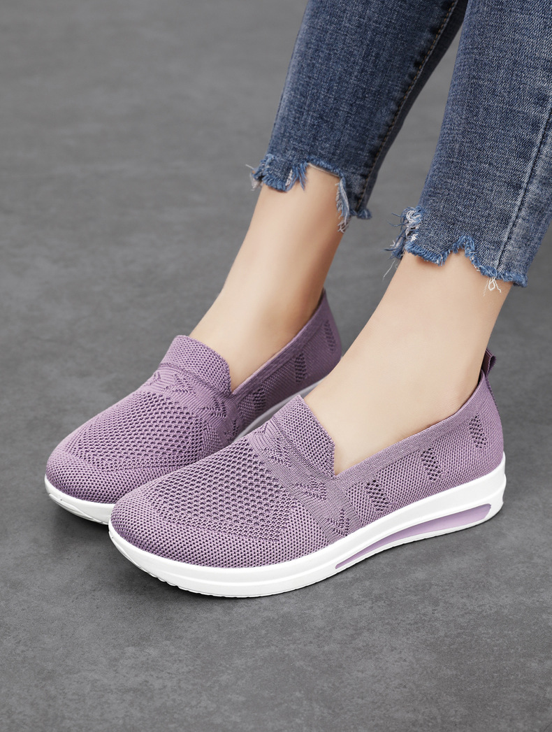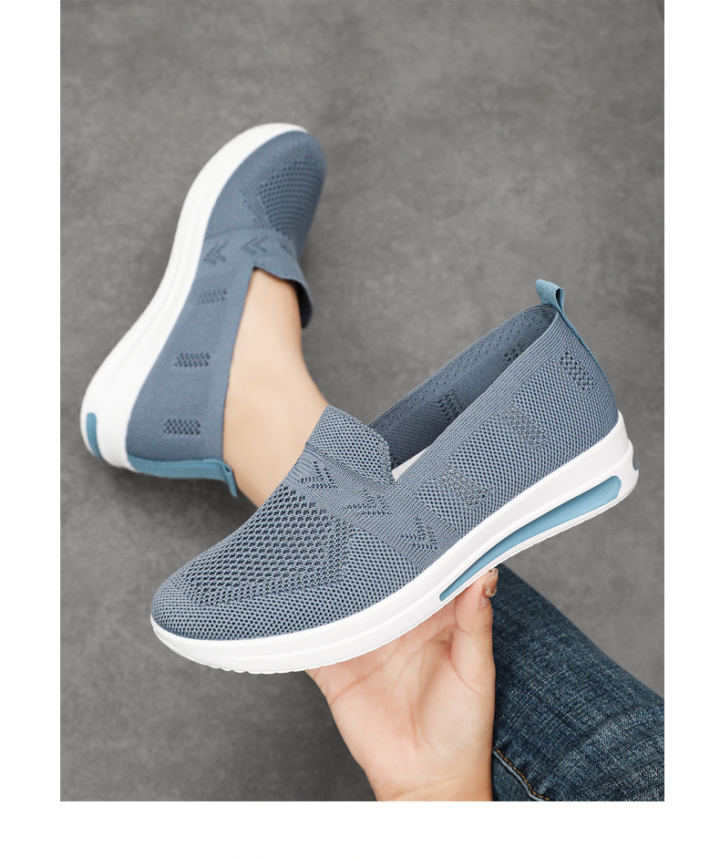 신발 여성의 여름 비행 직조 통기성 캐주얼 슈즈 슬립 온 마더 슈즈 라이트급 워킹 슈즈 솔리드 컬러 올 매치 싱글 레이어 슈즈
