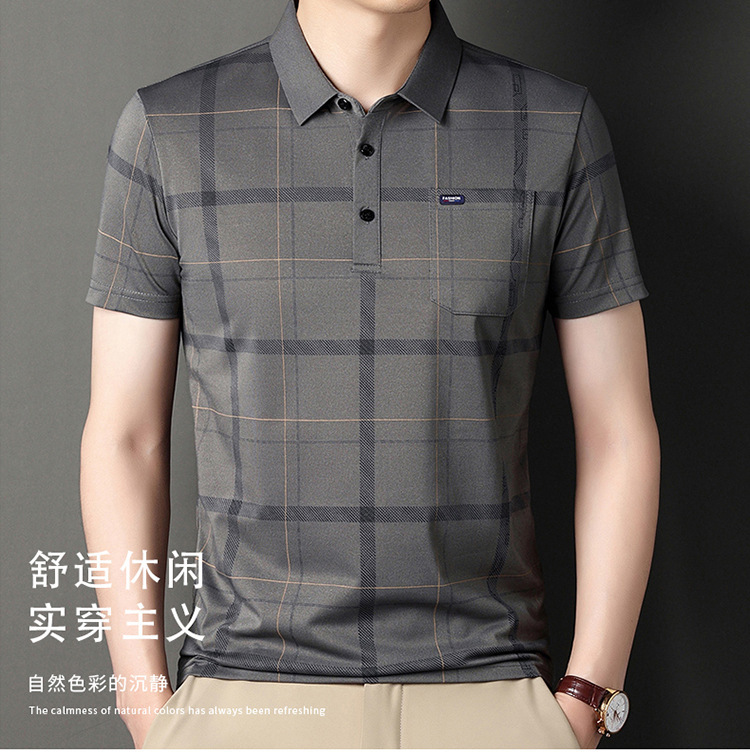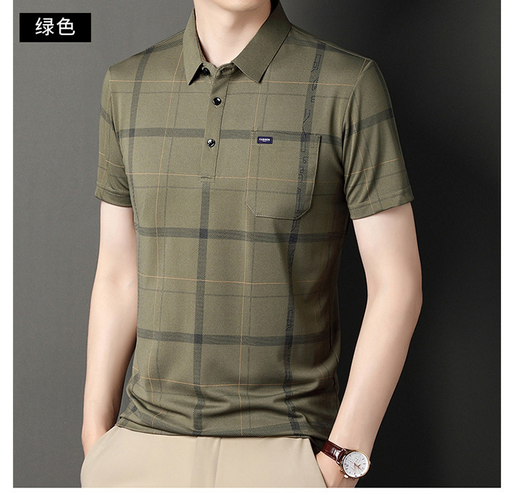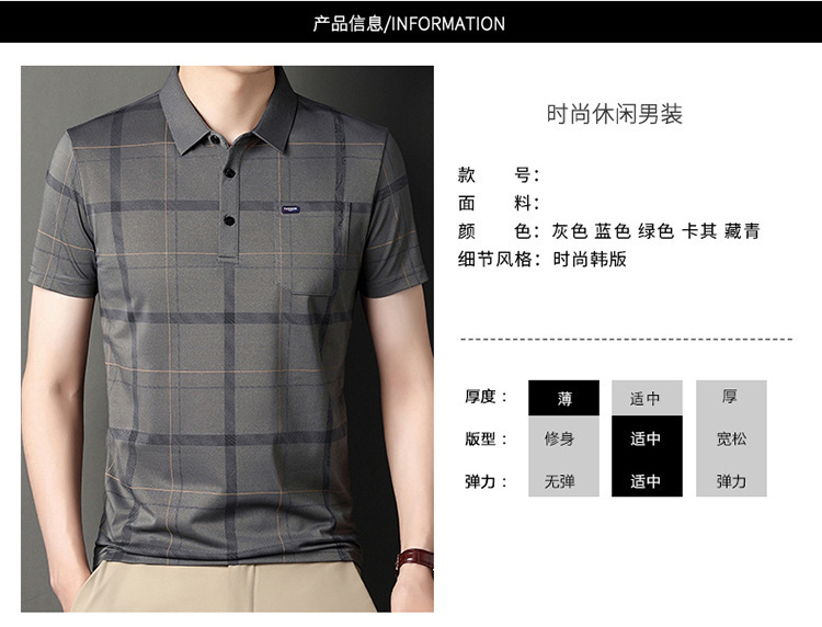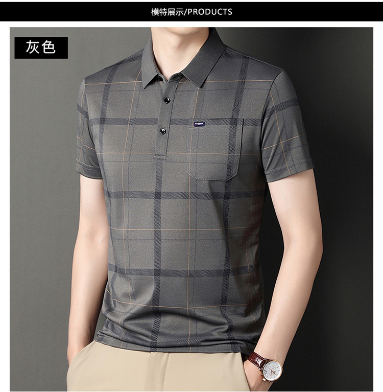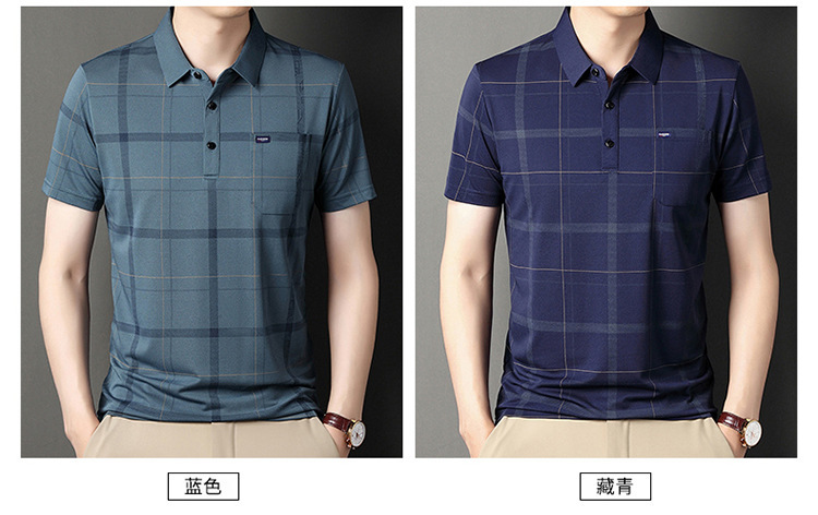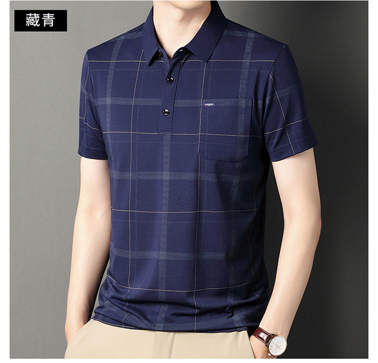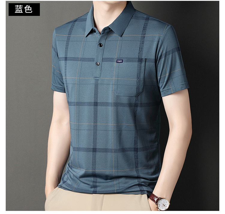 夏季冰丝棉短袖t恤男真口袋翻领宽松大码体恤中年男士POLO衫 代发
