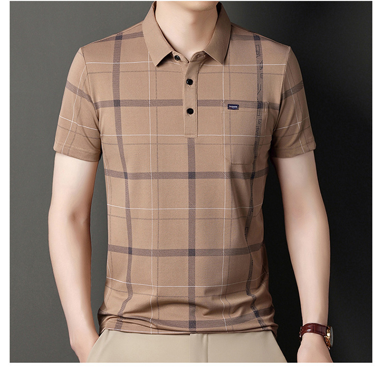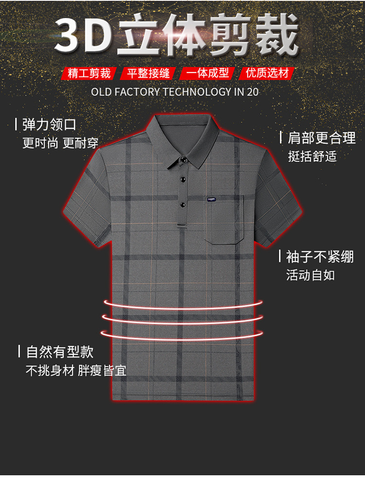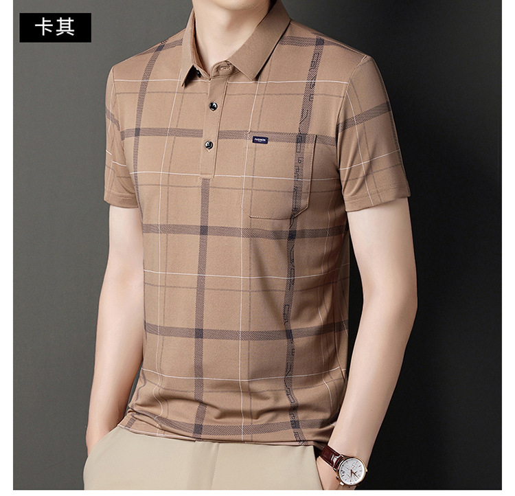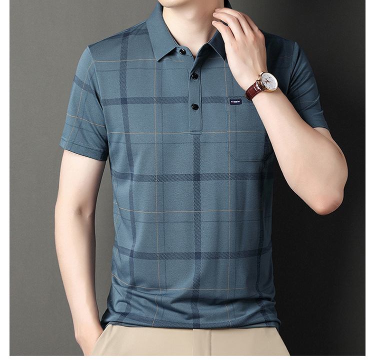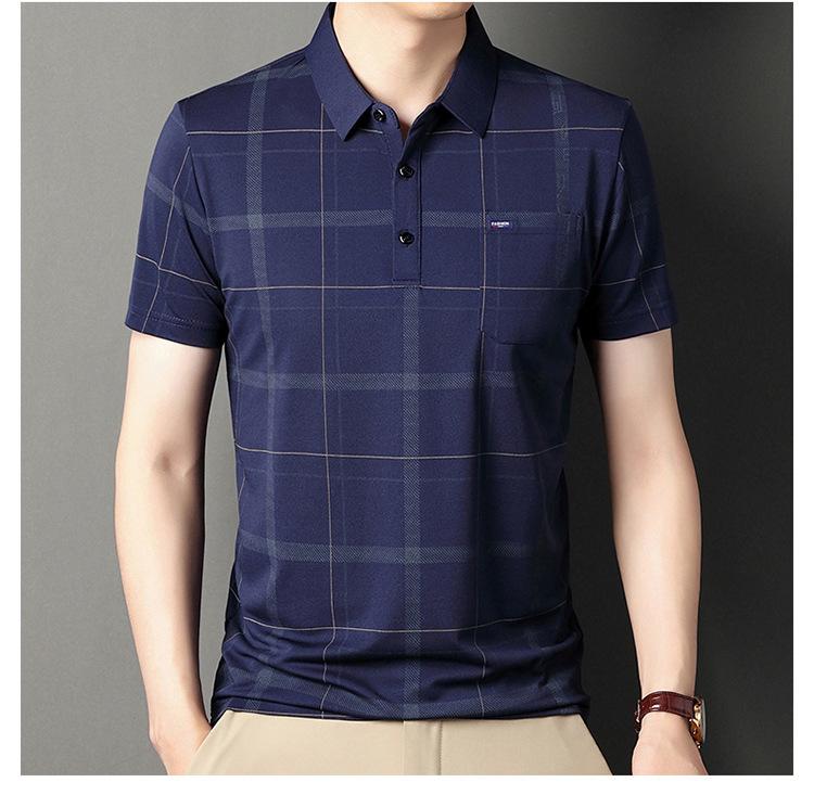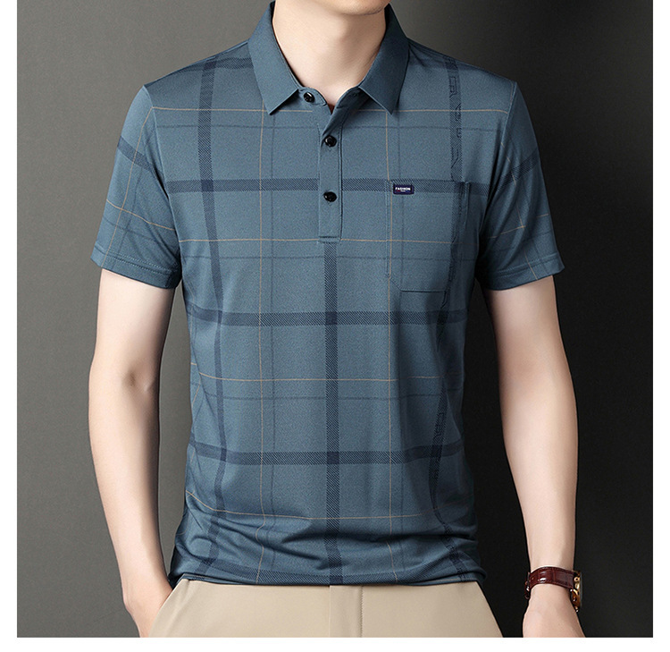 夏季冰丝棉短袖t恤男真口袋翻领宽松大码体恤中年男士POLO衫 代发