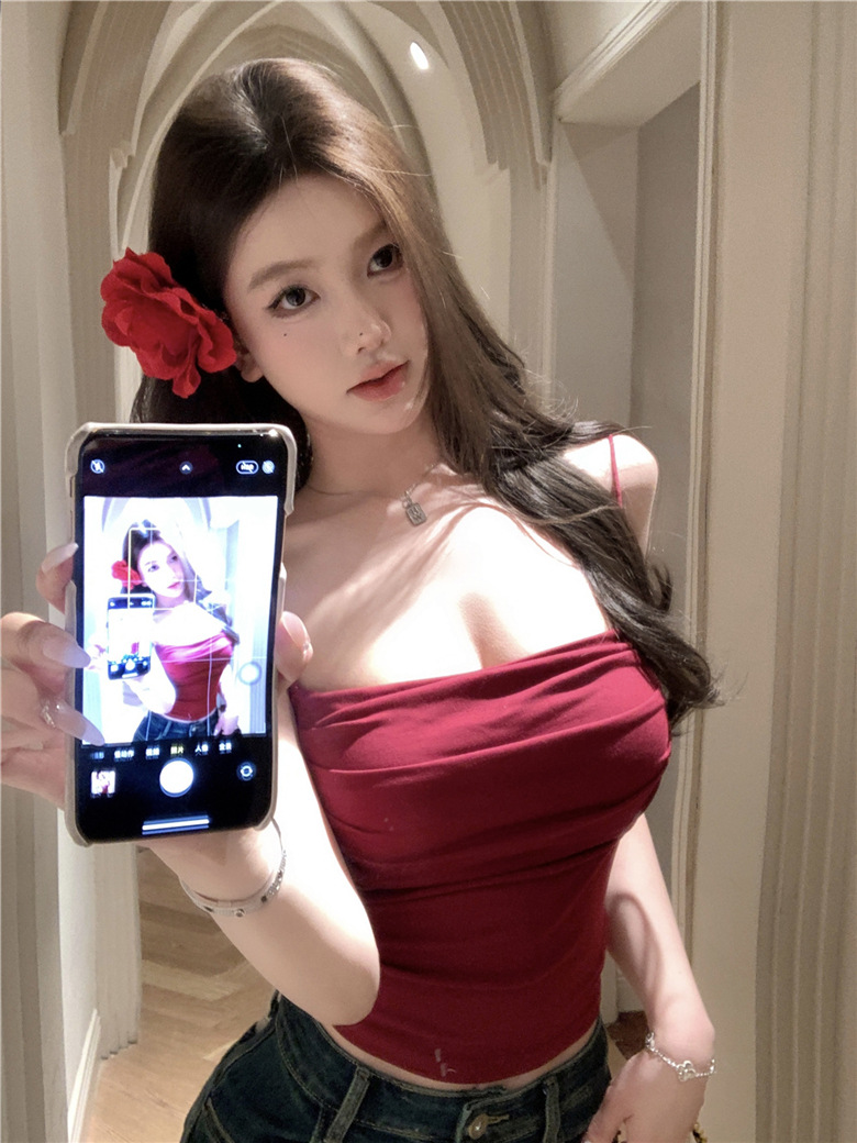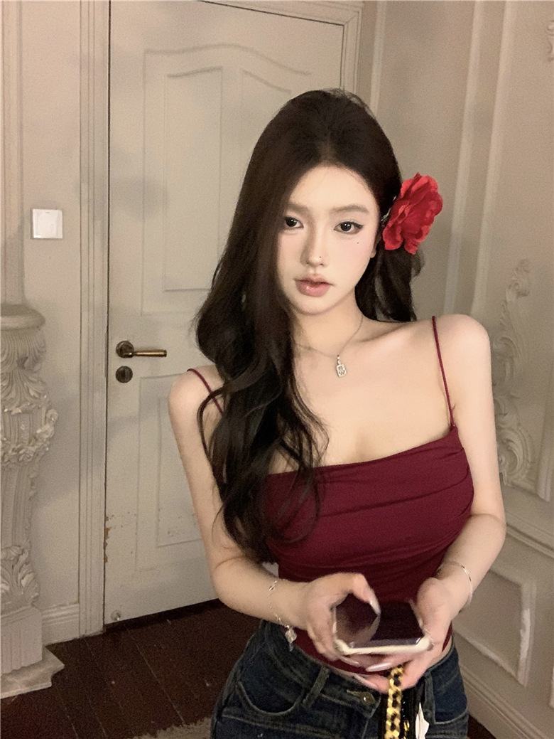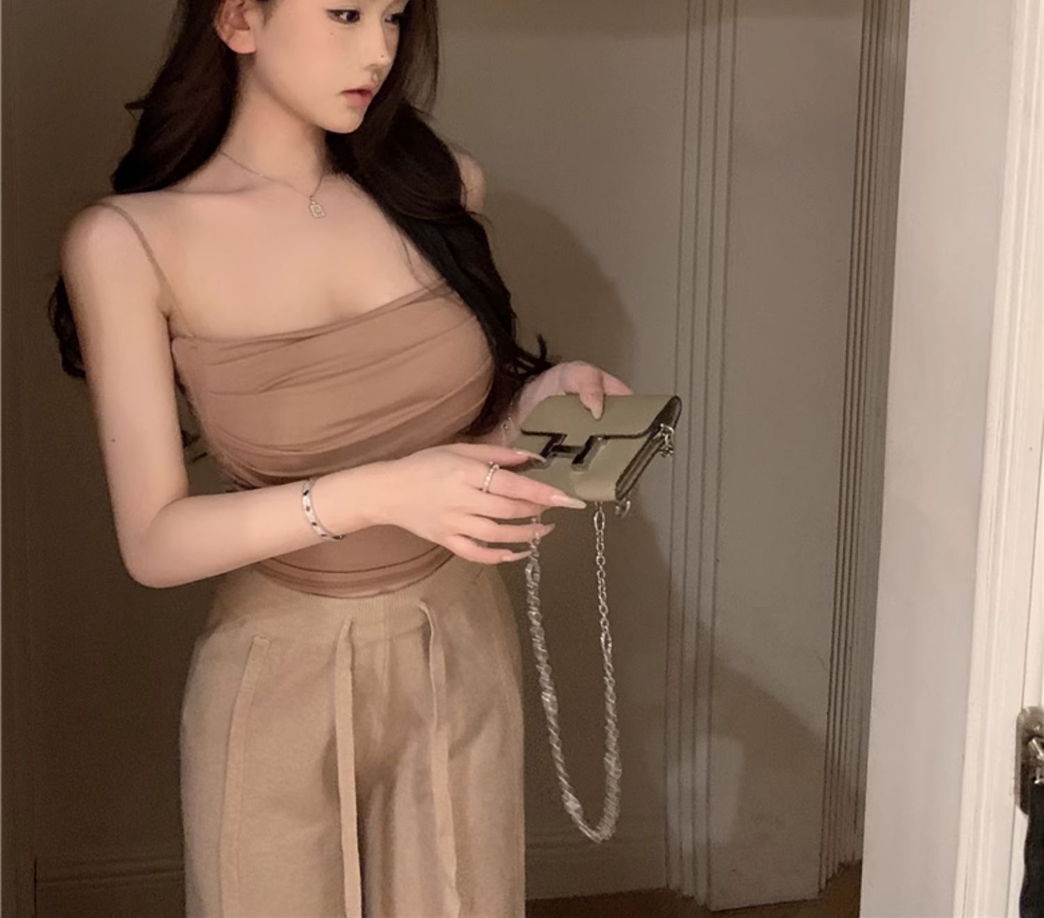 순수 스파이스 걸스 얇은 카미 솔 조끼 여성 여름 2024 새로운 스타일 가슴 패드와 짧은 민소매 탑스토어 가기