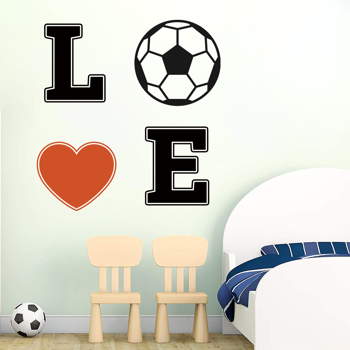 사랑 축구 영어 자기 접착 벽 스티커 간단한 Ins 스타일 어린이 방 거실 배경 벽 장식 스티커 BR0654F
