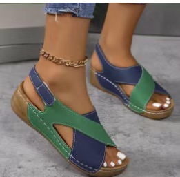 여성을위한 유럽과 미국의 로마 샌들 25 년 여름 새로운 스타일 플랫폼 두꺼운 밑창 스커트 캐주얼 오픈 발가락 다목적 비치 샌들