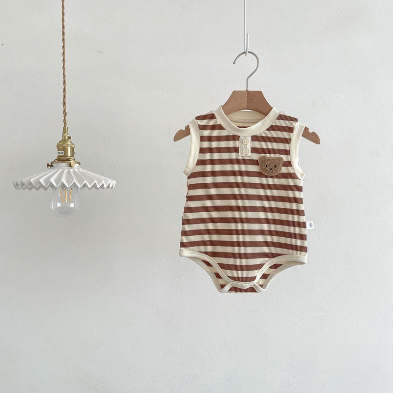 아기 옷 여름 새로운 민소매 토끼 옷 서양식 아기 점프 수트 줄무늬 곰 가방 방귀 옷 얇은 여름스토어 가기