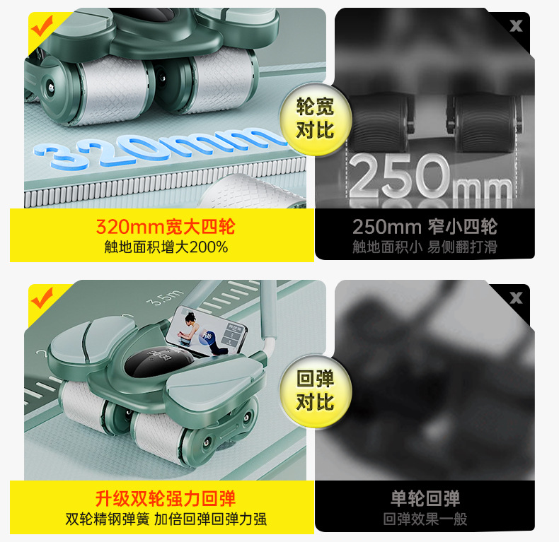 4 륜 복부 휠 2024 새로운 자동 리바운드 복부 휠 홈 피트니스 장비 체중 감량을위한 얇은 배꼽 아티팩트스토어 가기