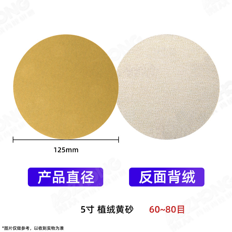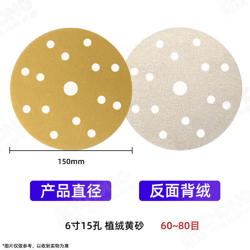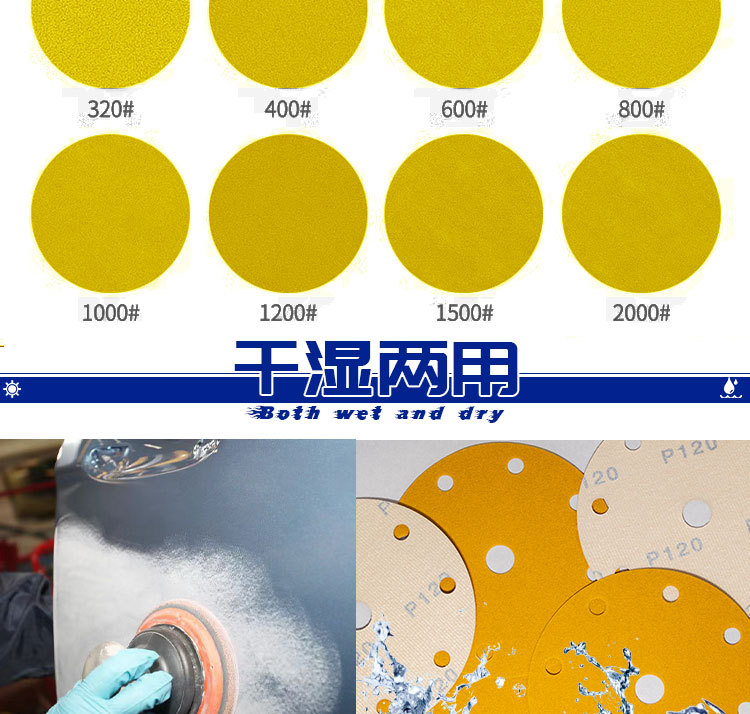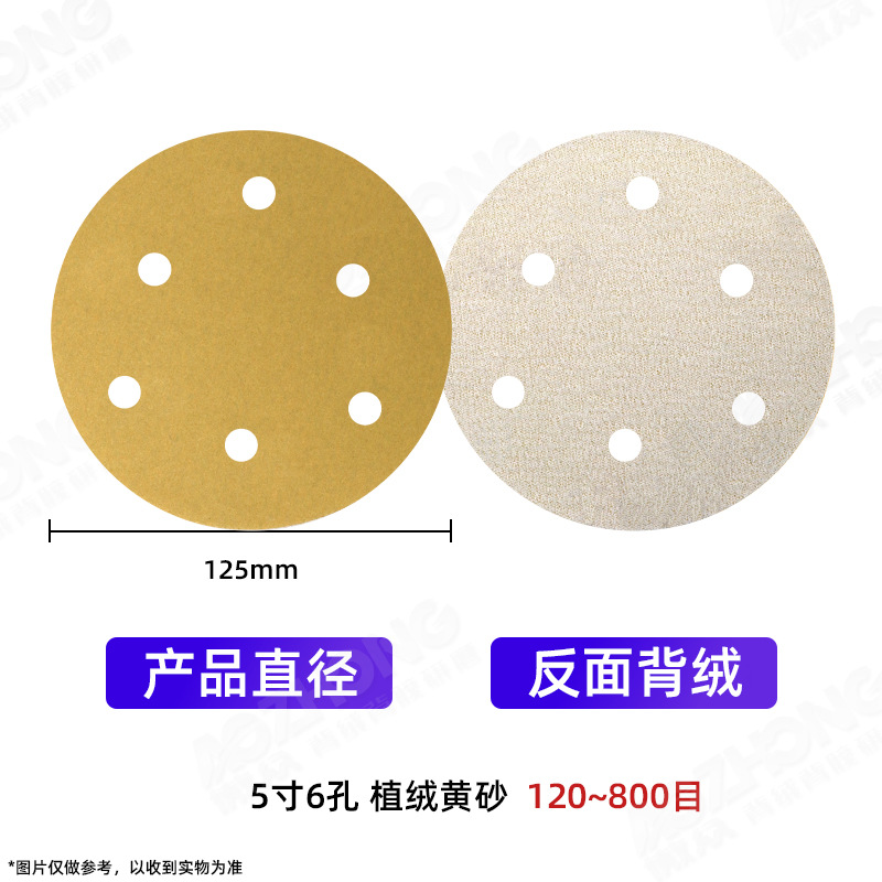 공장 도매 노란색 모래 5inch 비다공성 6홀 8홀 자동차 퍼티 그라운딩 목재 페인트 광택 건식 연마지