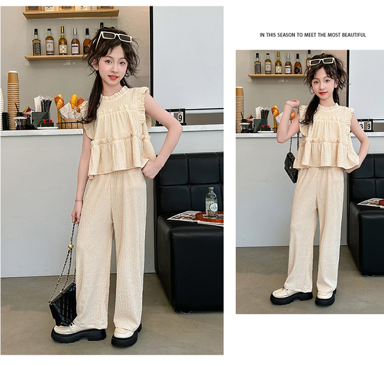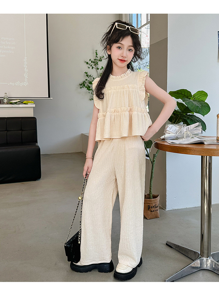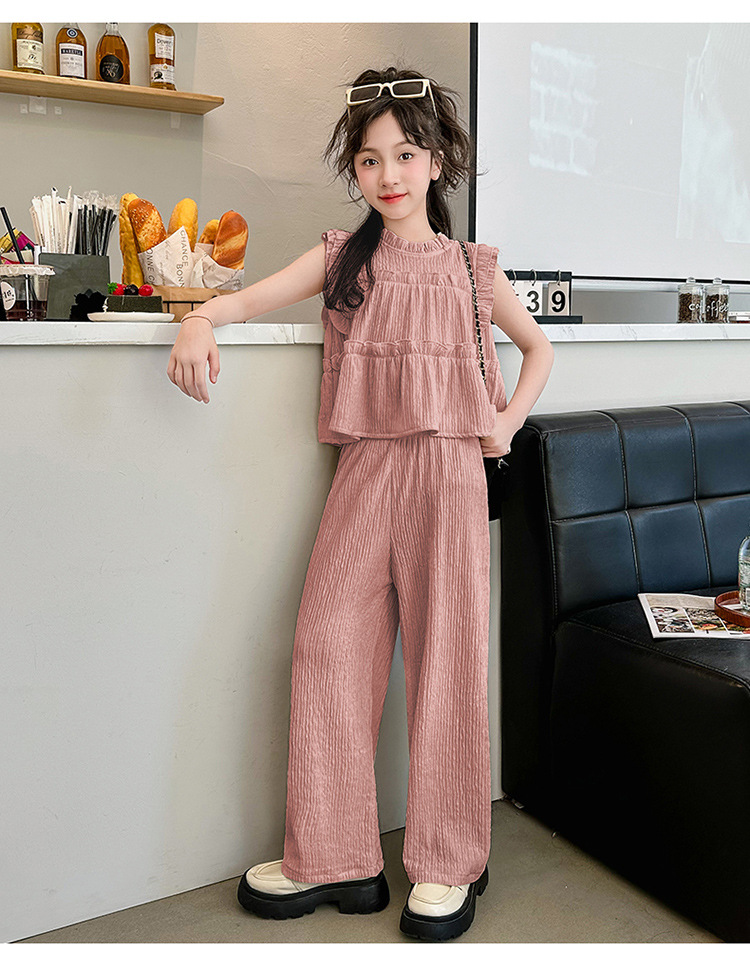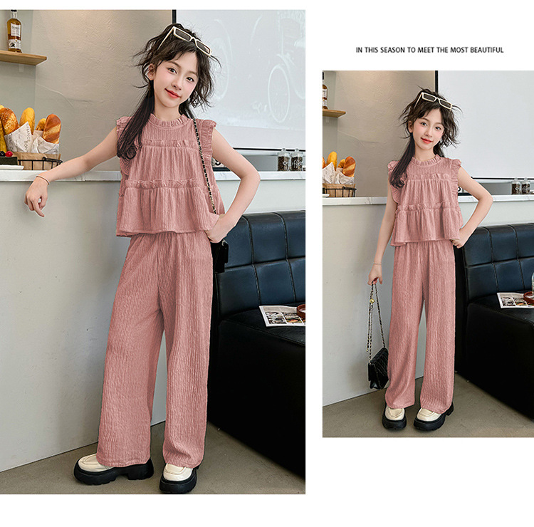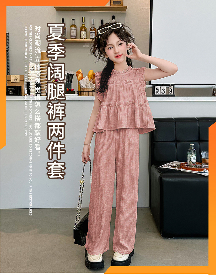 소녀 여름 원피스 세트 2024 새로운 어린이 인터넷-유명한 여름 넓은 다리 바지 투피스 세트 큰 어린이 여성 원피스 서양식 트렌디 쿨스토어 가기