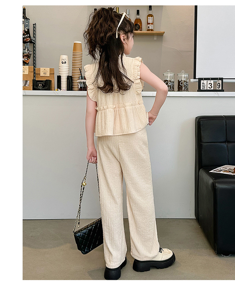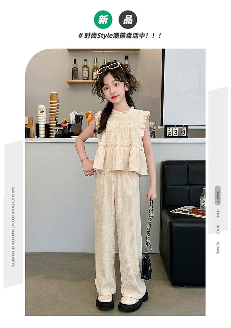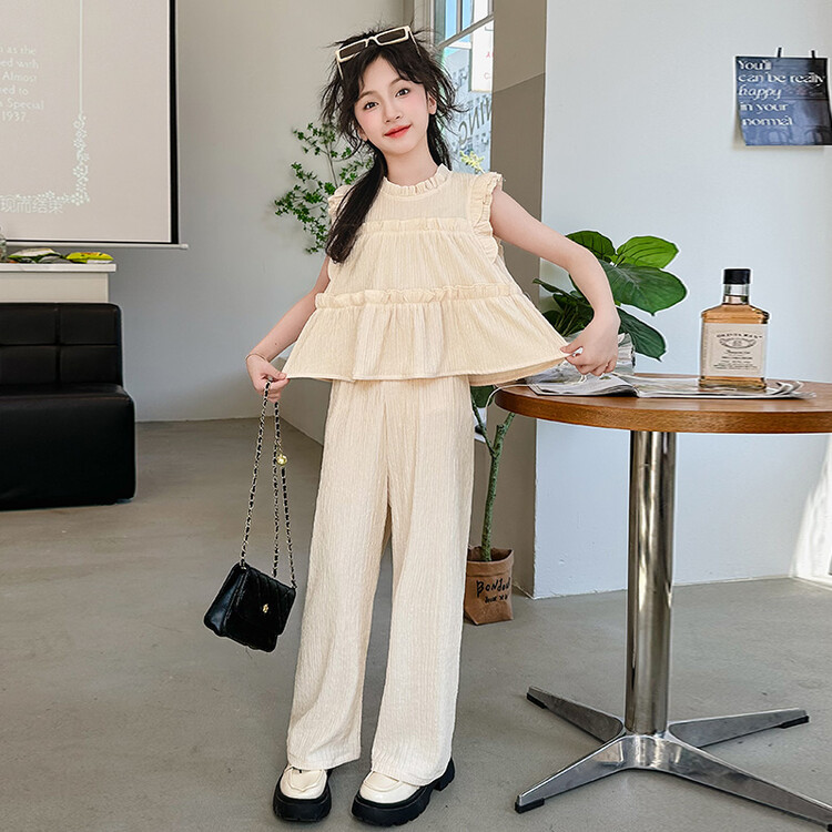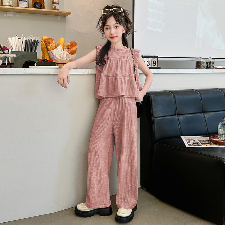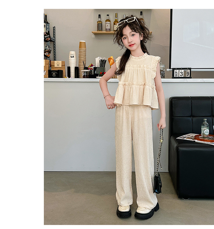 소녀 여름 원피스 세트 2024 새로운 어린이 인터넷-유명한 여름 넓은 다리 바지 투피스 세트 큰 어린이 여성 원피스 서양식 트렌디 쿨스토어 가기