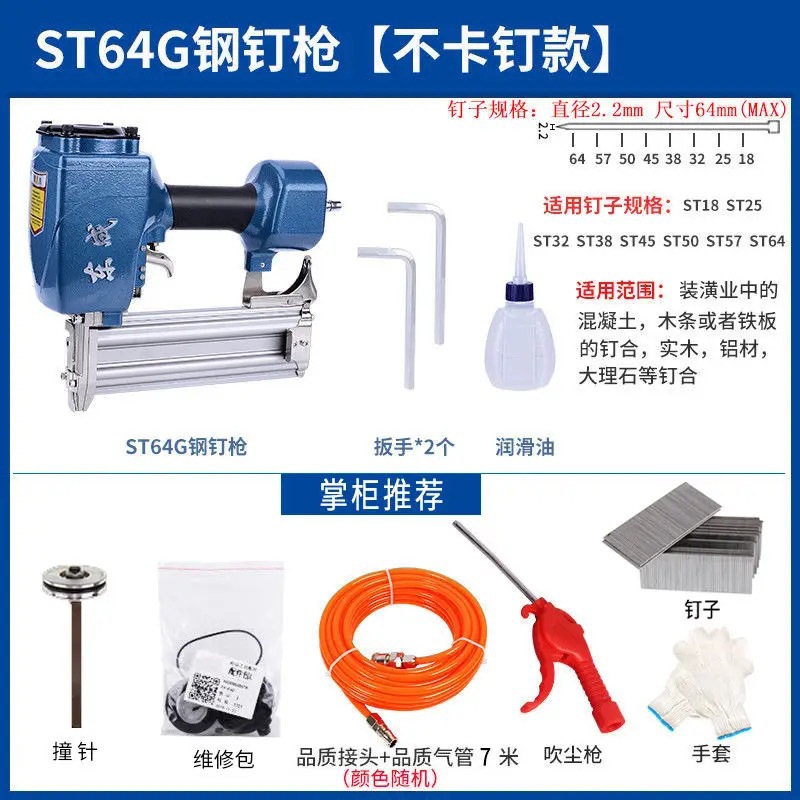 • 스틸 네일 건 64, 네일 걸림 없음, 공장 표준 + 선물 패키지