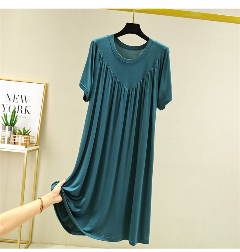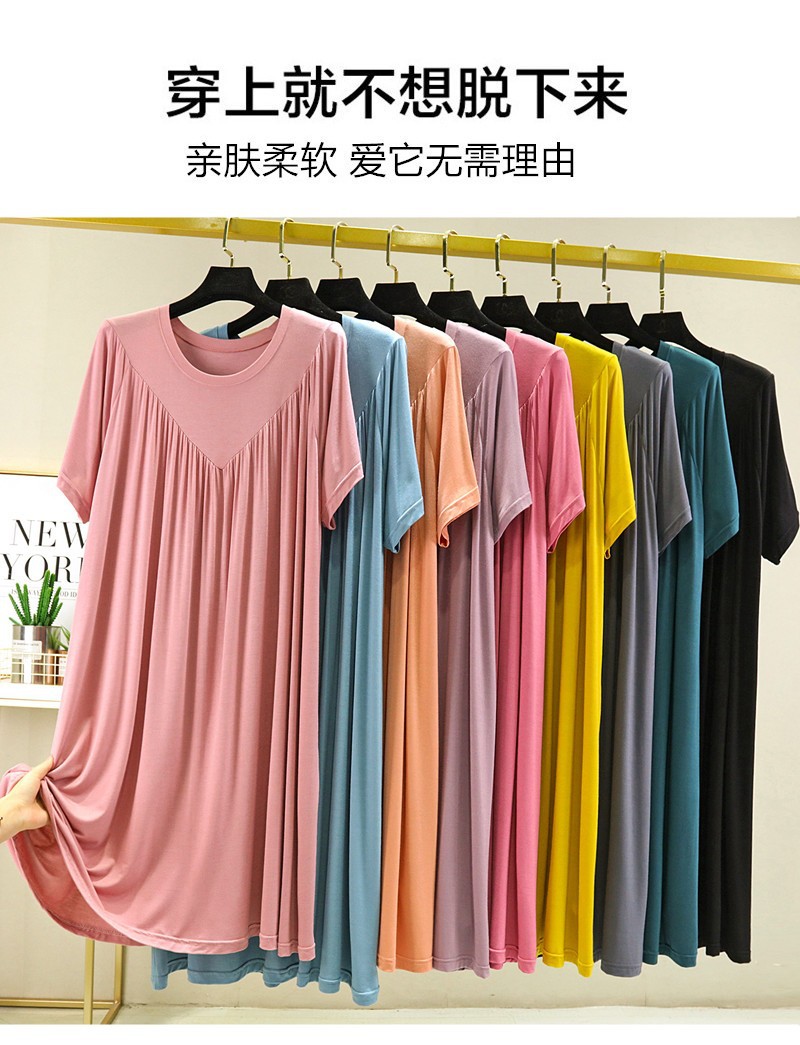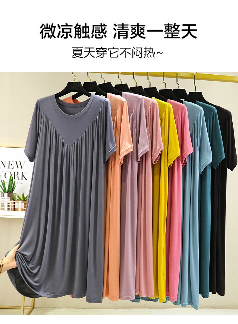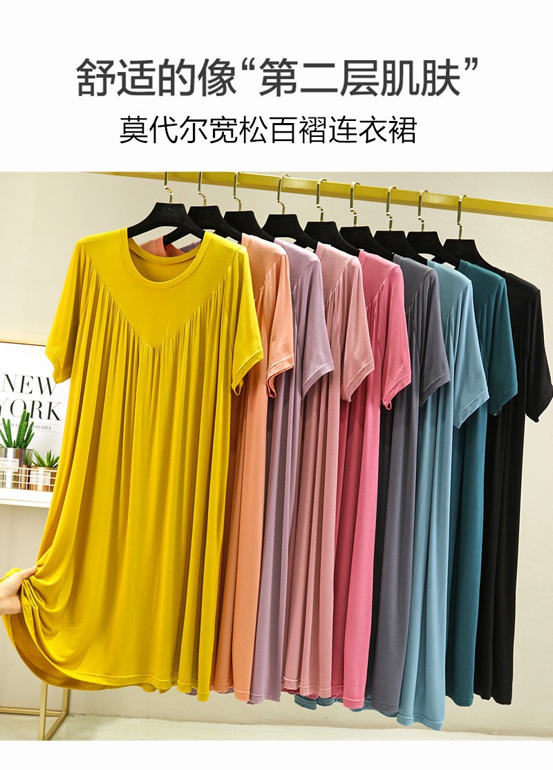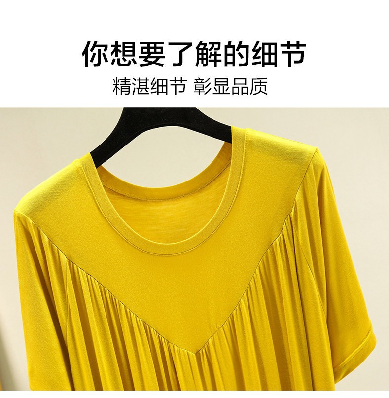 莫代尔连衣裙女夏2022年加肥大码圆领百褶裙薄款胖mm宽松短袖长裙