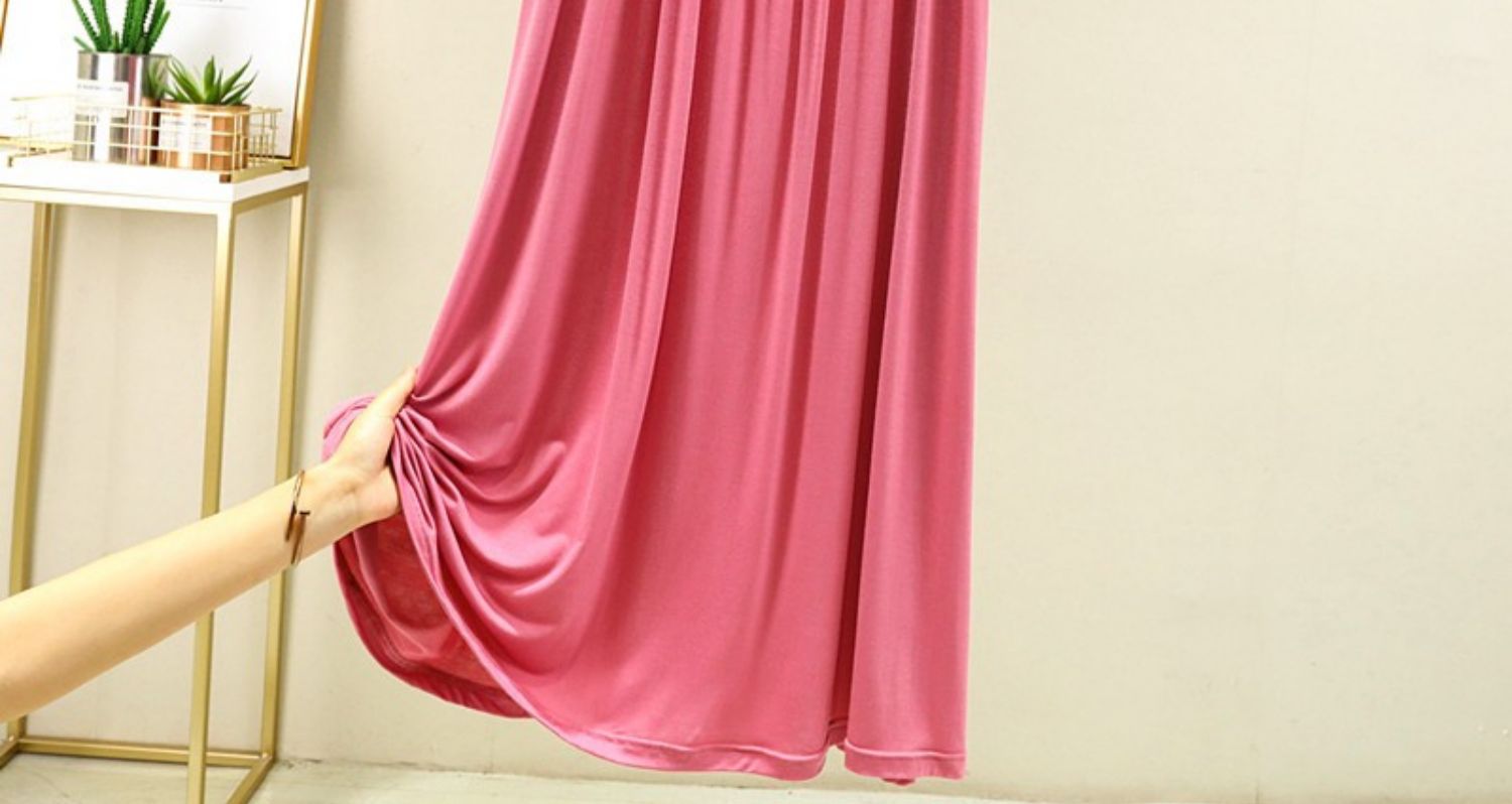 모달 원피스 여자 여름 2024 플러스 플러스 사이즈 크루 넥 주름 치마 얇은 통통녀 느슨한 반팔 긴 치마