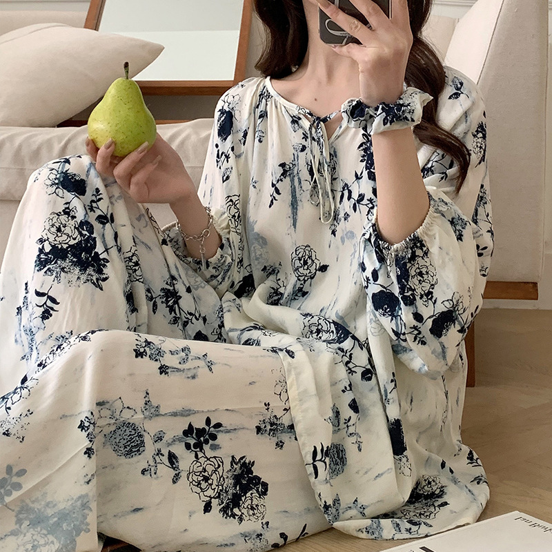 여성용 잠옷, 얇은 면 실크 가정복, 야외에서 착용 가능, 플러스 사이즈 100kg 착용 가능 면 실크 슈트, 여름 통기성