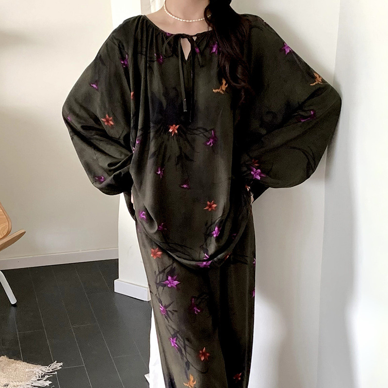 여성용 잠옷, 얇은 면 실크 가정복, 야외에서 착용 가능, 플러스 사이즈 100kg 착용 가능 면 실크 슈트, 여름 통기성스토어 가기
