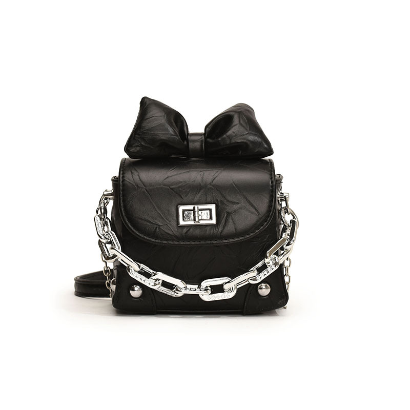 스퀘어 박스 백 여성의 가을과 겨울 새로운 유럽과 미국 패션 오일 가죽 잠금 작은 광장 가방 귀여운 활 체인 크로스 바디 백