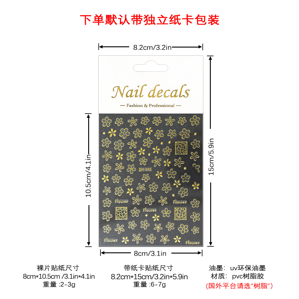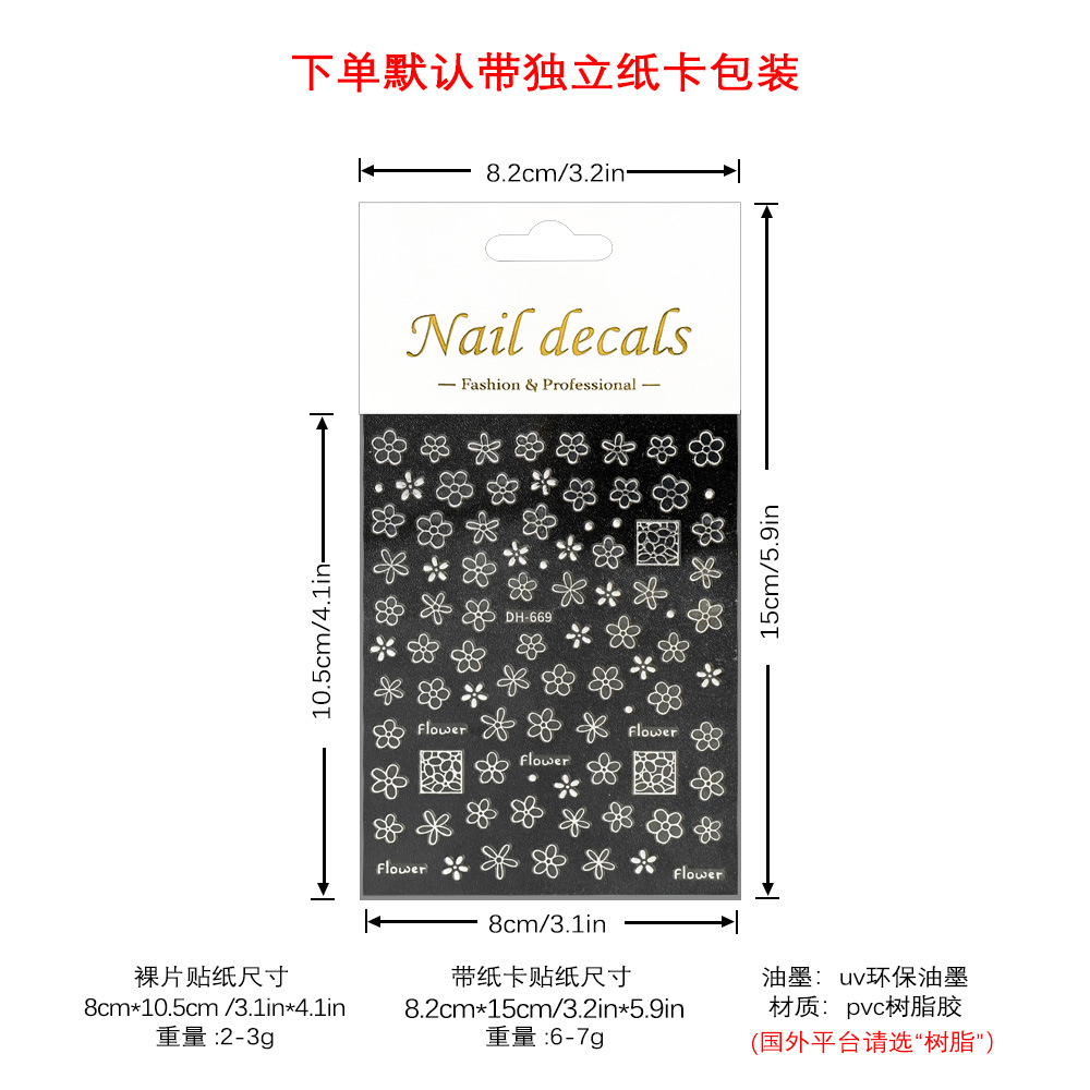 Redanco 새로운 3D 폭발 꽃 시리즈 네일 아트 스티커 접착 네일 스티커 보석 도매 DH-669