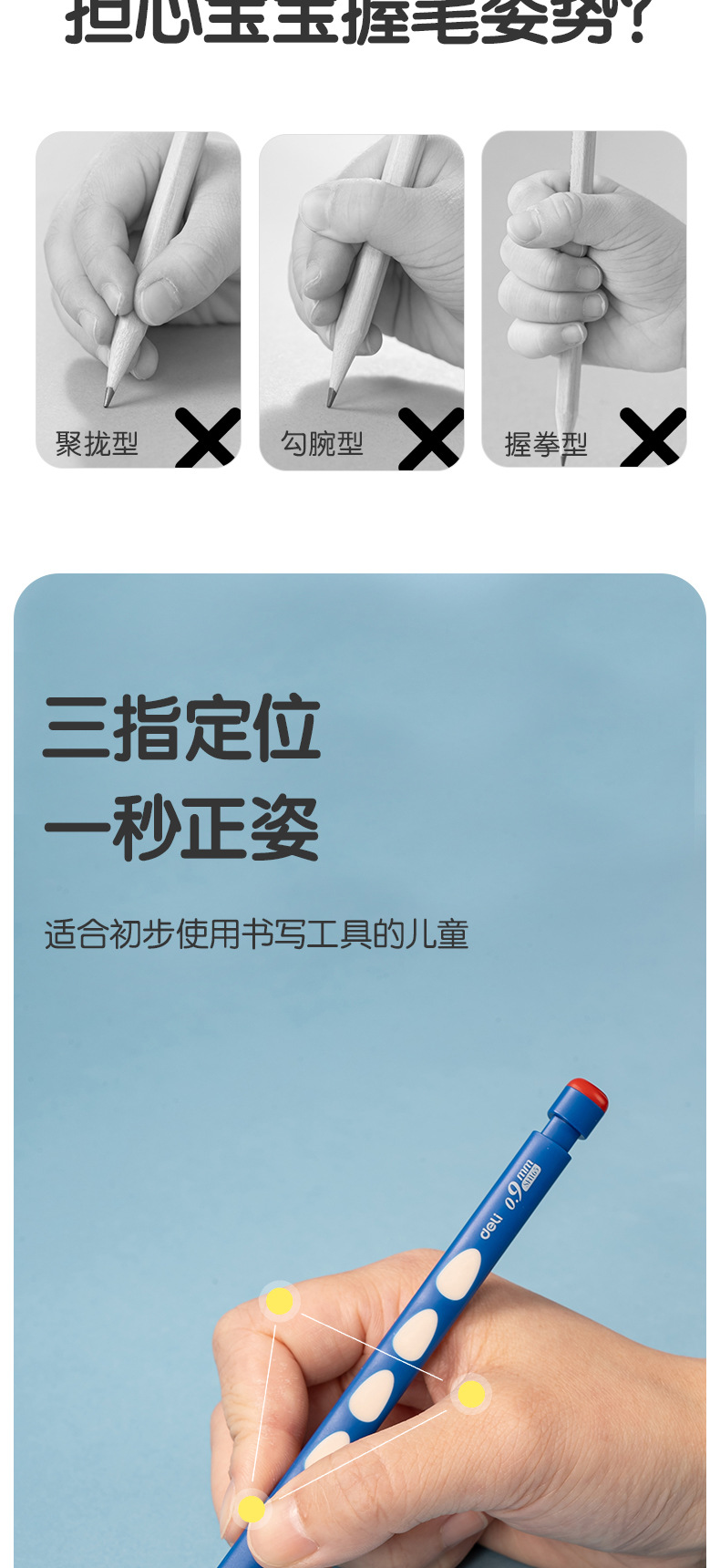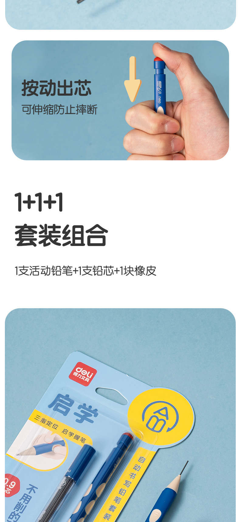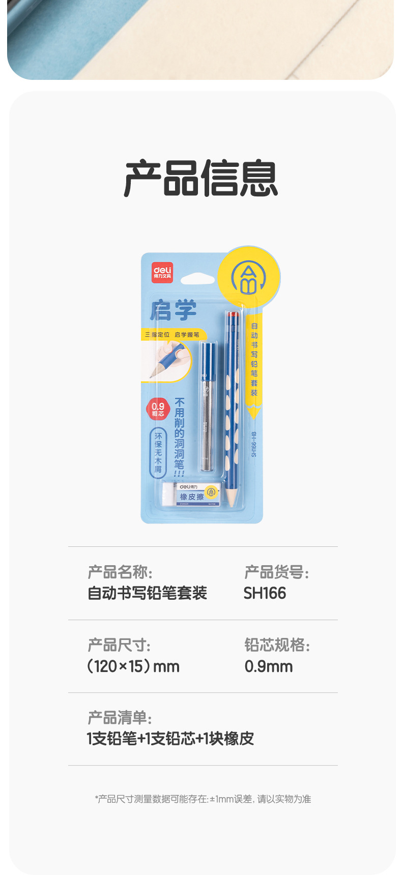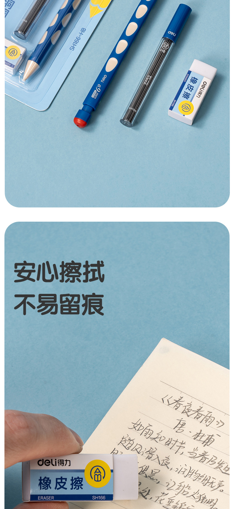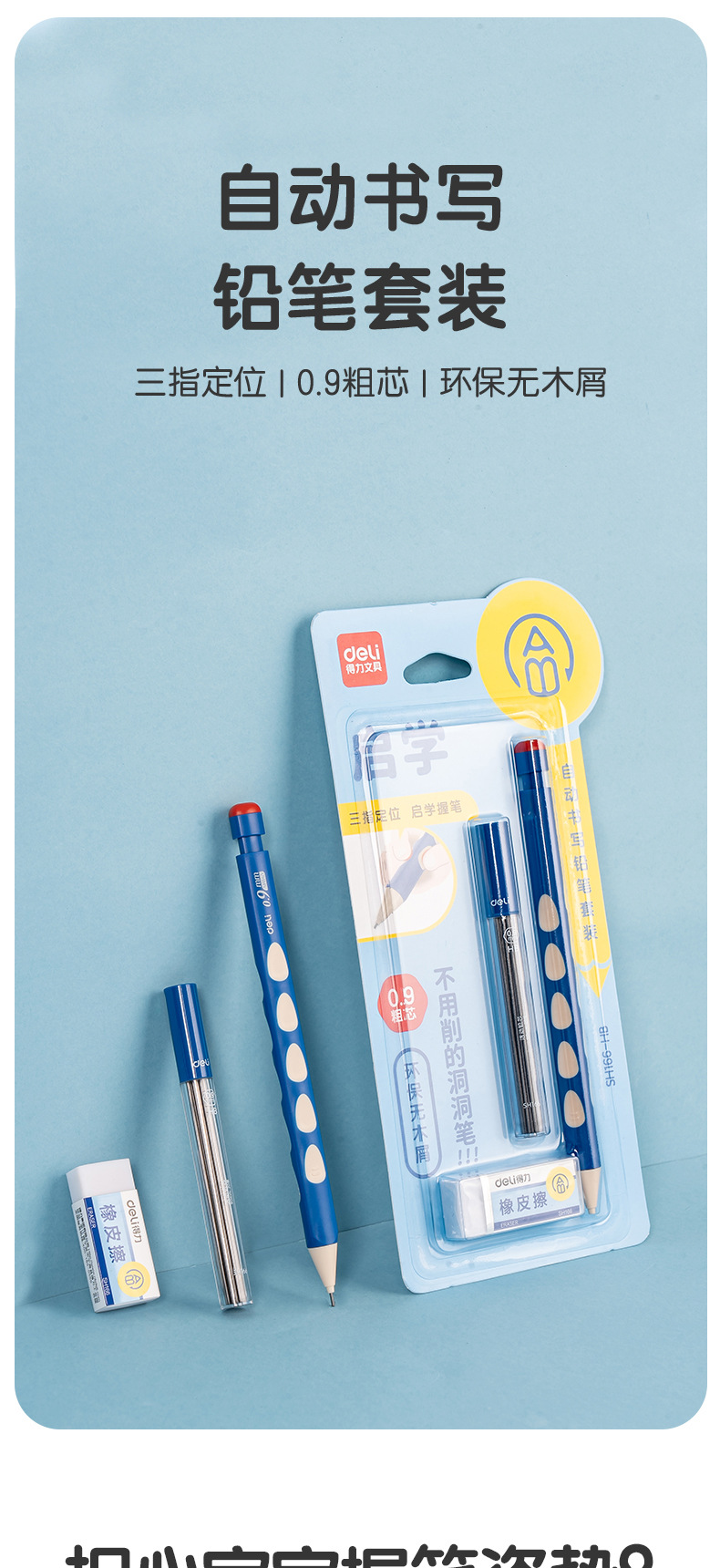델리 SH166 동굴 연필 학생 기계 연필 선명 활동 연필 0.9mm 수정 된 교정 위치 동굴 펜스토어 가기