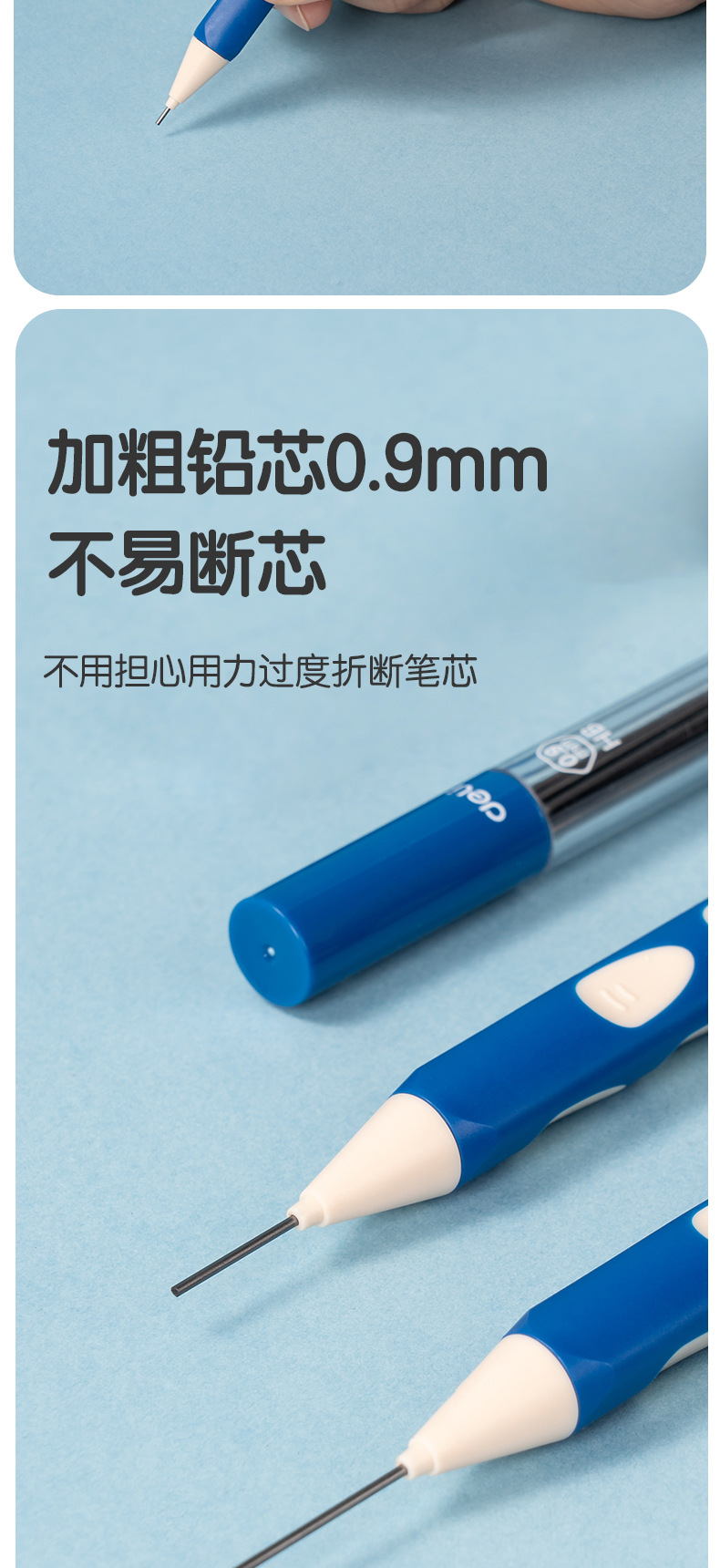 델리 SH166 동굴 연필 학생 기계 연필 선명 활동 연필 0.9mm 수정 된 교정 위치 동굴 펜