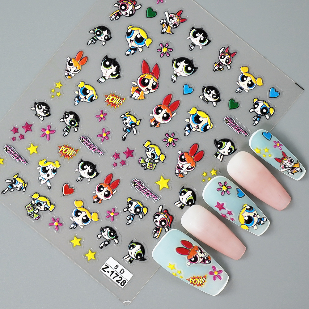 Redanco 새로운 5D 구호 만화 비행 작은 여경 네일 아트 스티커 3 차원 접착 네일 데칼 도매스토어 가기