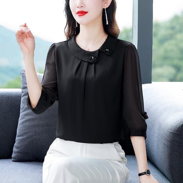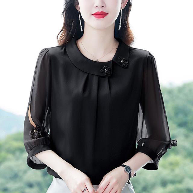 여름 새로운 서양식 하이 엔드 플러스 사이즈 통통녀 솔리드 컬러 세븐 슬리브 쉬폰 셔츠 느슨한 슬림 벨리 커버 나이 감소 탑