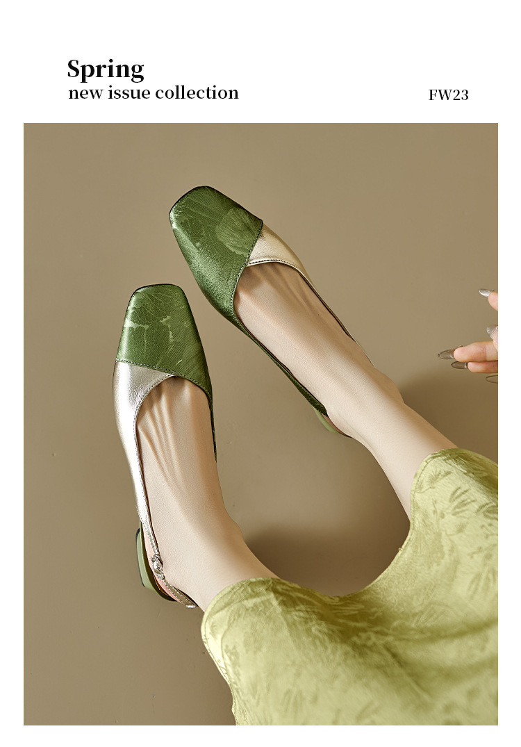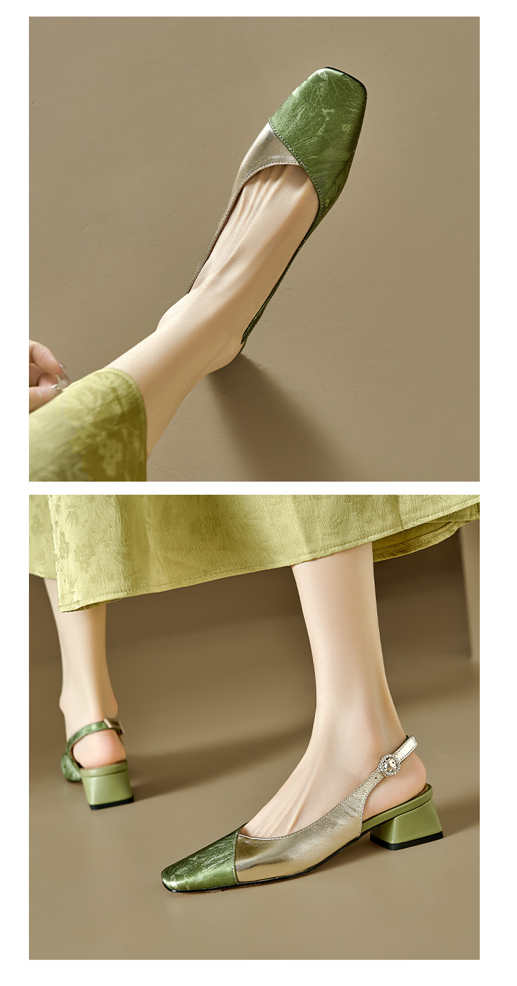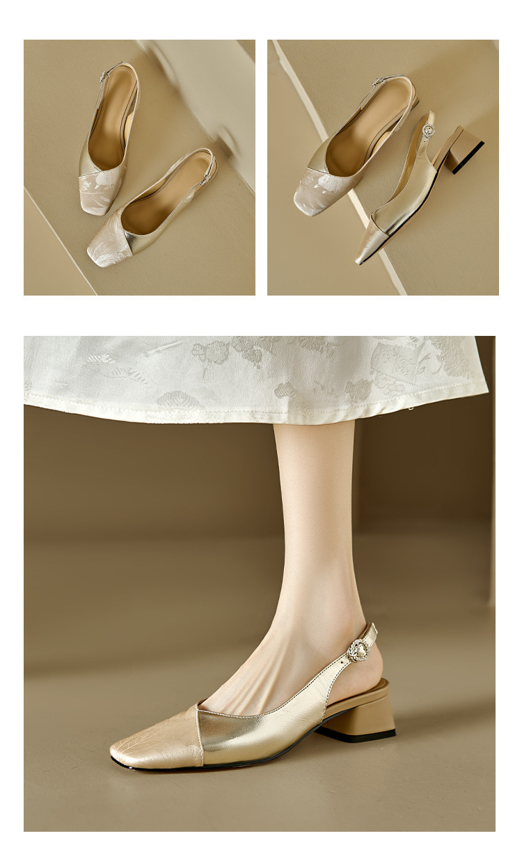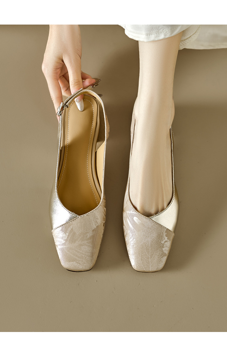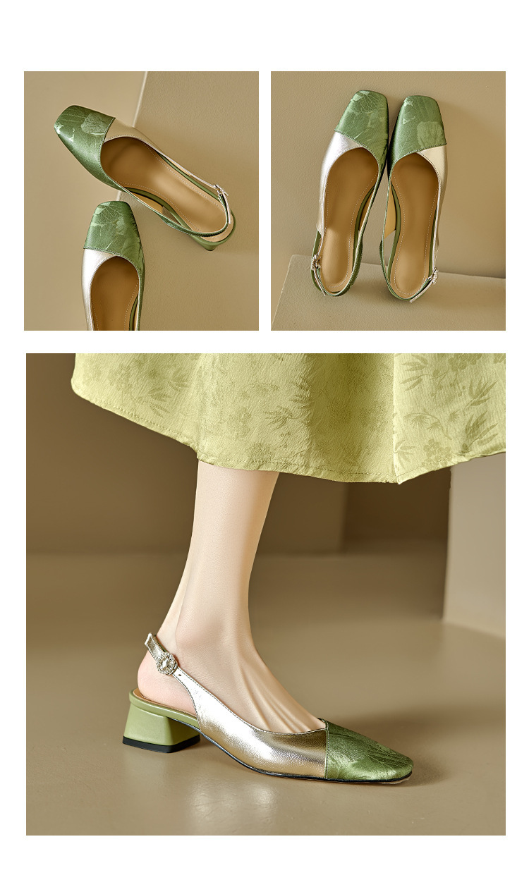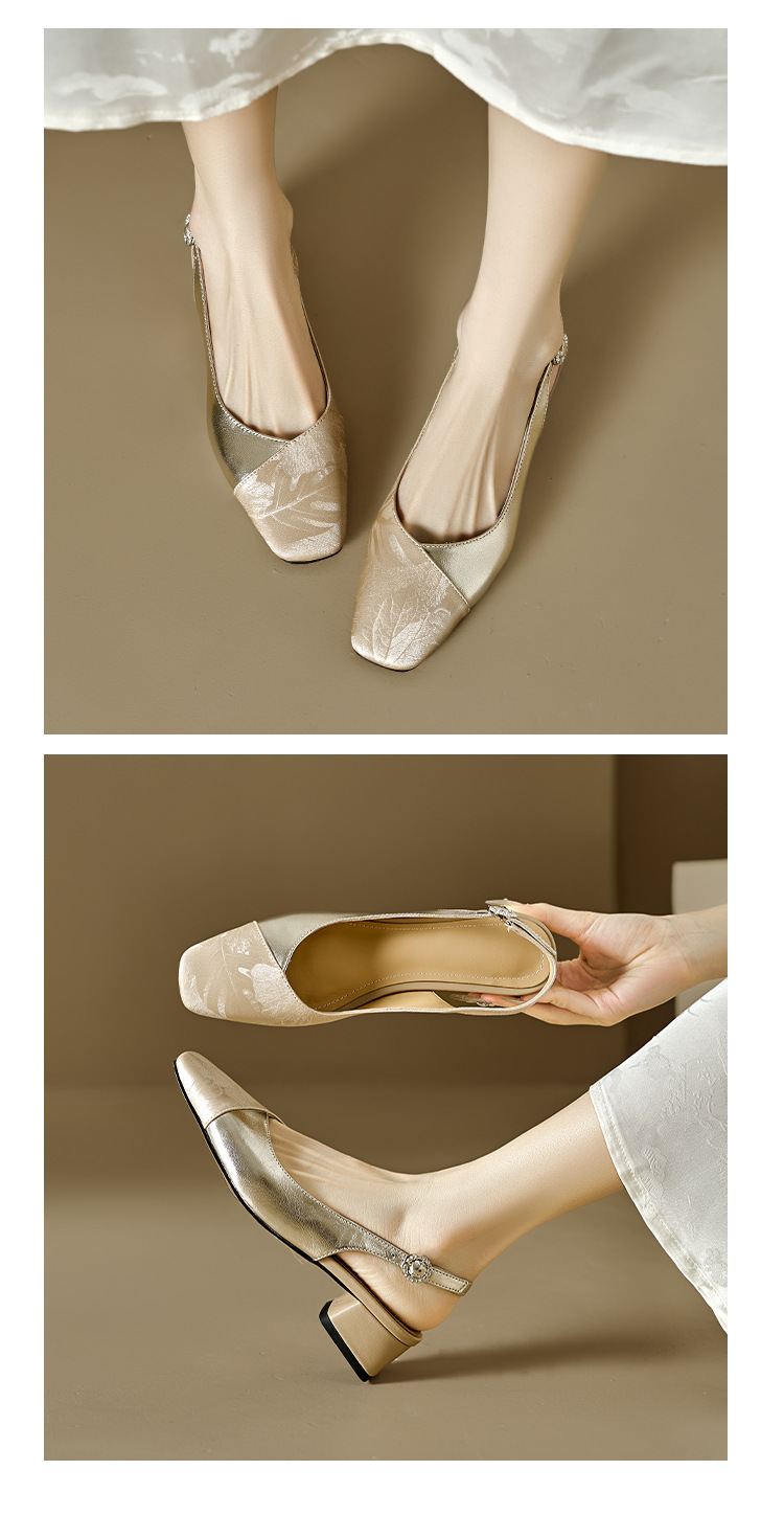 빈티지 인쇄 된 새로운 중국 스타일 스퀘어 토 바오 터우 샌들 여성용 두꺼운 힐링 2024 여름 새로운 중간 힐링 싱글 레이어 신발