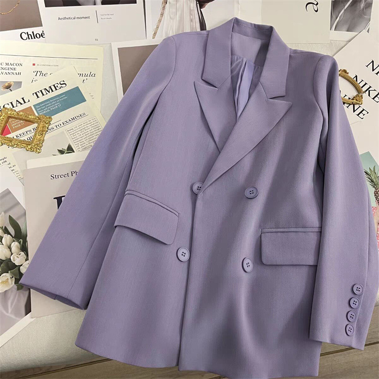 타로 퍼플 세트 재킷 여성의 새로운 디자인 올 매치 우아한 더블 브레스트 솔리드 컬러 캐주얼 세트 탑스토어 가기