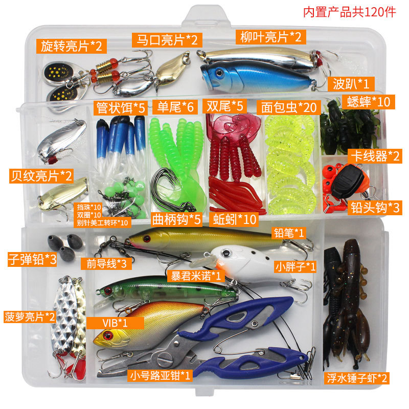 120件套装约重:366g 路亚盒子尺寸:20*10.5*4.5cm