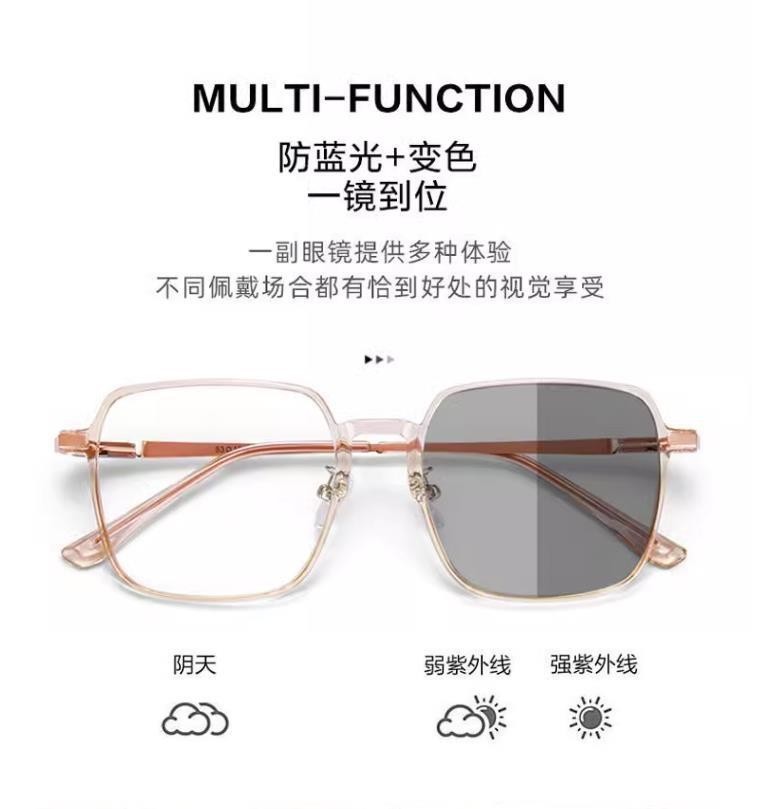 여성용 고급 사각형 변색 선글라스, 여성용 무화장 블루라이트 차단 근시 안경, 완제품 노안 안경스토어 가기