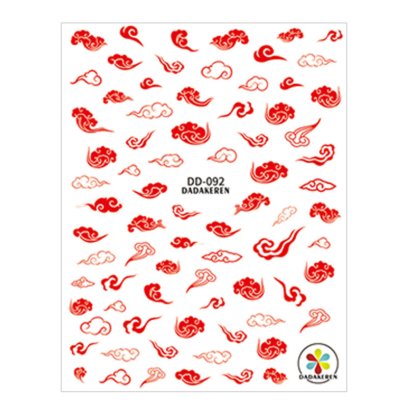 Redanco 새로운 3D 중국 스타일 레드 샹윤 폭발 네일 아트 스티커 접착 네일 스티커 도매