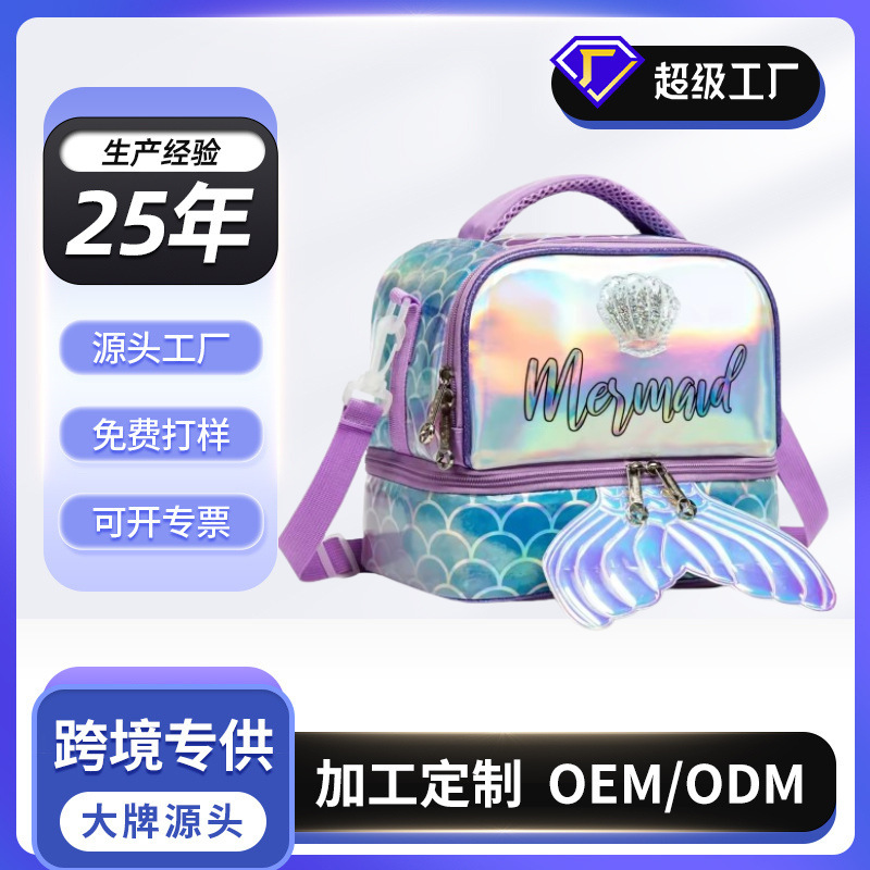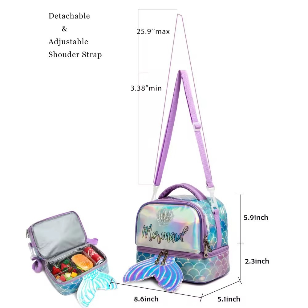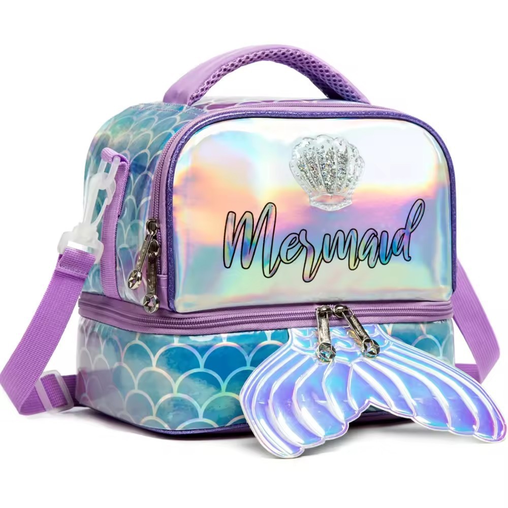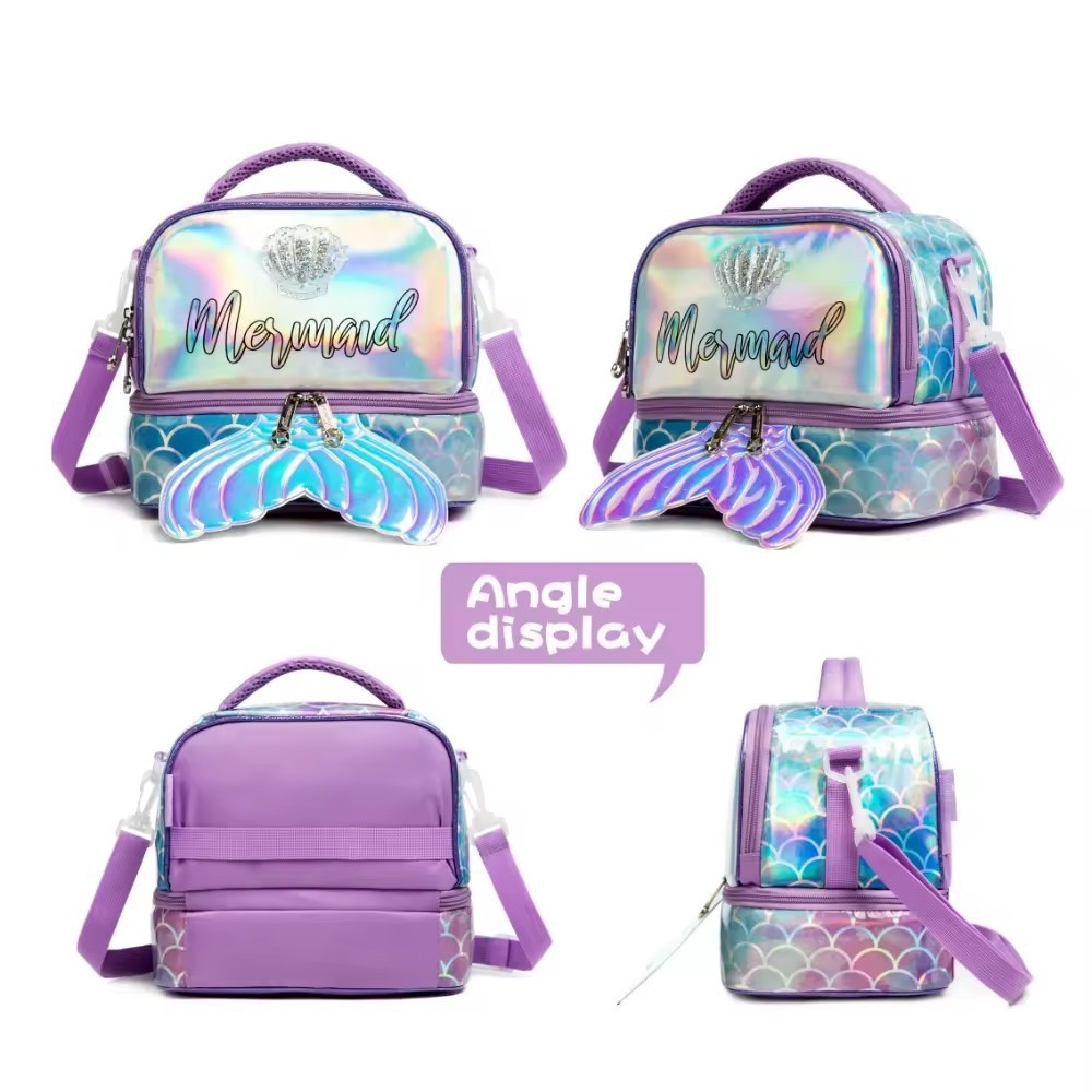 아마존 핫 절연 가방 어린이 귀여운 점심 가방 쌀 휴대용 크로스 바디 점심 가방 인어 도시락 가방