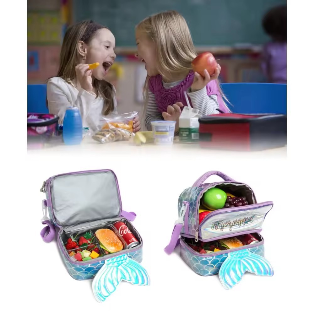 아마존 핫 절연 가방 어린이 귀여운 점심 가방 쌀 휴대용 크로스 바디 점심 가방 인어 도시락 가방스토어 가기