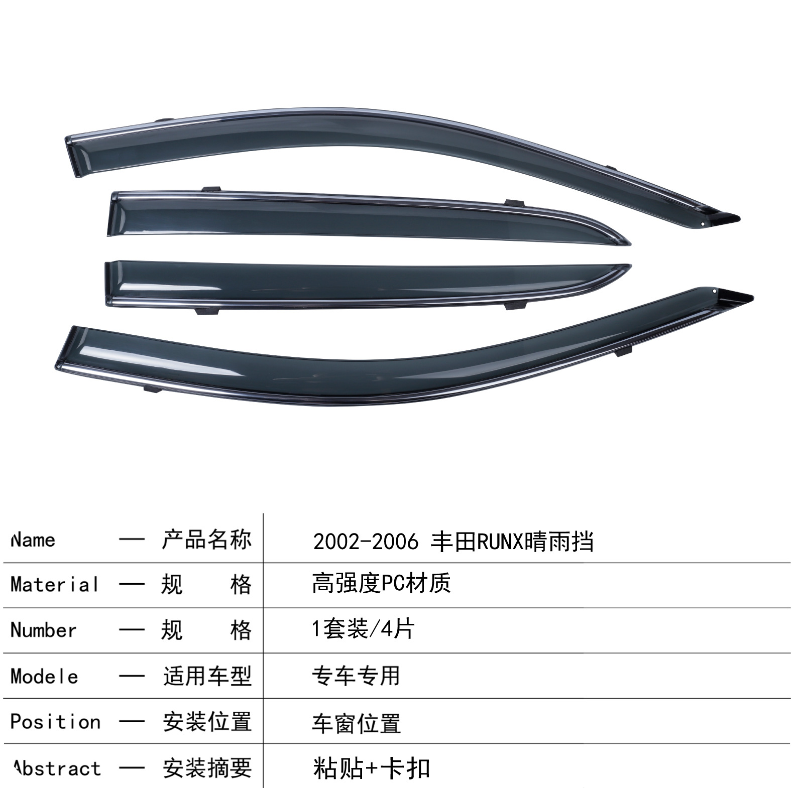 도요타의 9 세대 Corolla RUNX 해치백 에디션 창 비 버클 접착 자동차 레인 버킷에 적용되는 대외 무역