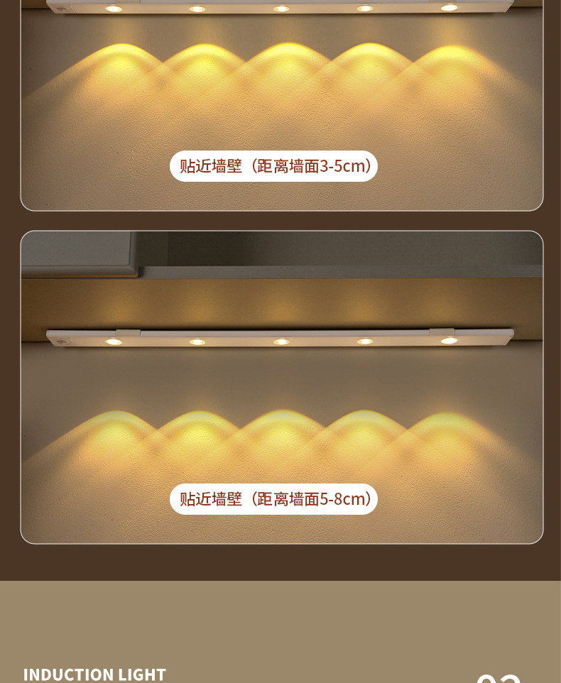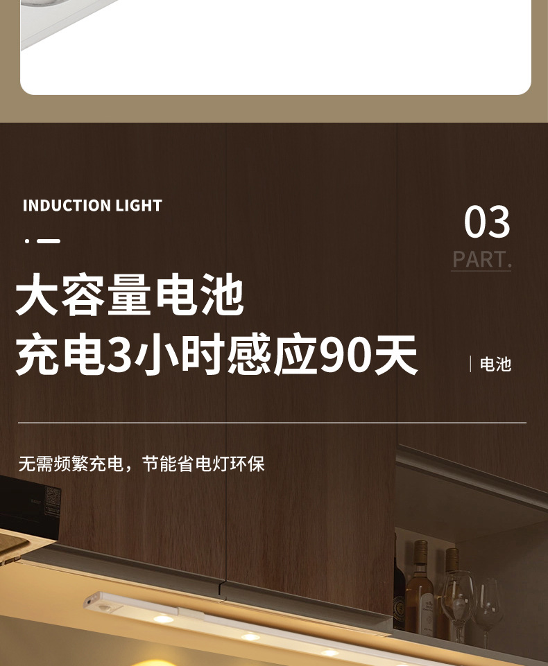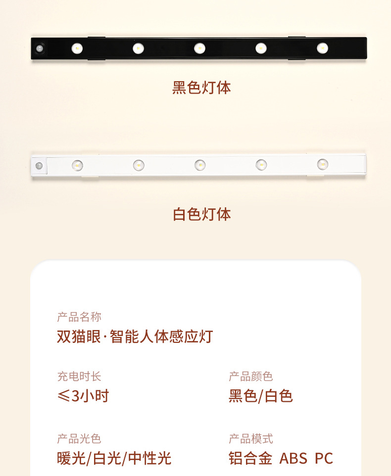 지능형 led 인체 유도 램프 초박형 더블 레이어 고양이 아이 힐 라이트 바 충전식 자체 접착 옷장 와인 캐비닛스토어 가기