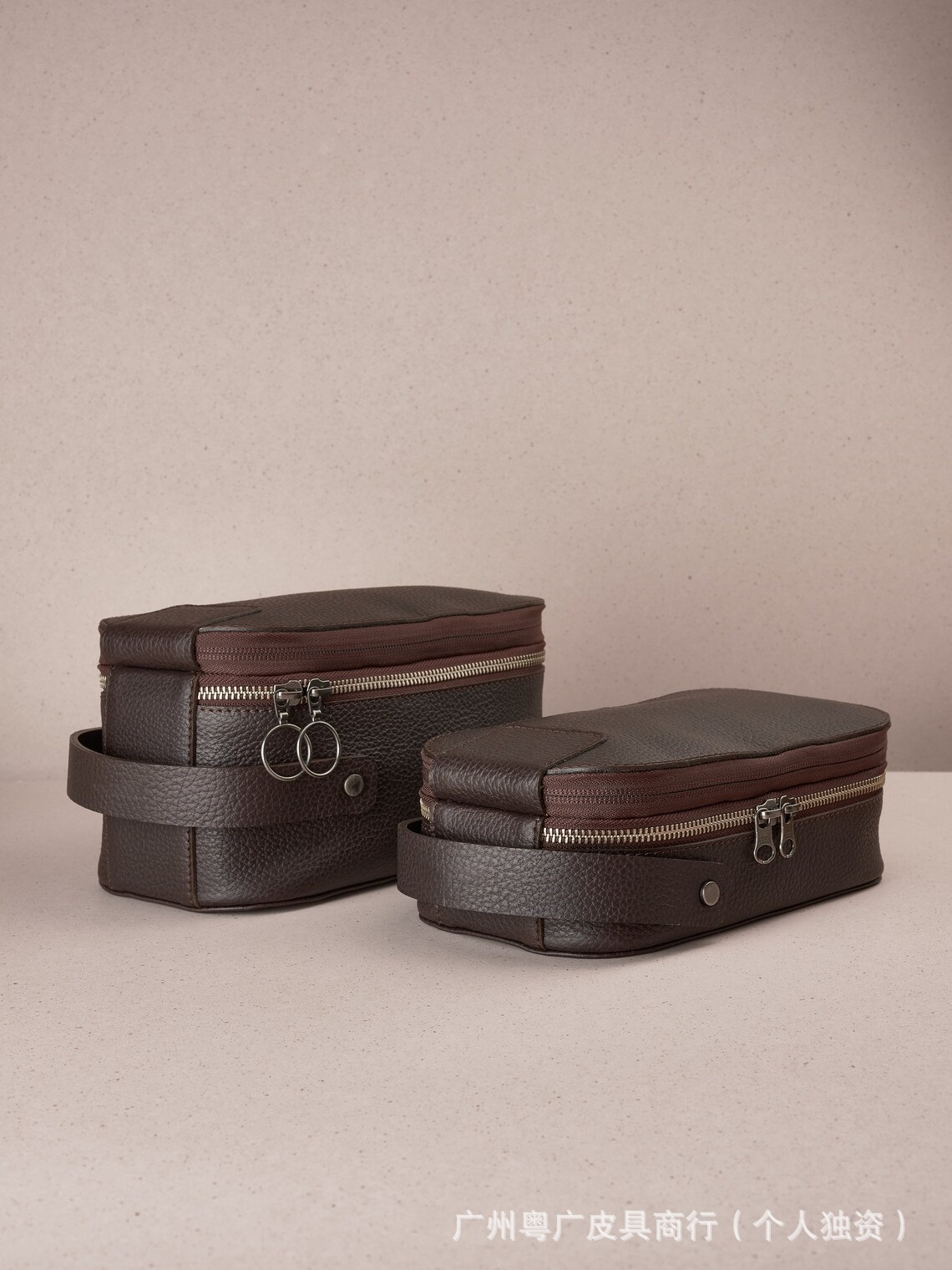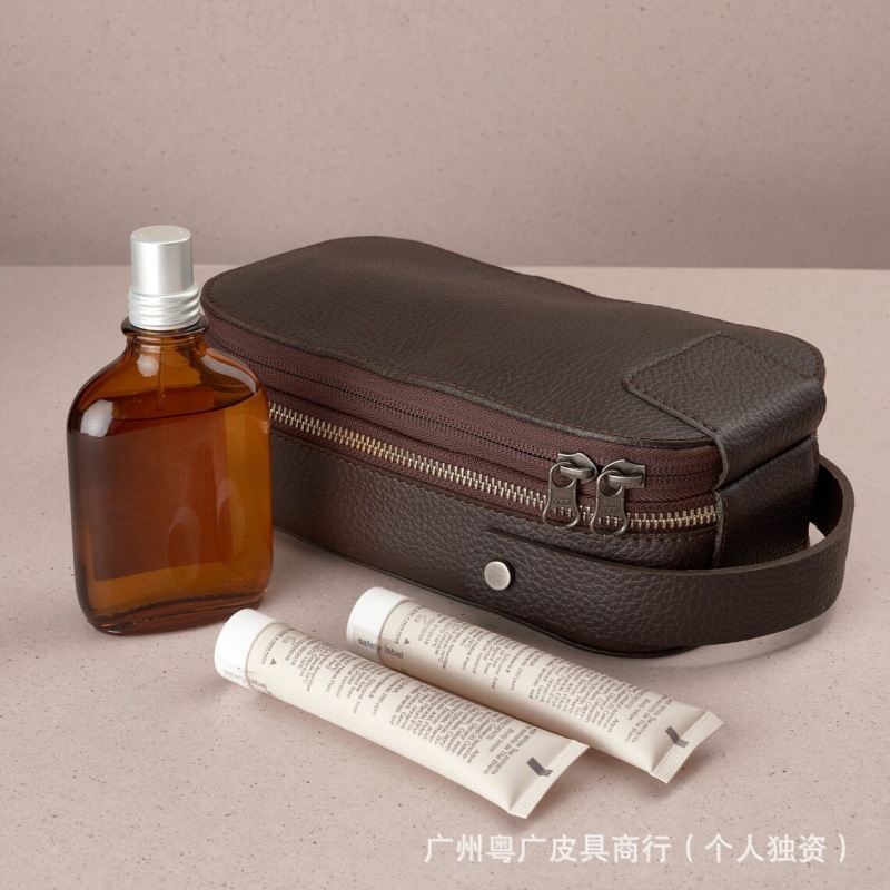 국경을 넘는 새로운 유럽과 미국의 정품 가죽 대용량 화장품 가방 여행 텍스처 휴대용 더블 레이어 워시 케어 백 남성과 여성스토어 가기