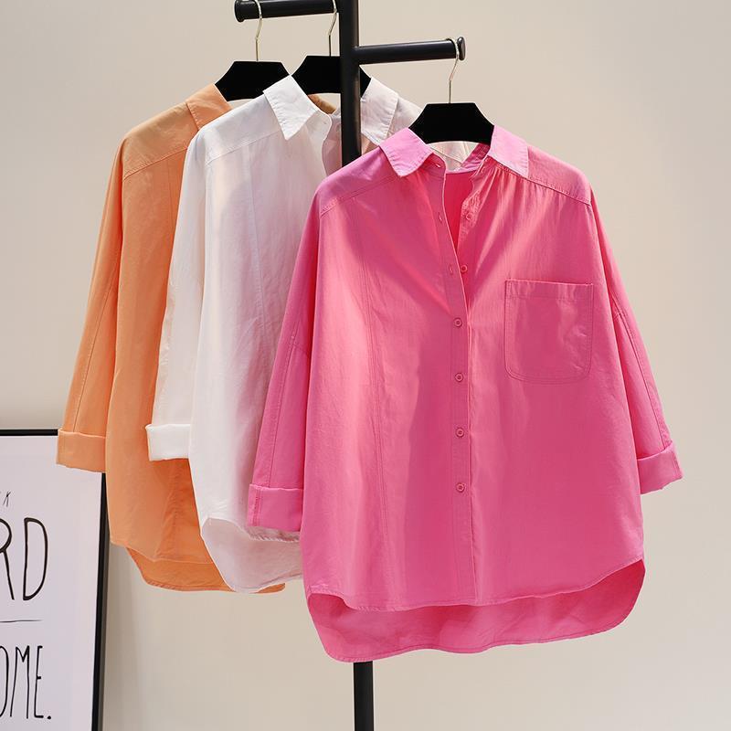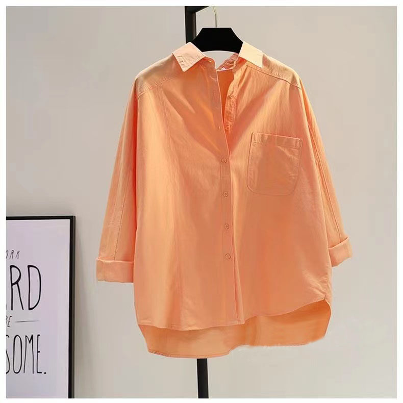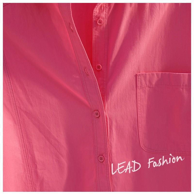 100 면 레드 긴 소매 셔츠 2024 새로운 포켓 느슨한 슬림 캐주얼 탑스토어 가기