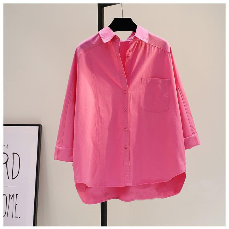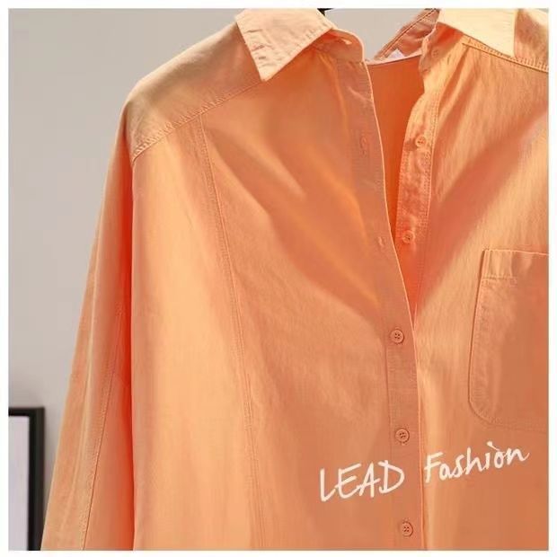 100 면 레드 긴 소매 셔츠 2024 새로운 포켓 느슨한 슬림 캐주얼 탑