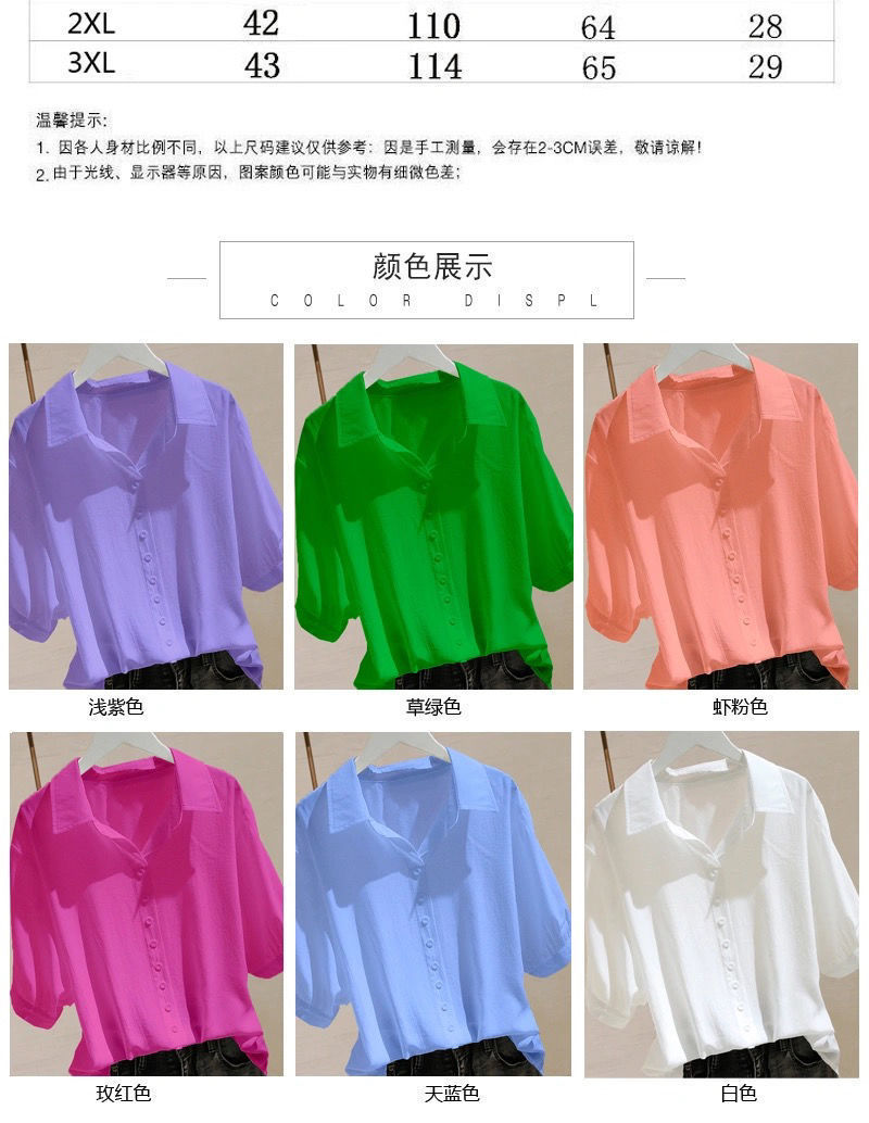 칼라 반팔 셔츠 여성용 여름 얇은 2024 새로운 한국 스타일 느슨한 플러스 사이즈 슬리밍 디자인 틈새 트렌디 탑스토어 가기