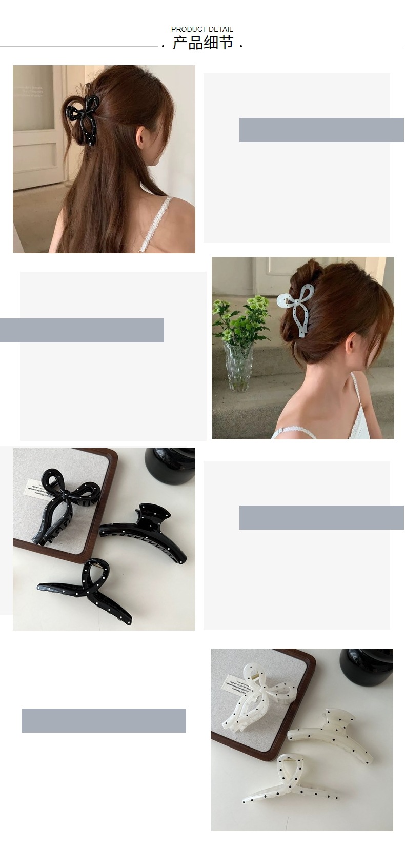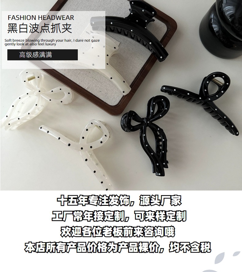 새로운 한국식 흑백 폴로 도트 스퀘어 보우 그랩 클립 유행 올매치 머리 상어 클립 헤드웨어 여성