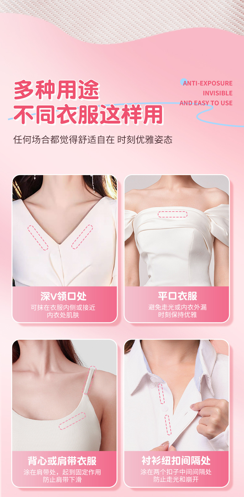 GECOMO 미끄럼 방지 접착제 다기능 소녀 누출 방지 빛 보이지 않는 추적없는 비 피부 미끄럼 방지 접착제 도매스토어 가기