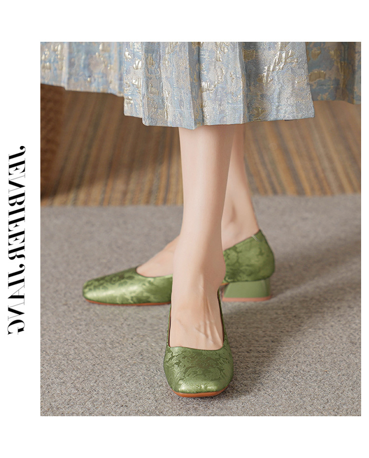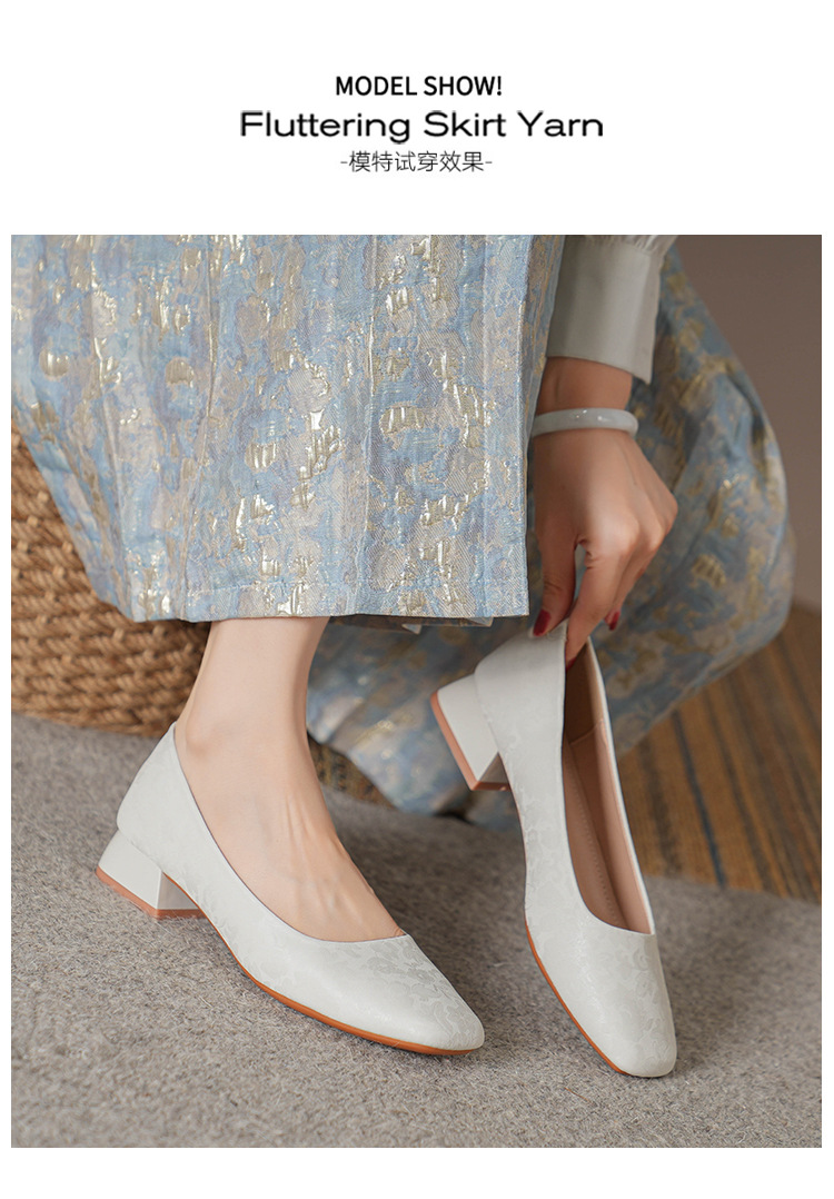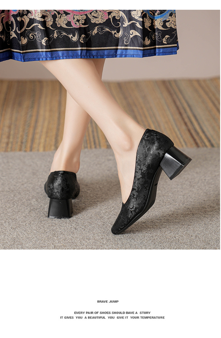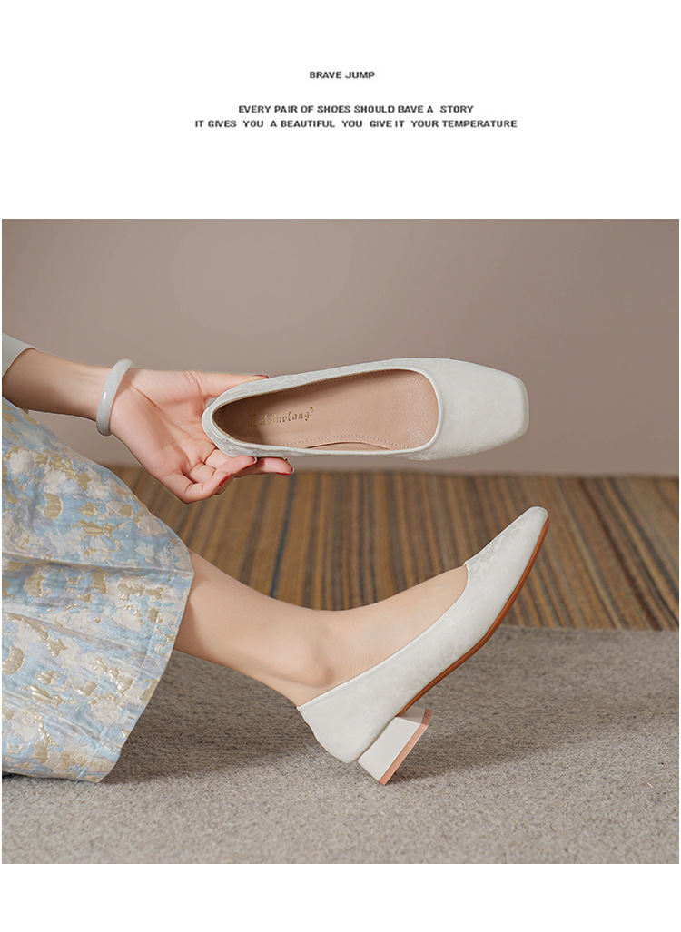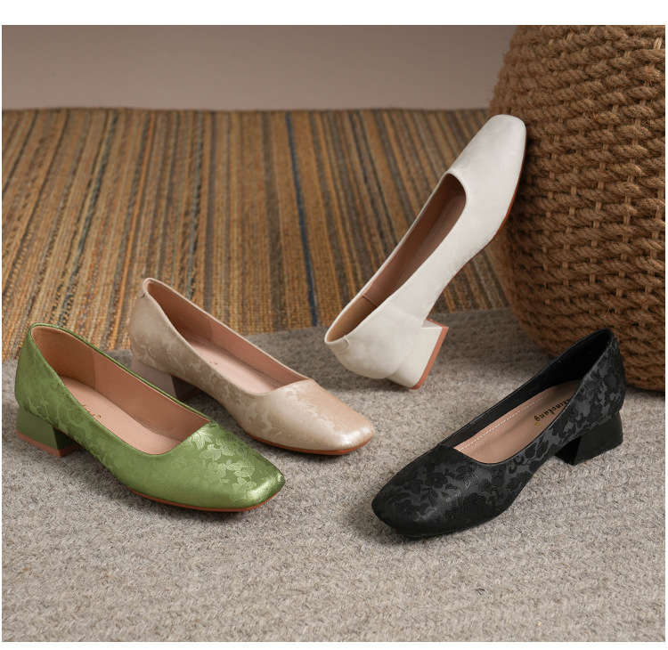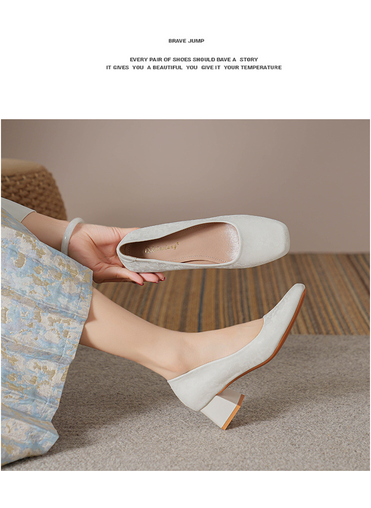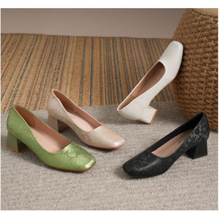 2023년 신상 인기 레트로 통근용 부드러운 가죽 스퀘어토 미들힐 여성 구두스토어 가기