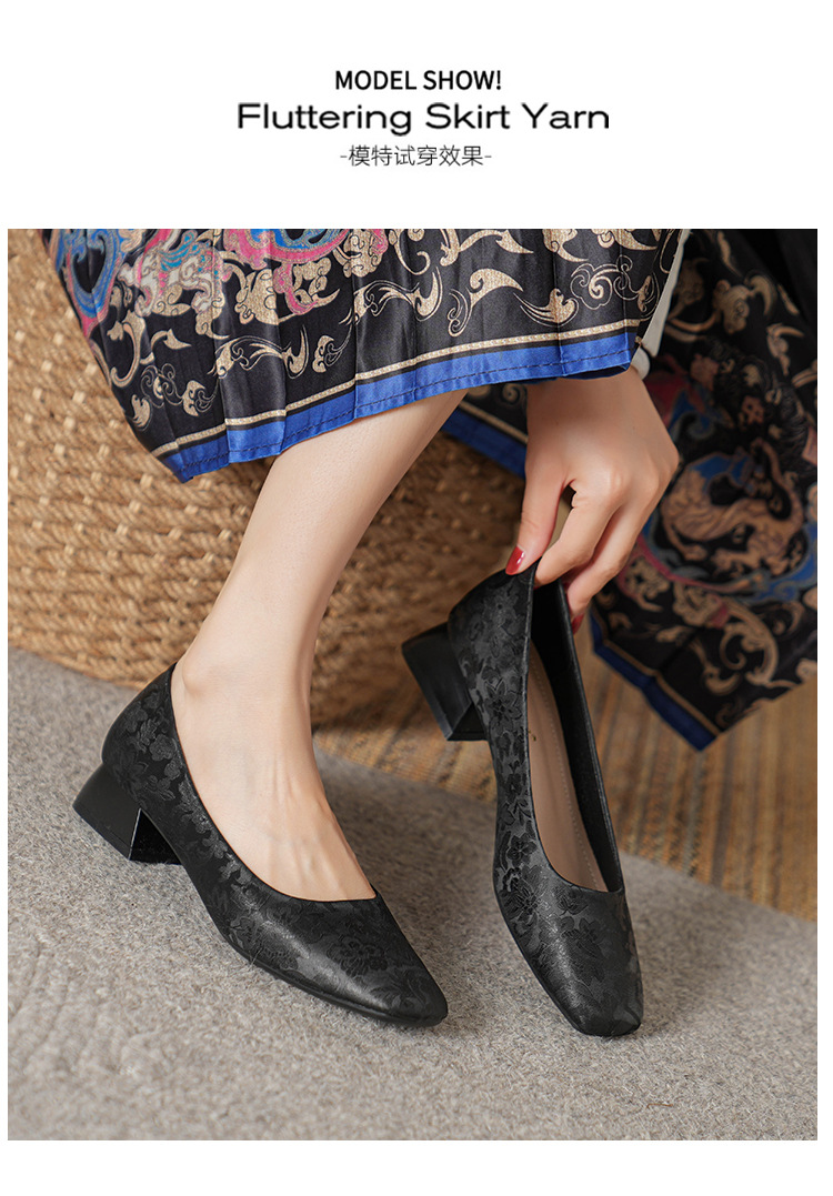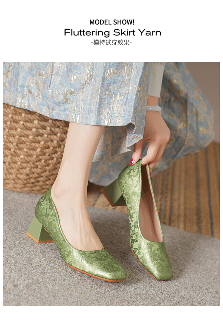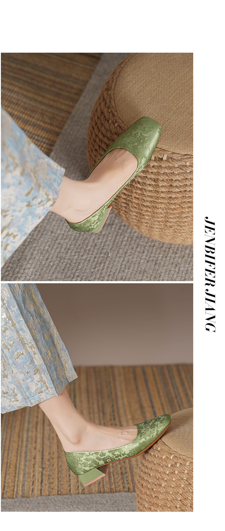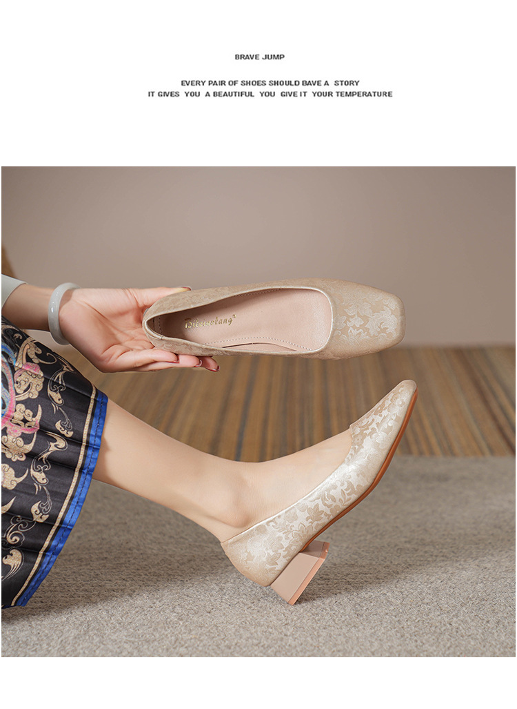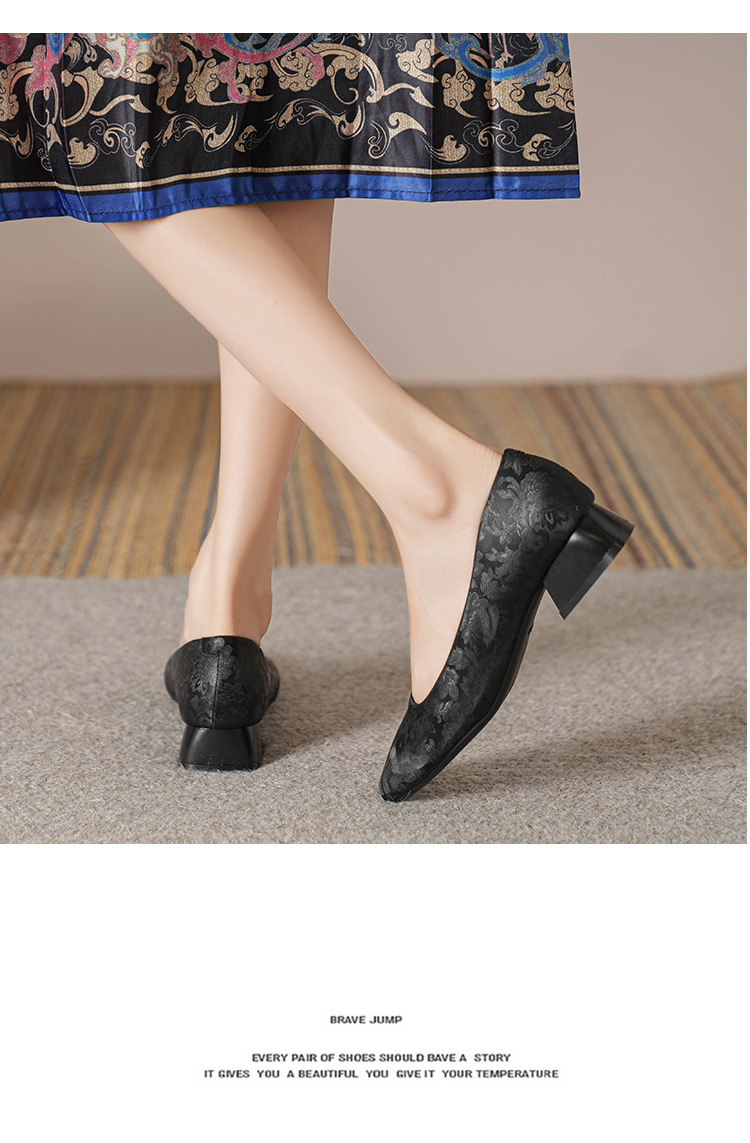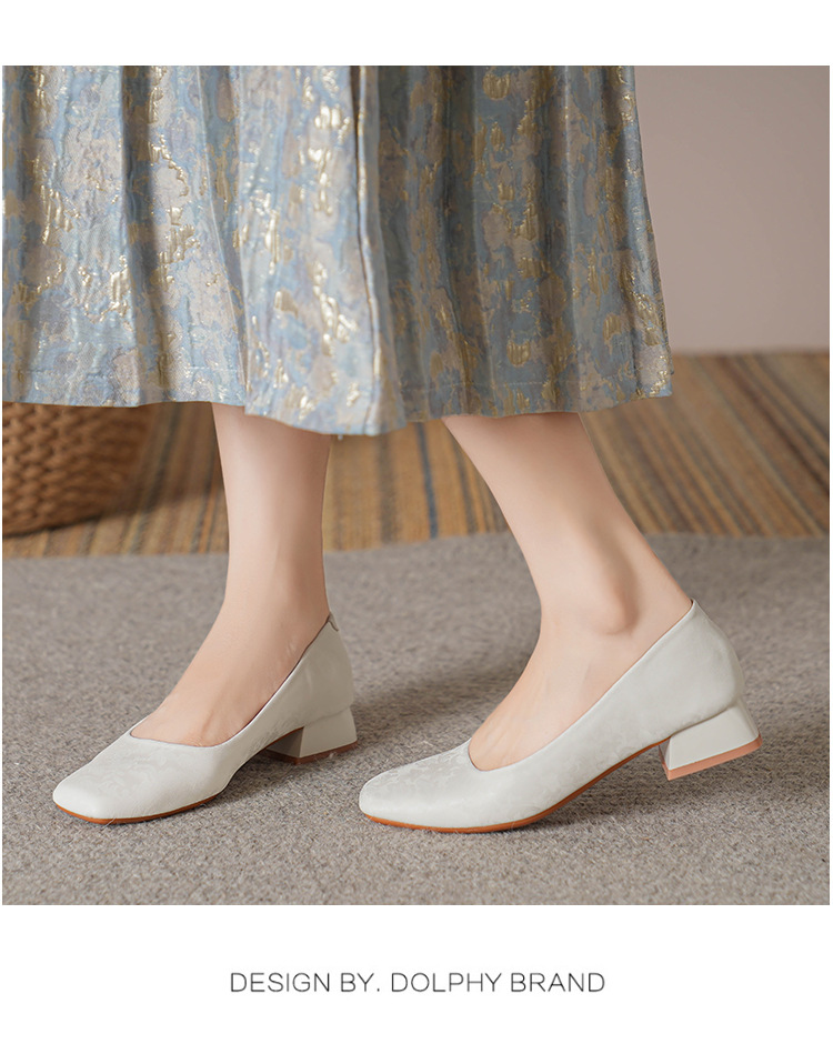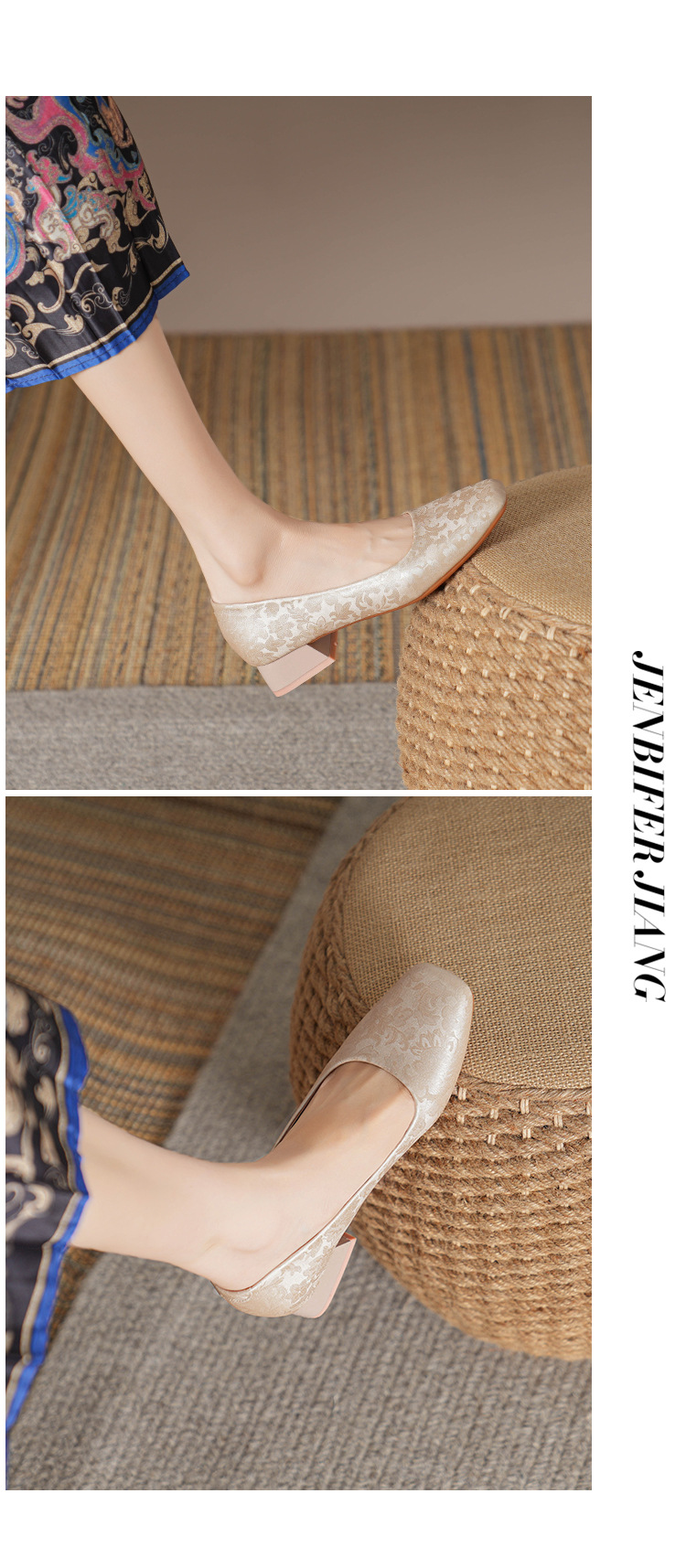 2023년 신상 인기 레트로 통근용 부드러운 가죽 스퀘어토 미들힐 여성 구두스토어 가기