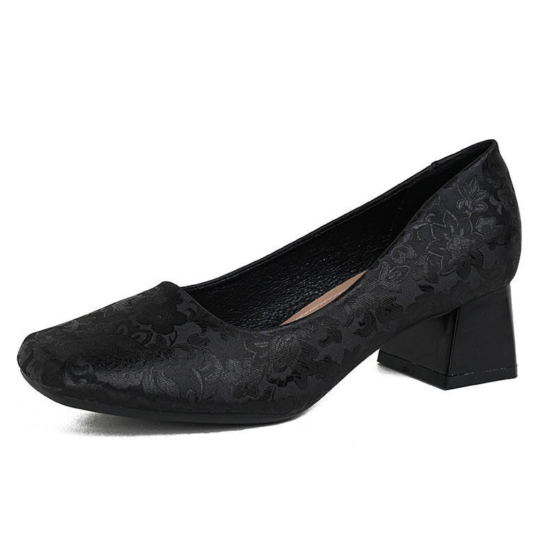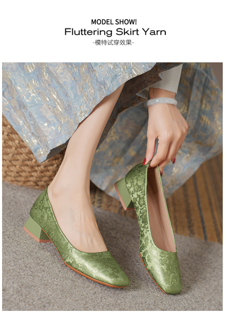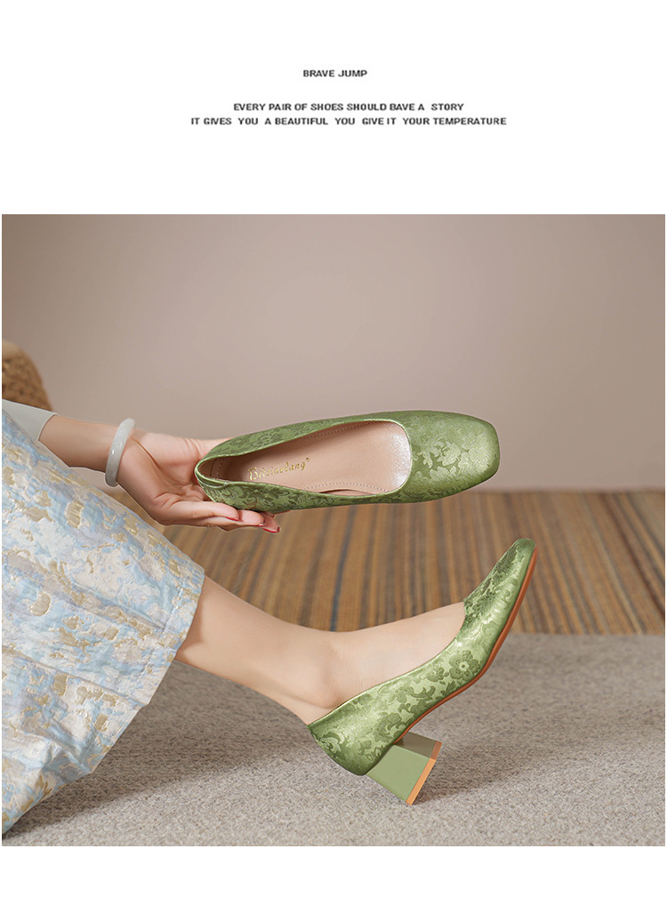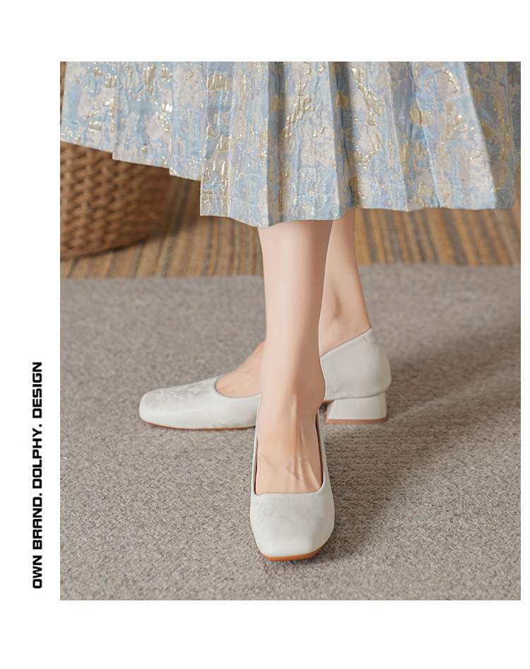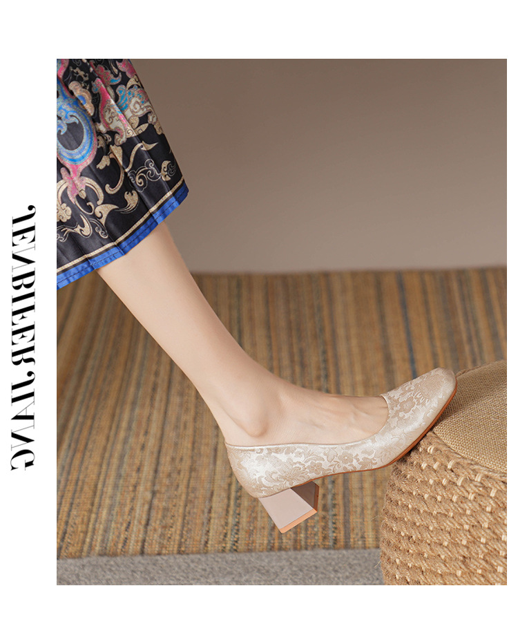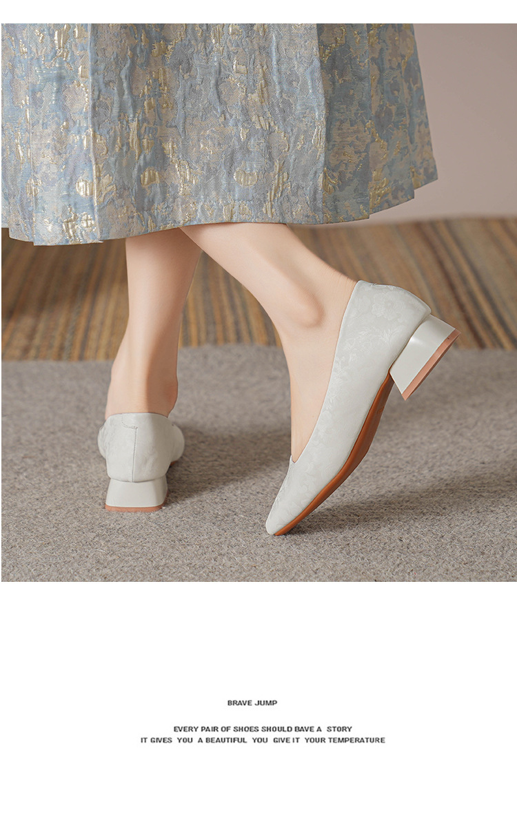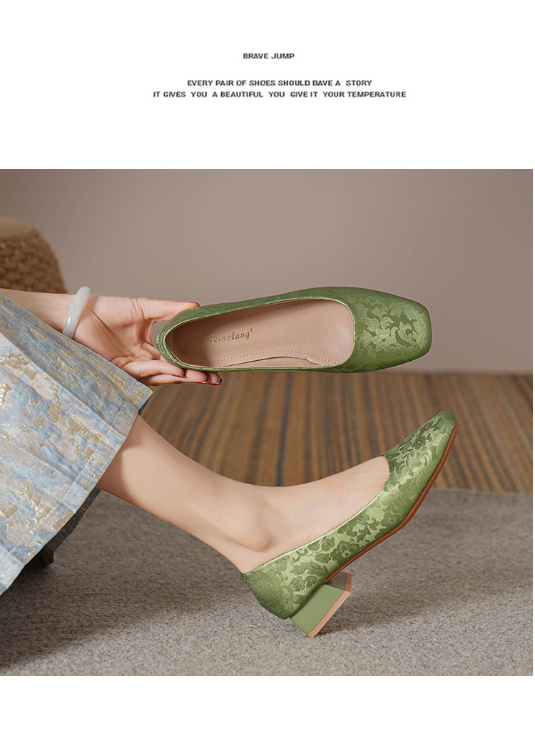 2023년 신상 인기 레트로 통근용 부드러운 가죽 스퀘어토 미들힐 여성 구두스토어 가기
