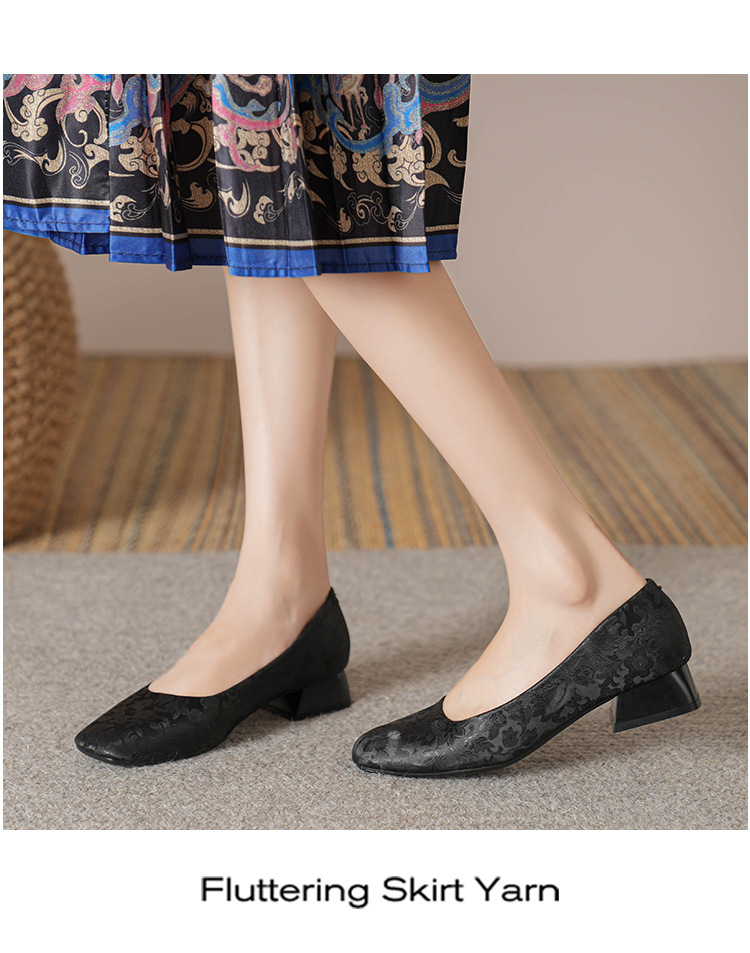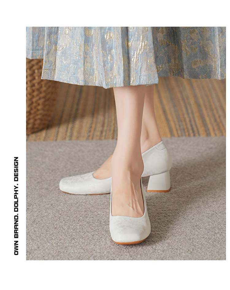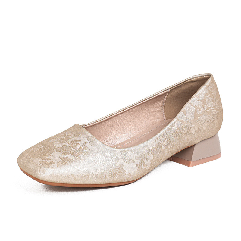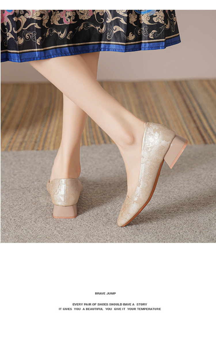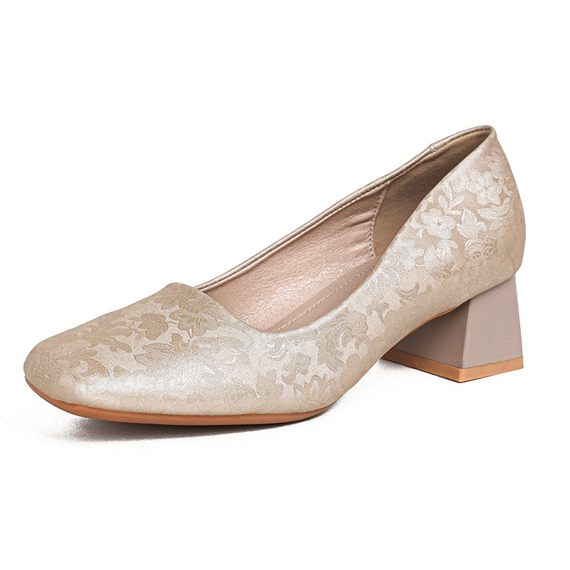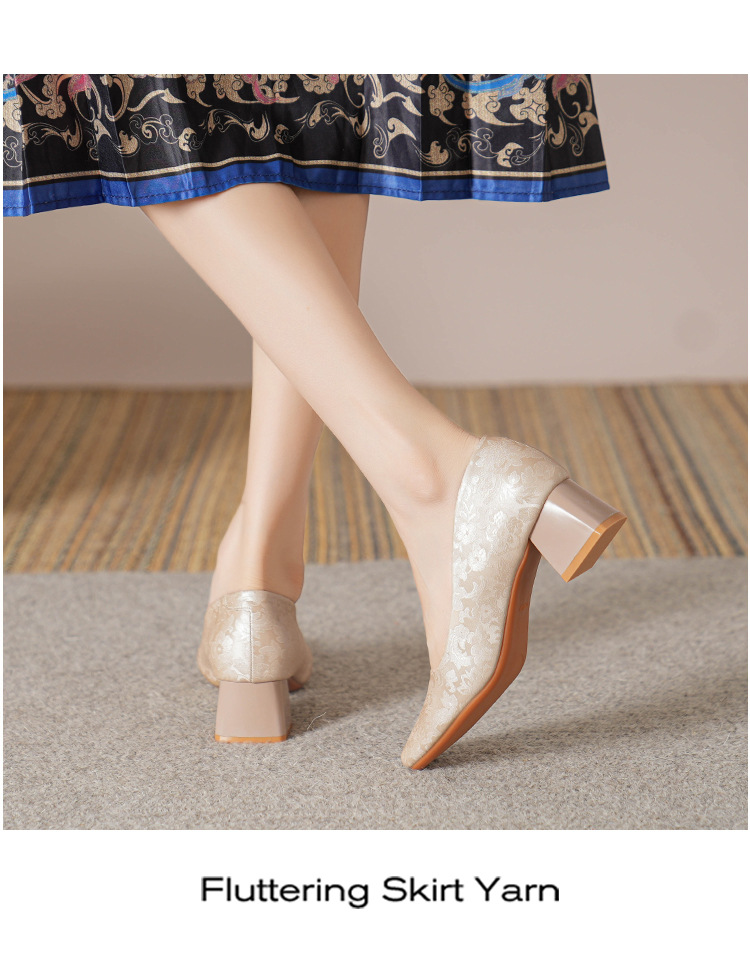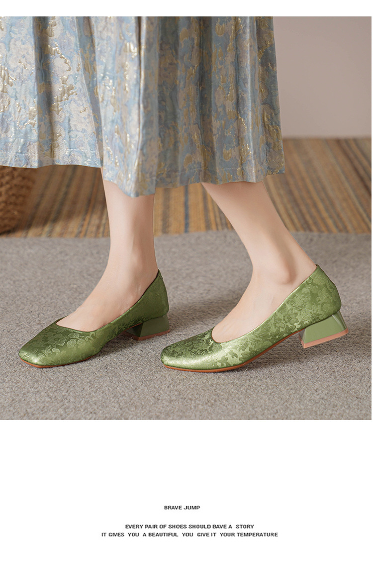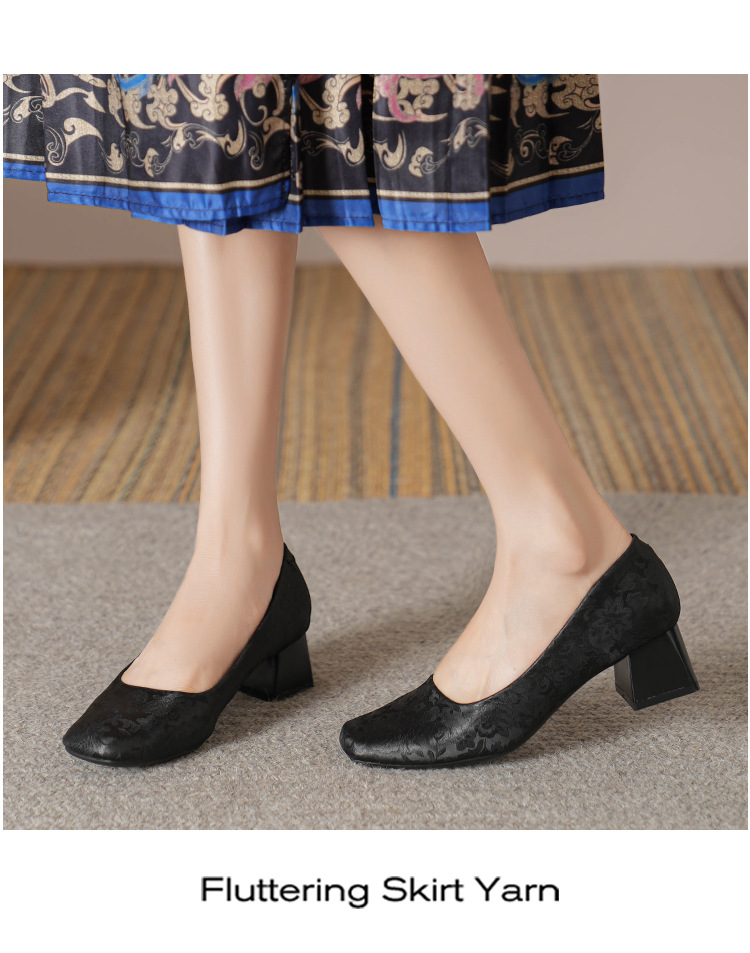 2023년 신상 인기 레트로 통근용 부드러운 가죽 스퀘어토 미들힐 여성 구두스토어 가기