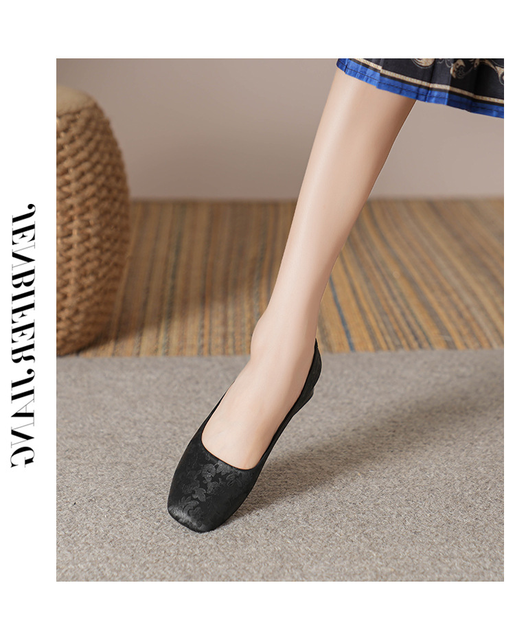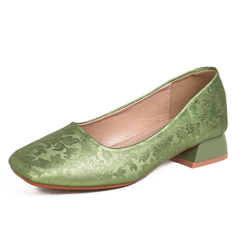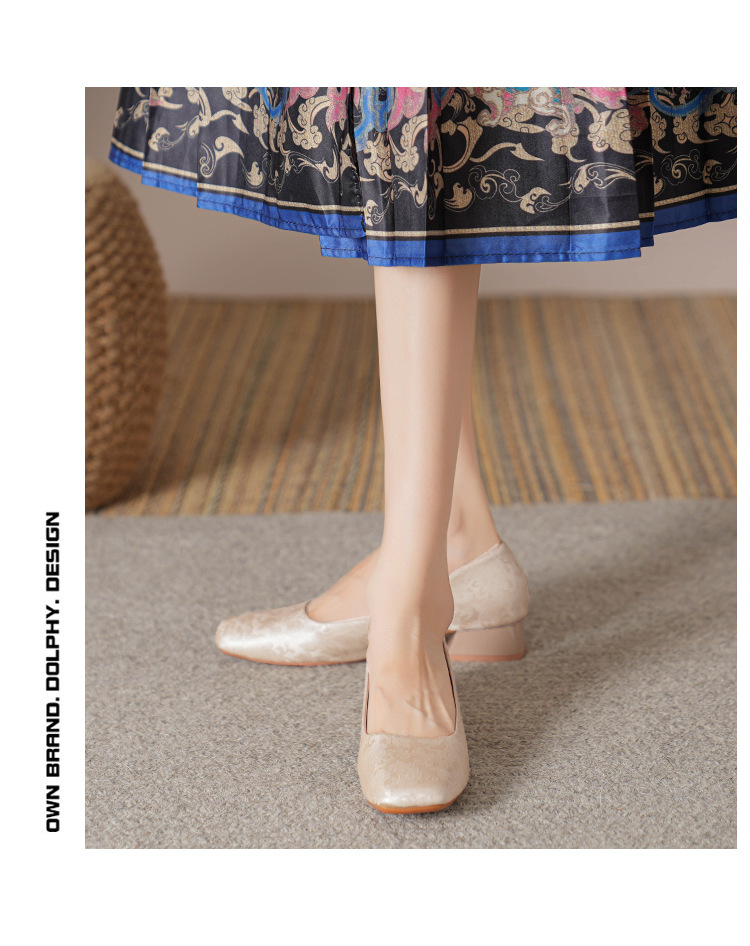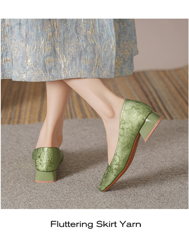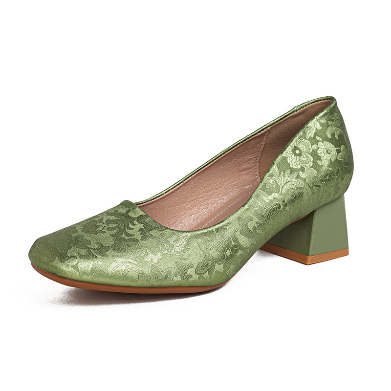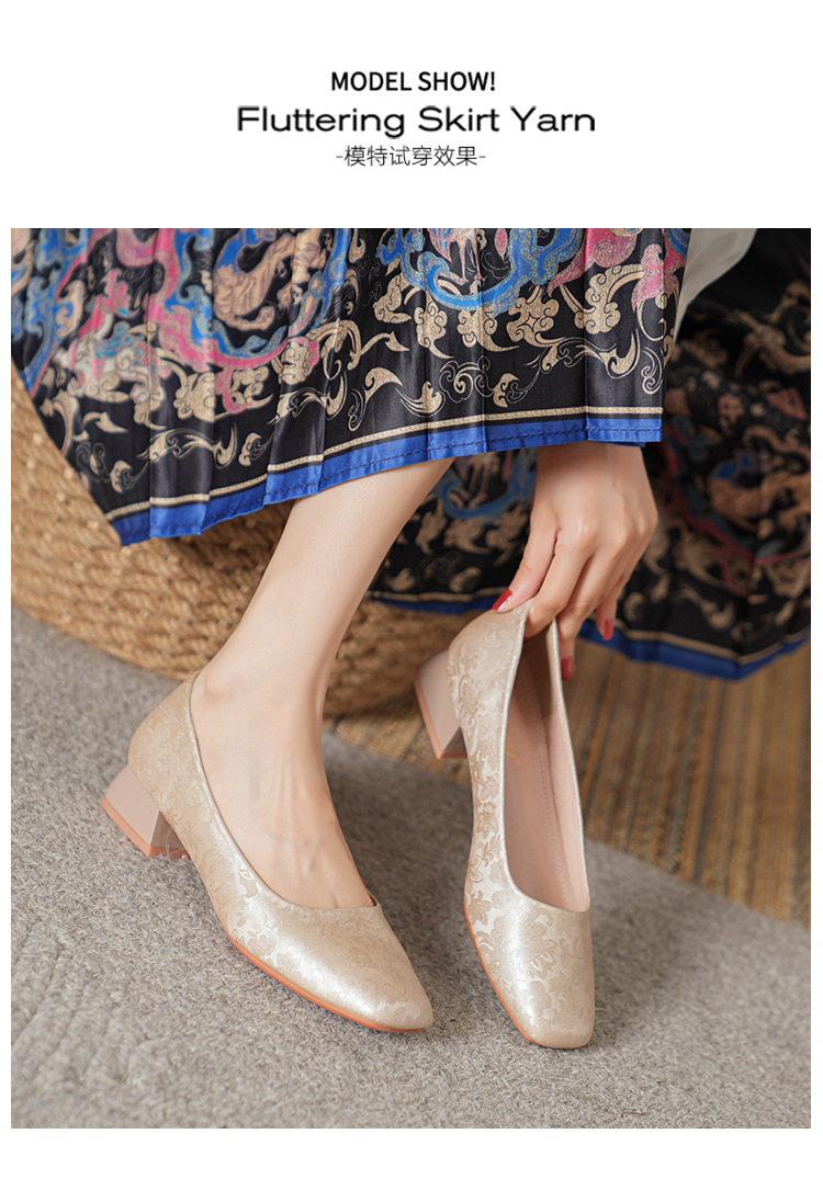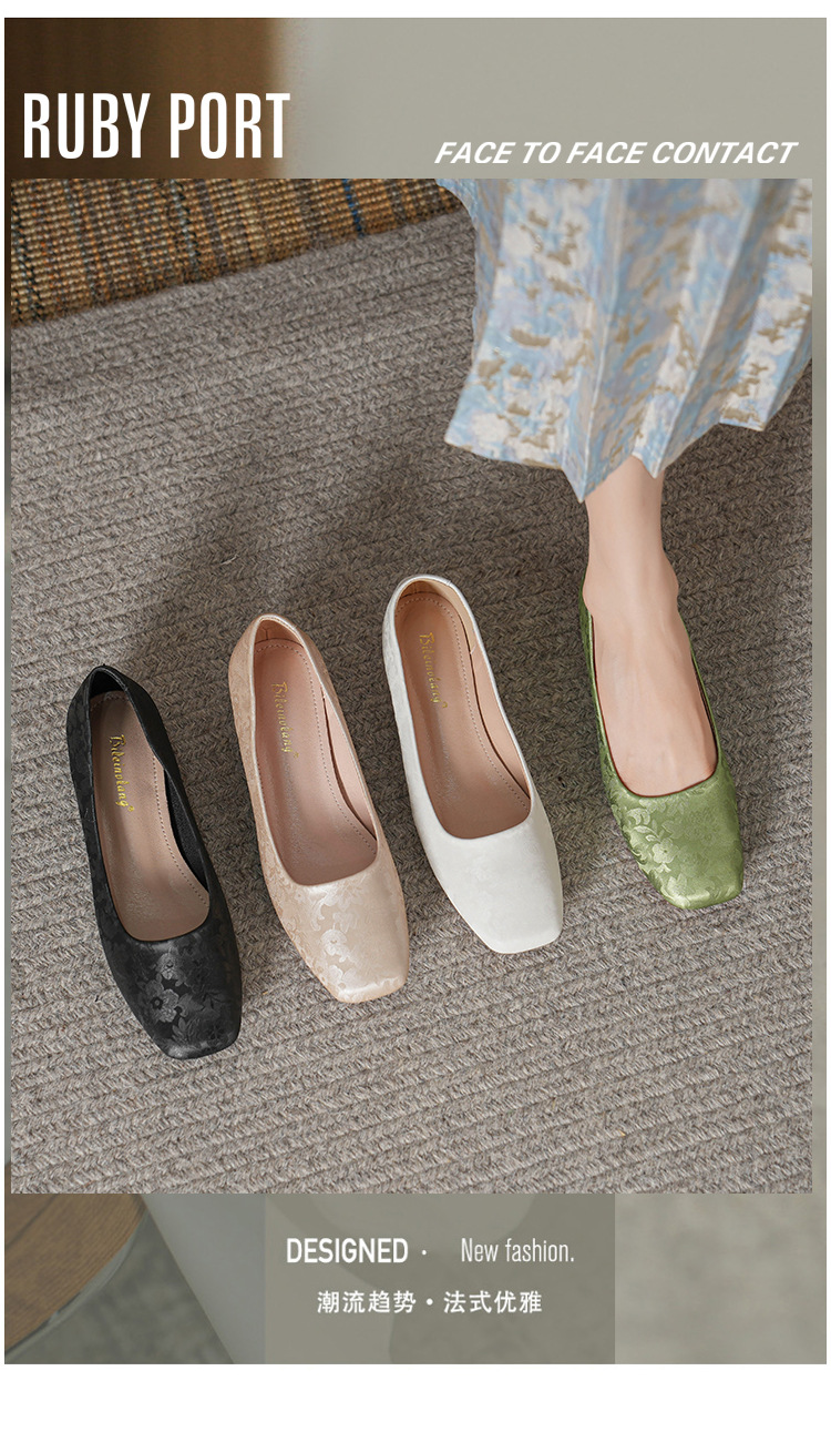 2023년 신상 인기 레트로 통근용 부드러운 가죽 스퀘어토 미들힐 여성 구두스토어 가기