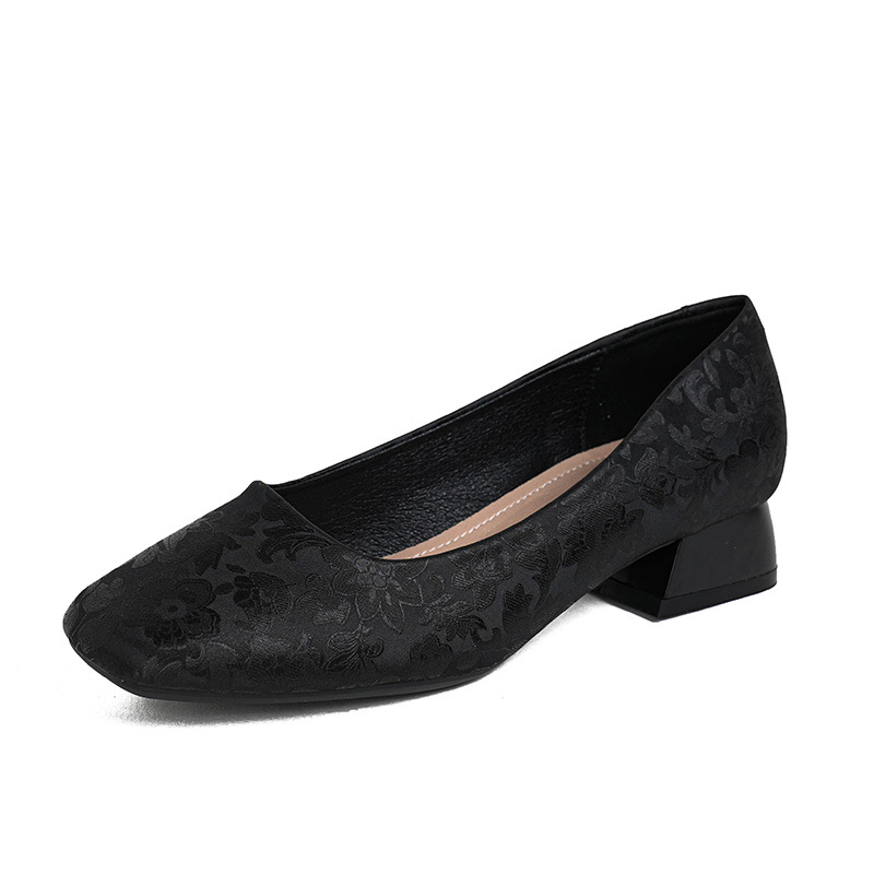 2023년 신상 인기 레트로 통근용 부드러운 가죽 스퀘어토 미들힐 여성 구두