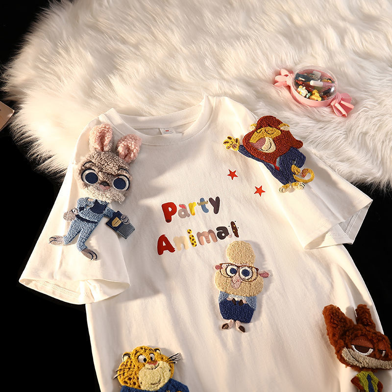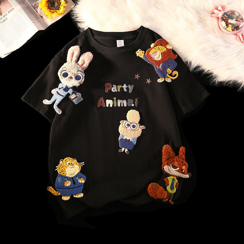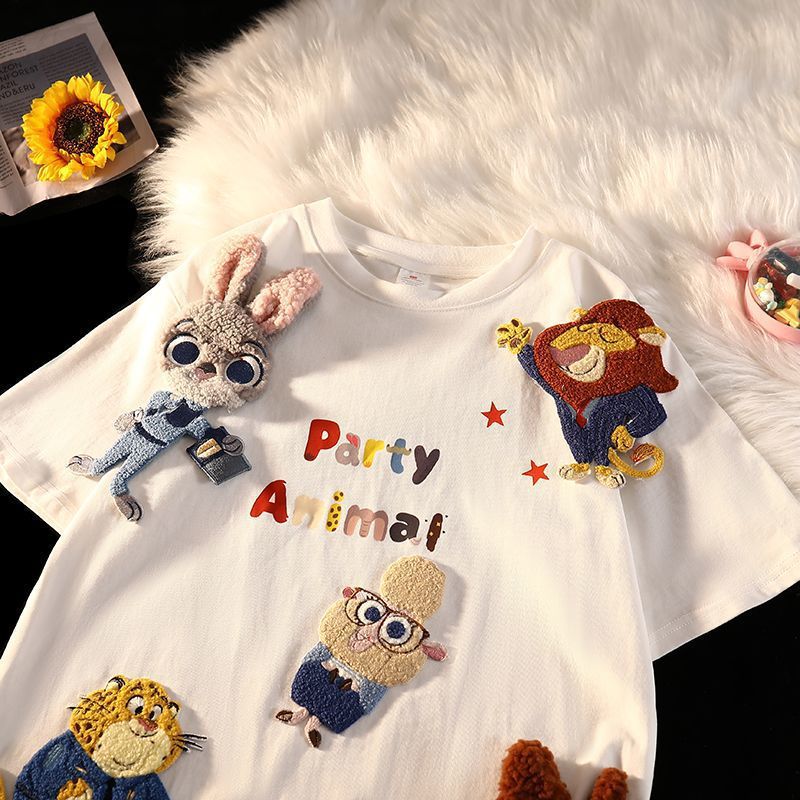 미친 동물 도시 남녀 아동복 티셔츠 2024 여름 새로운 큰 어린이 느슨한 반소매 탑