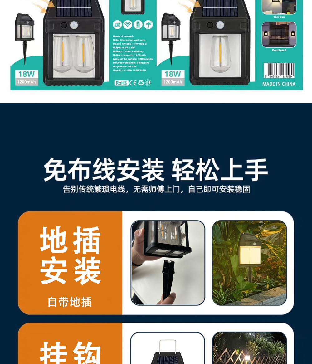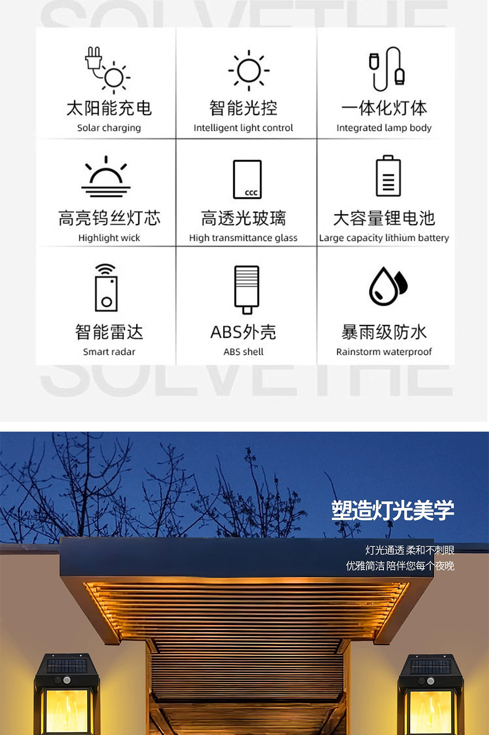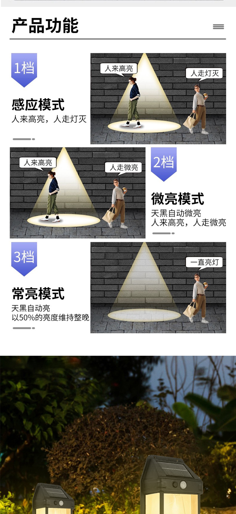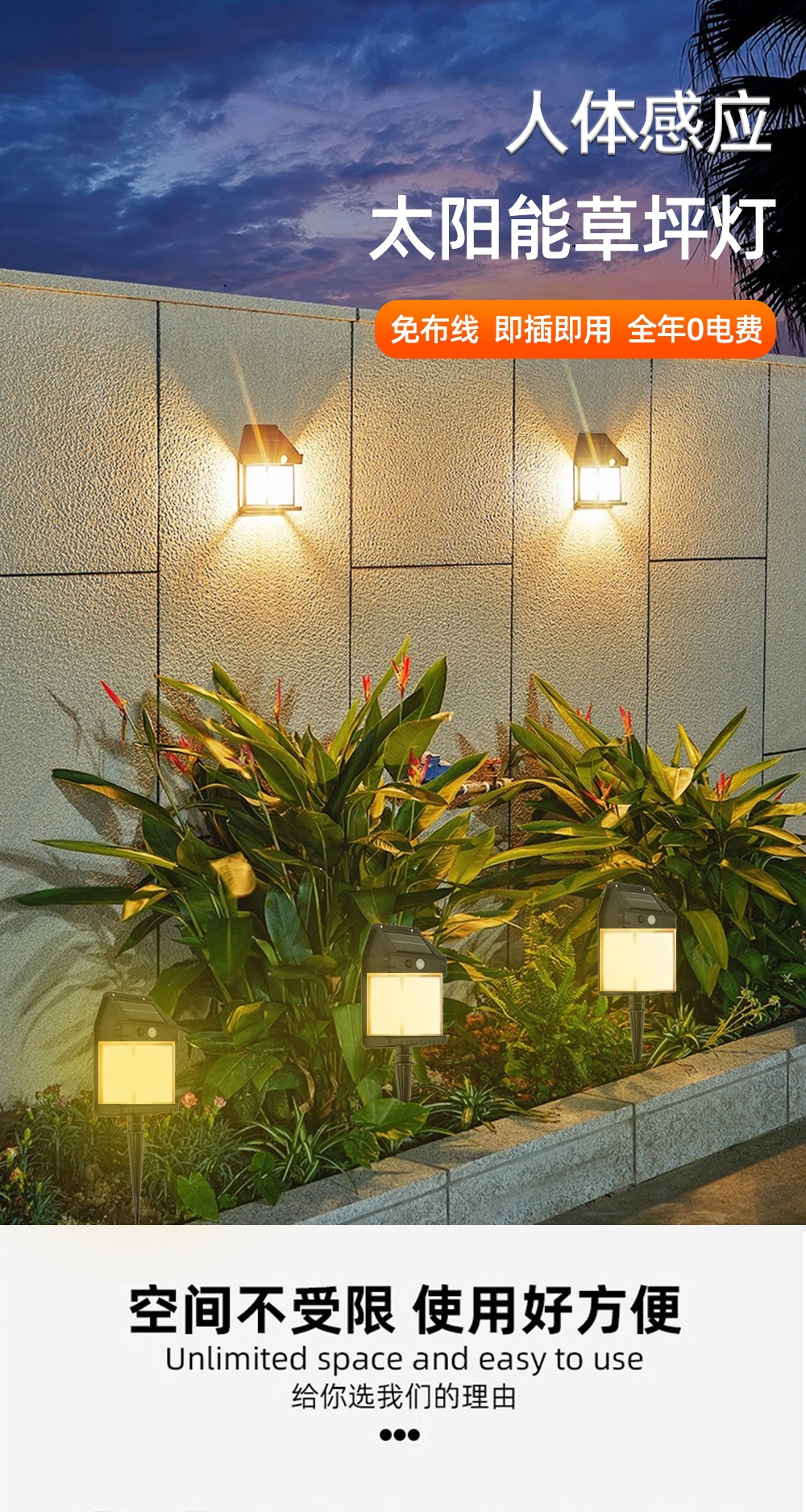 국경 간 폭발 야외 태양 광 조명 정원 조명 방수 텅스텐 와이어 인체 유도 조명 정원 빌라 조명