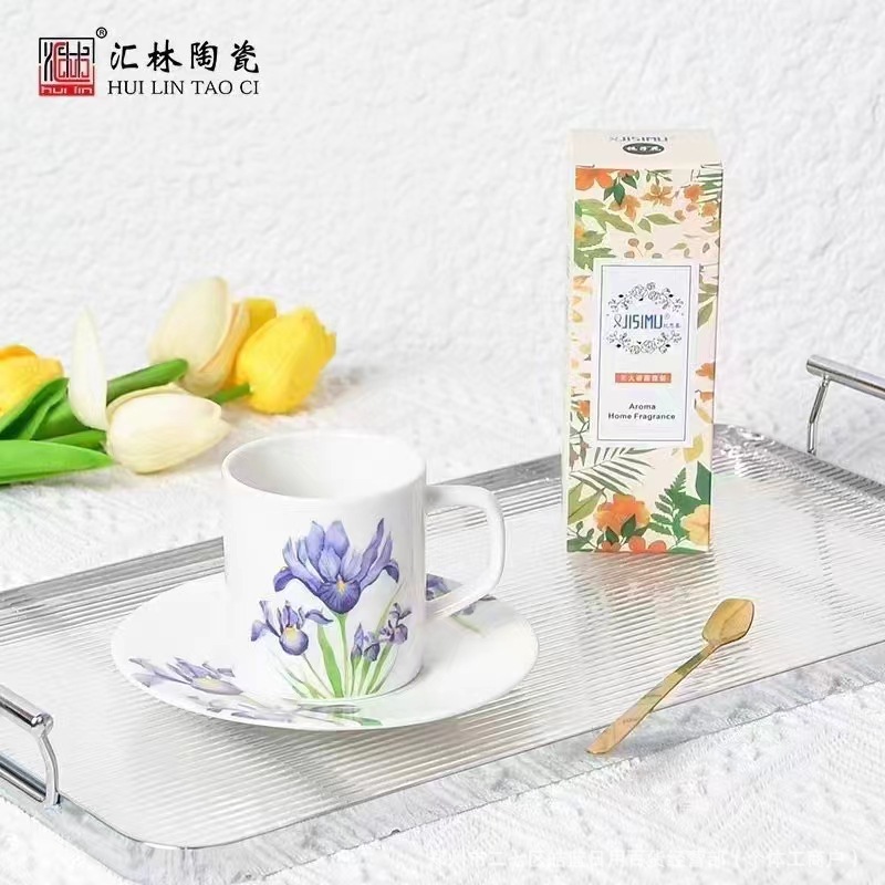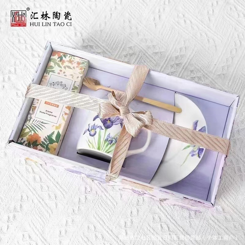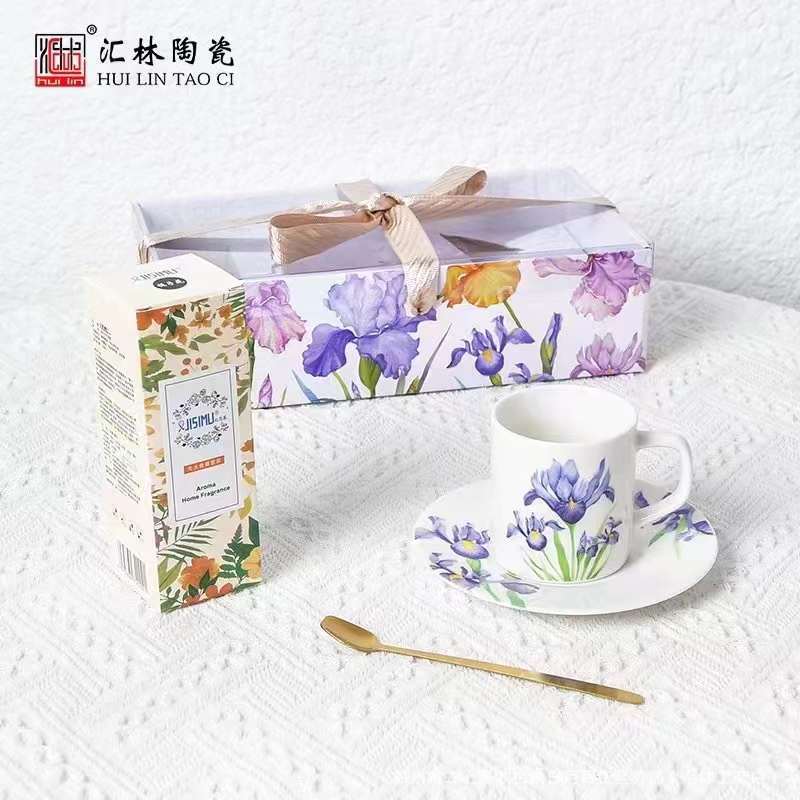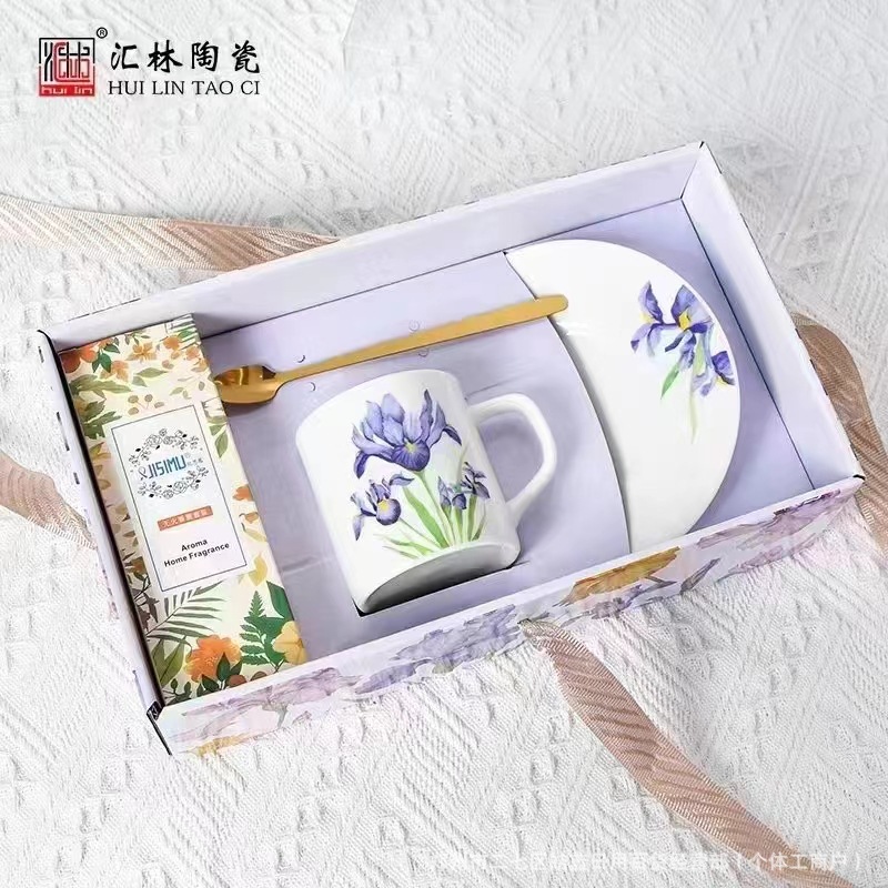 Huilin 선물-아이리스 세트, 컵, 접시, 숟가락, 불없는 아로마테라피 세트, 비즈니스 이벤트 선물스토어 가기