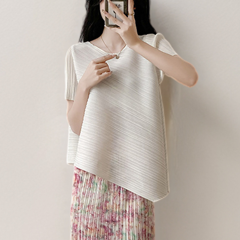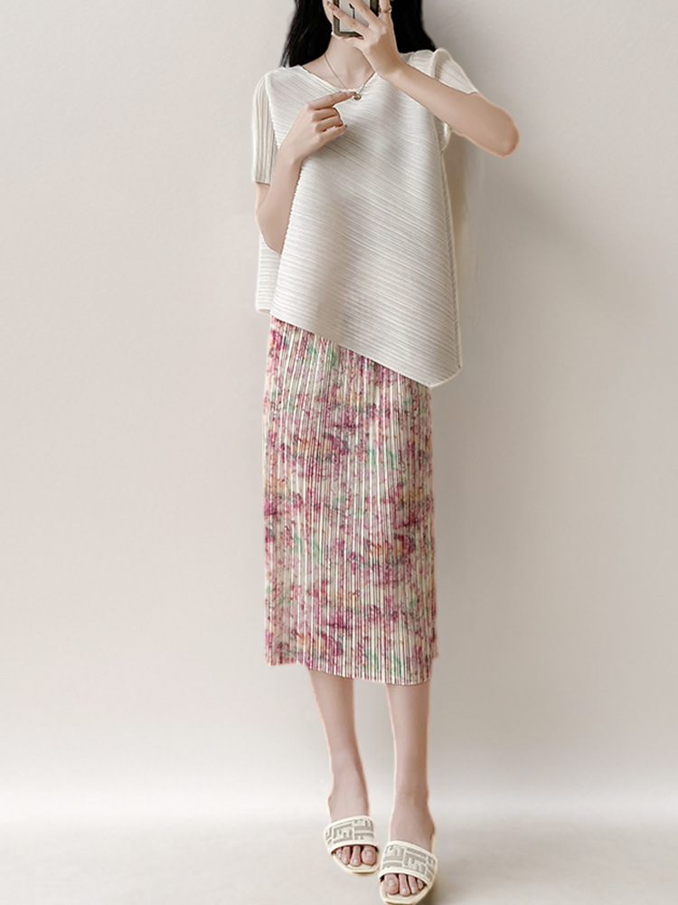 여자 세트 여름 여자 작은 빨간 책 뜨거운 판매 불규칙한 티셔츠 반팔 꽃 치마 주름 투피스 세트