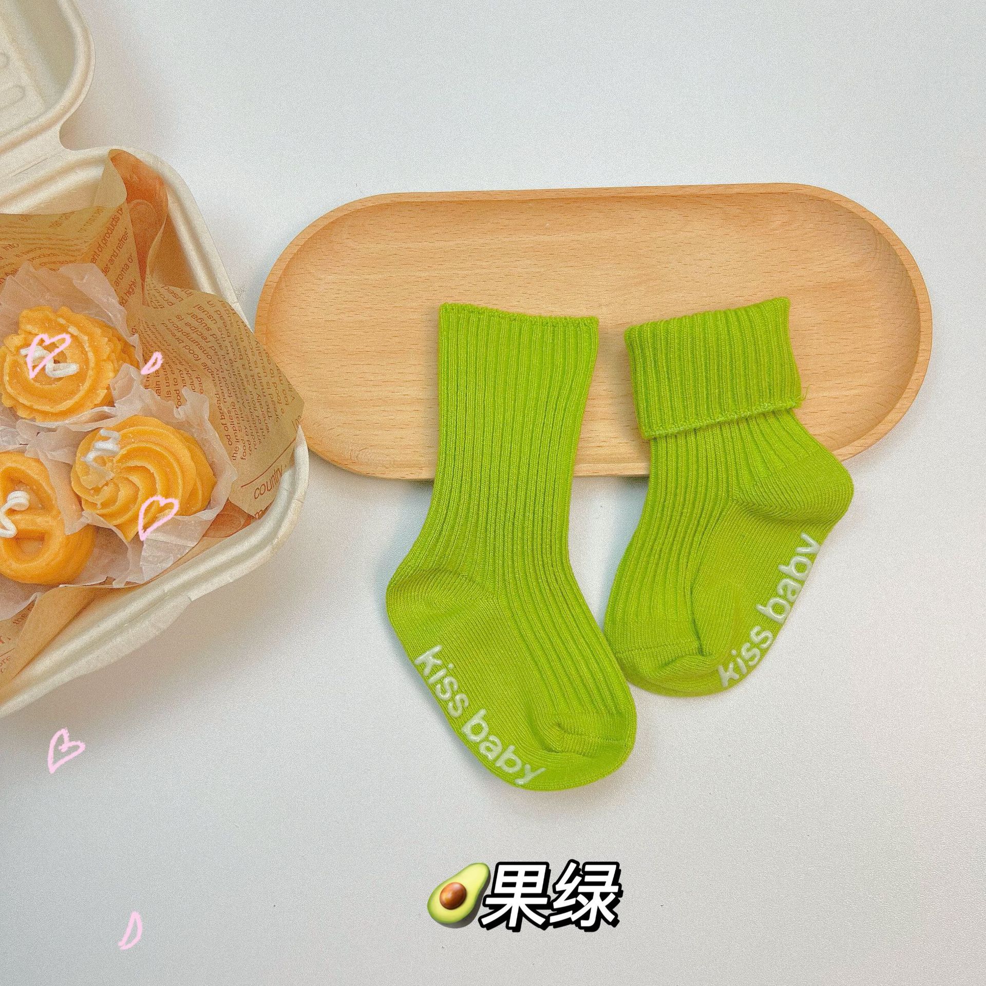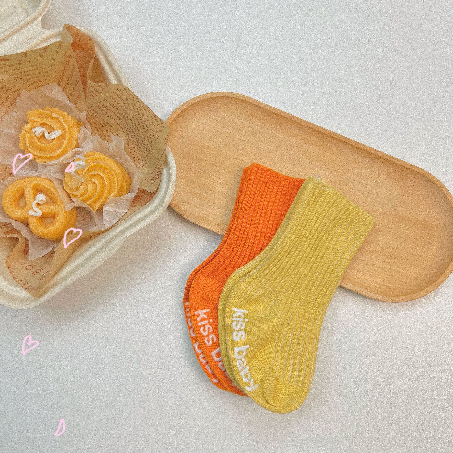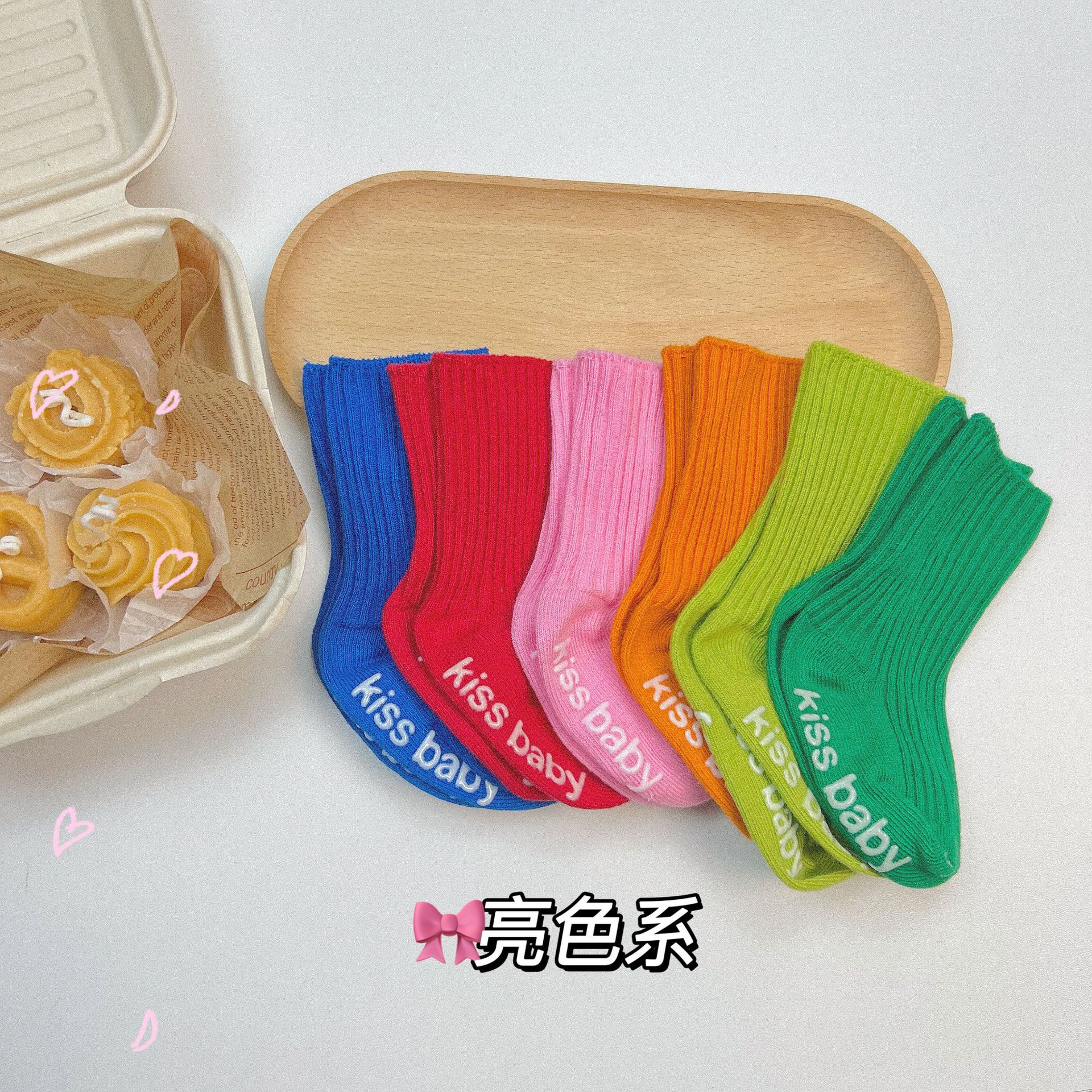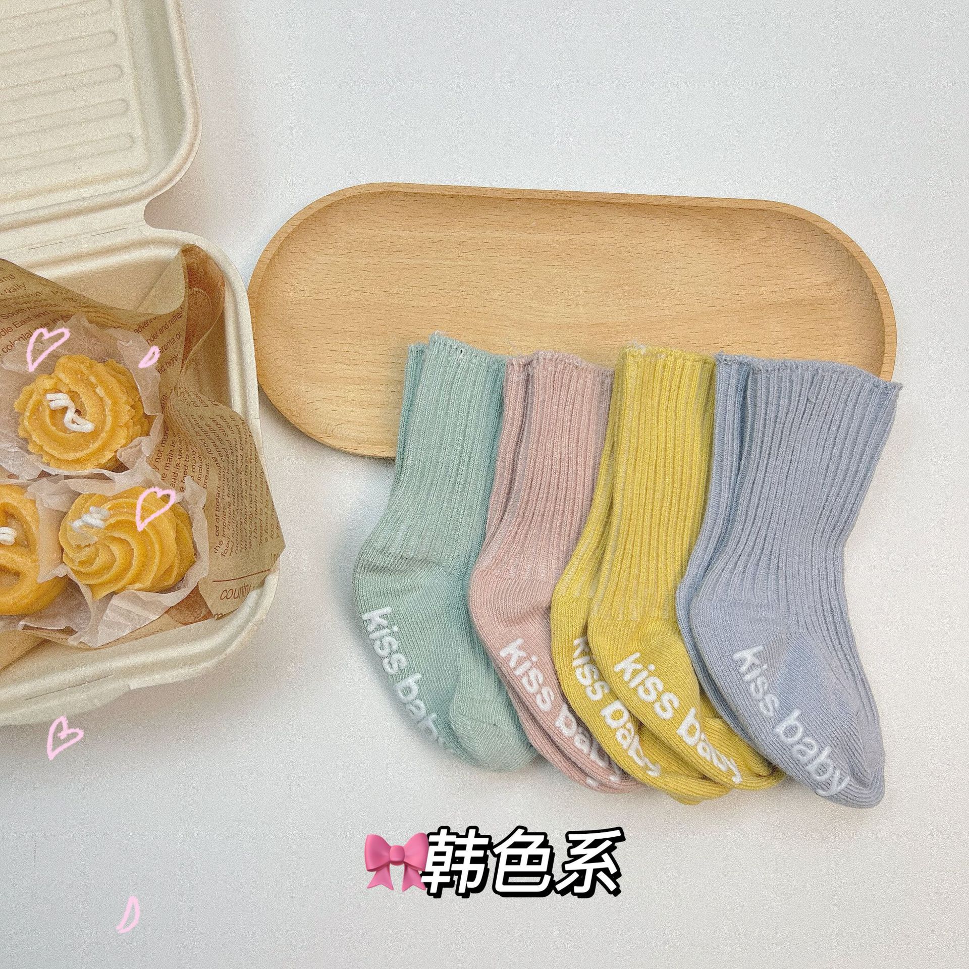 새로운 어린이 양말 Ins 스타일 아기 어린이 솔리드 컬러 미드 튜브 양말 접착제 분배 아기 양말 편안한 면 양말스토어 가기