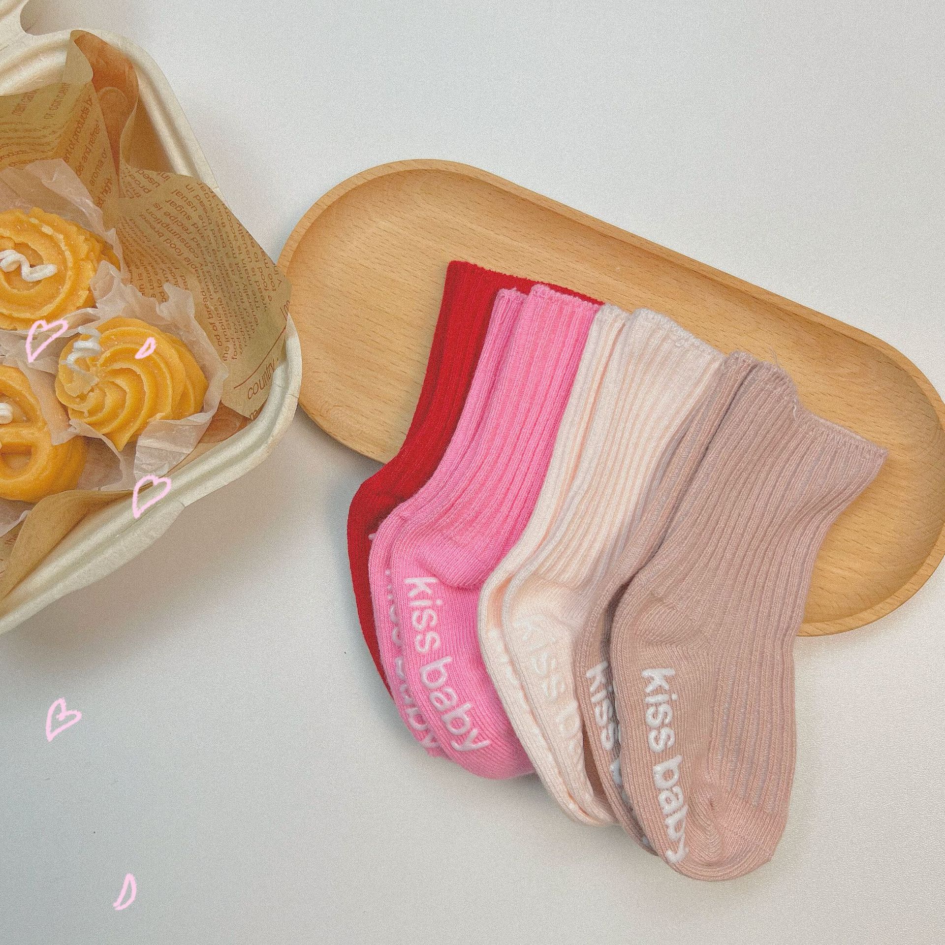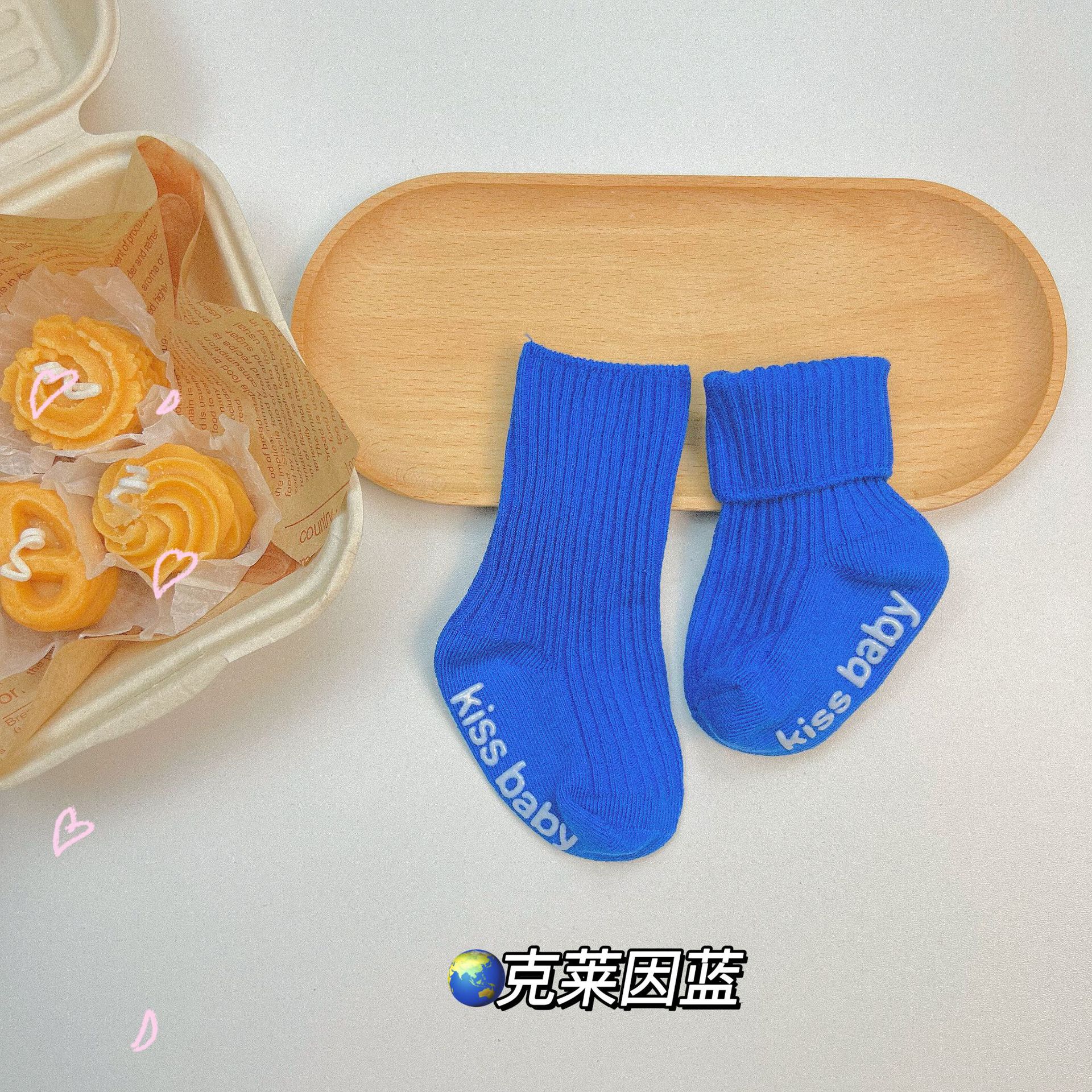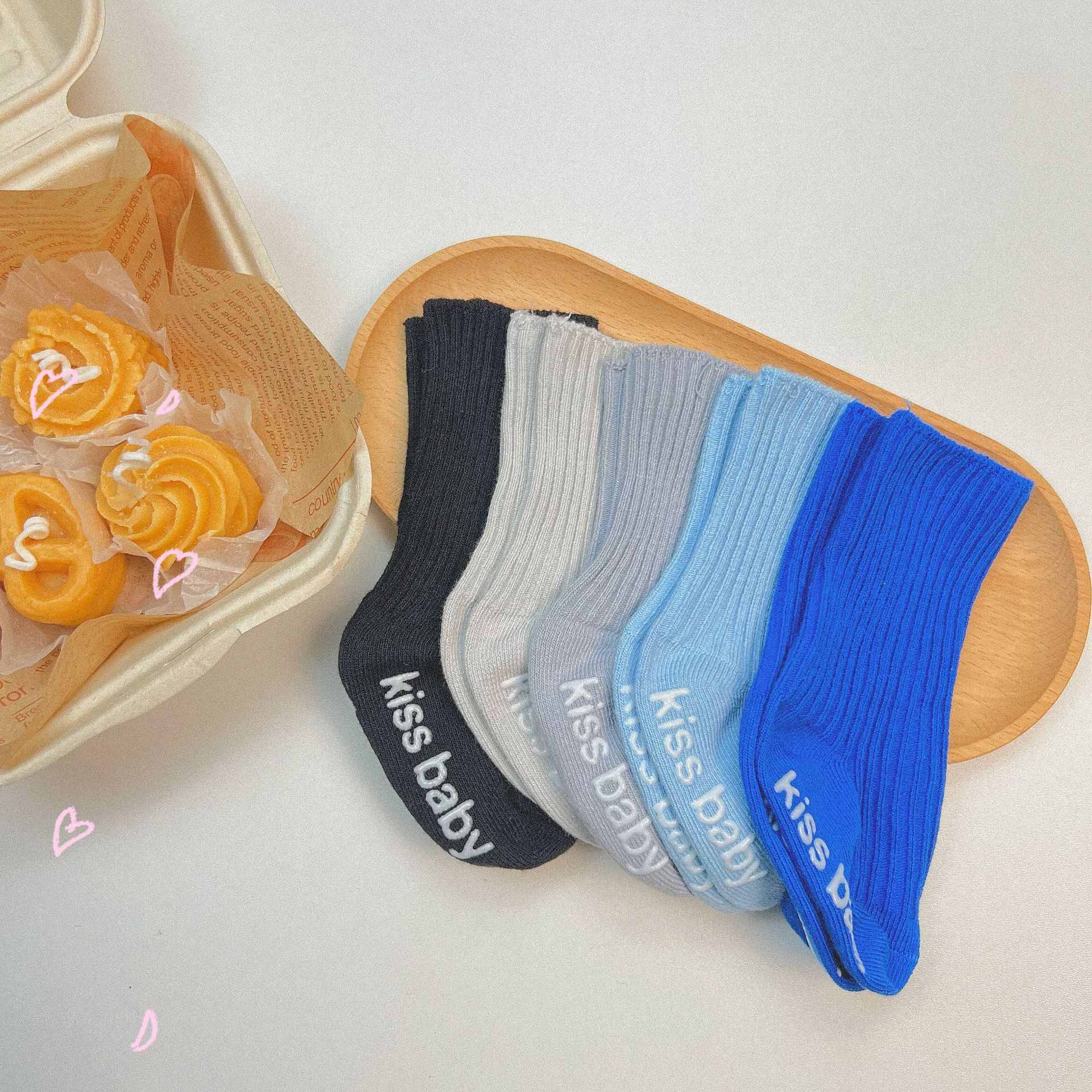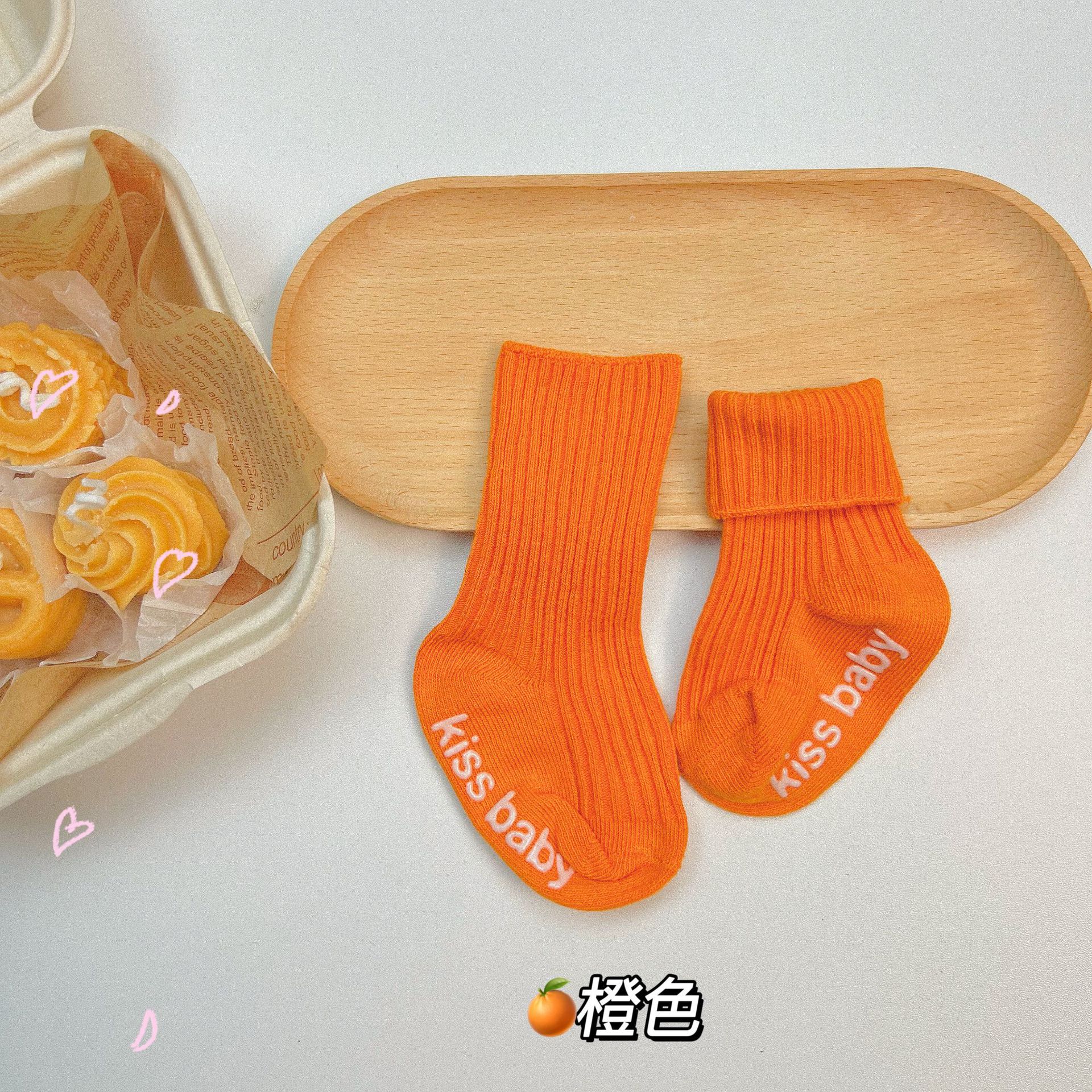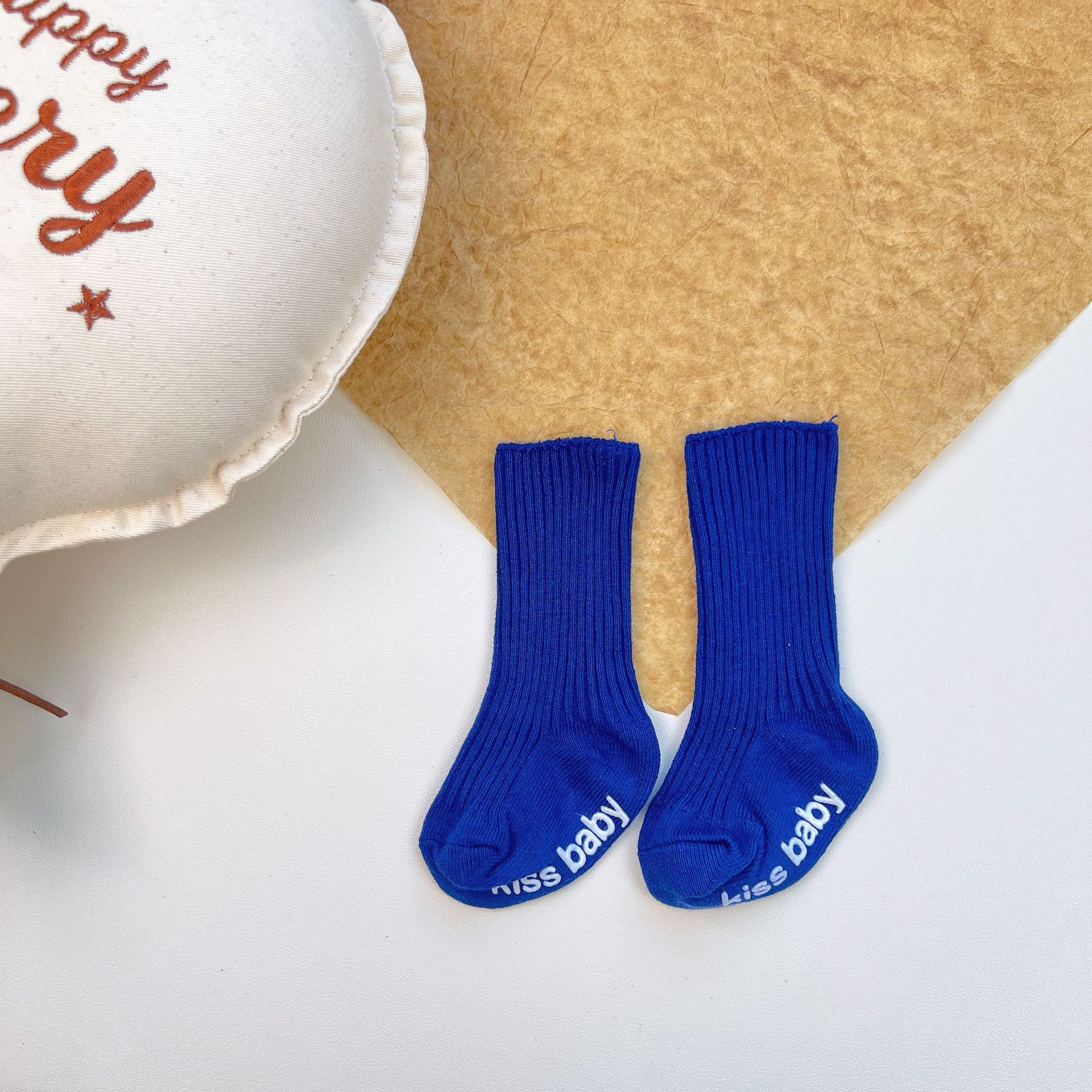 새로운 어린이 양말 Ins 스타일 아기 어린이 솔리드 컬러 미드 튜브 양말 접착제 분배 아기 양말 편안한 면 양말스토어 가기
